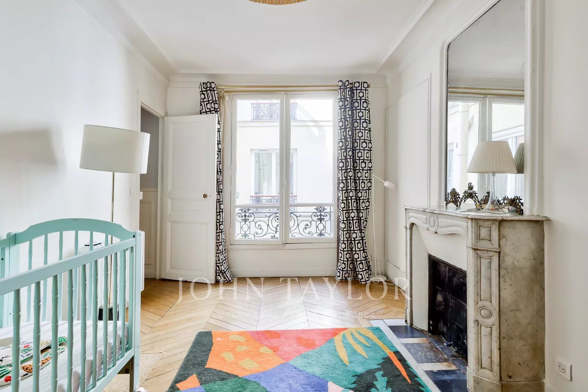 Rénové intégralement en 2020 par un architecte, il préserve le charme de l’ancien – parquet en point de Hongrie, moulures, cheminées en marbre – dans une rénovation soignée. Entièrement tourné sur des cours intérieures, il bénéficie d’un calme absolu, tout en profitant d’une exposition sud garantissant une bonne luminosité.