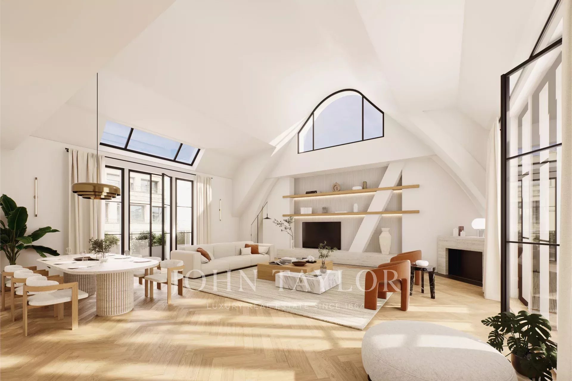 - Un vaste séjour traversant de plus de 60m2 avec plus de 5m de hauteur sous plafond, ouvrant sur deux terrasses