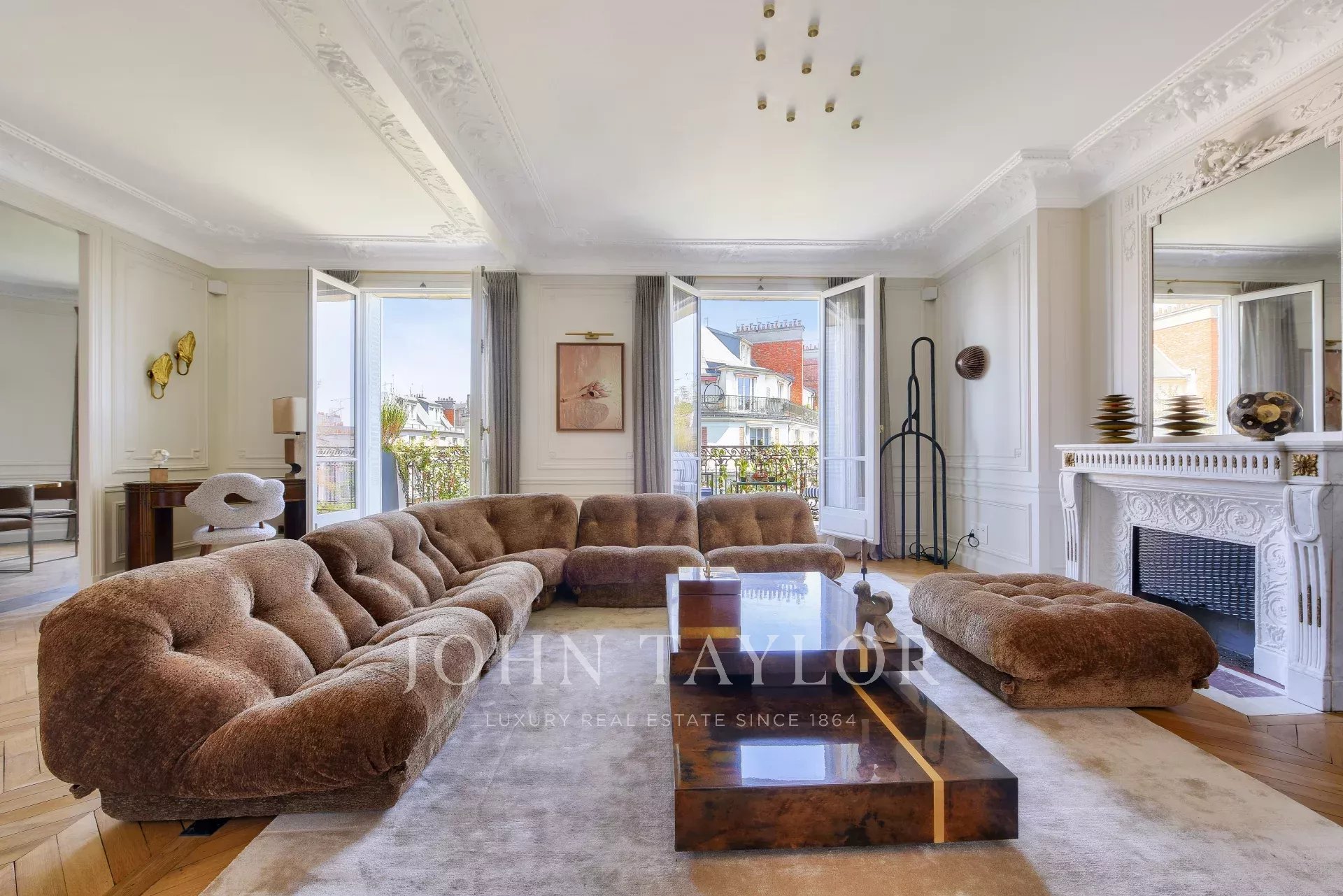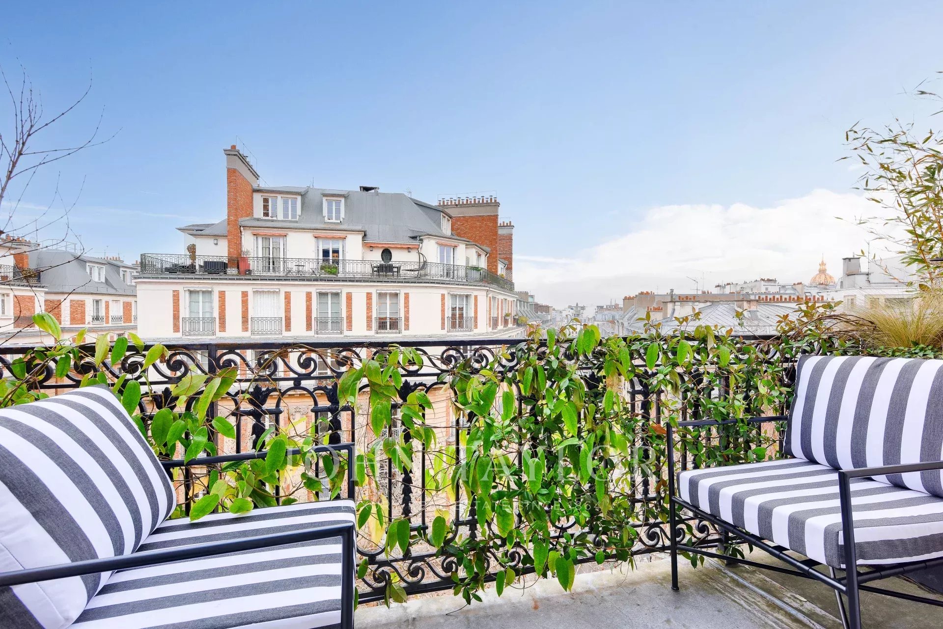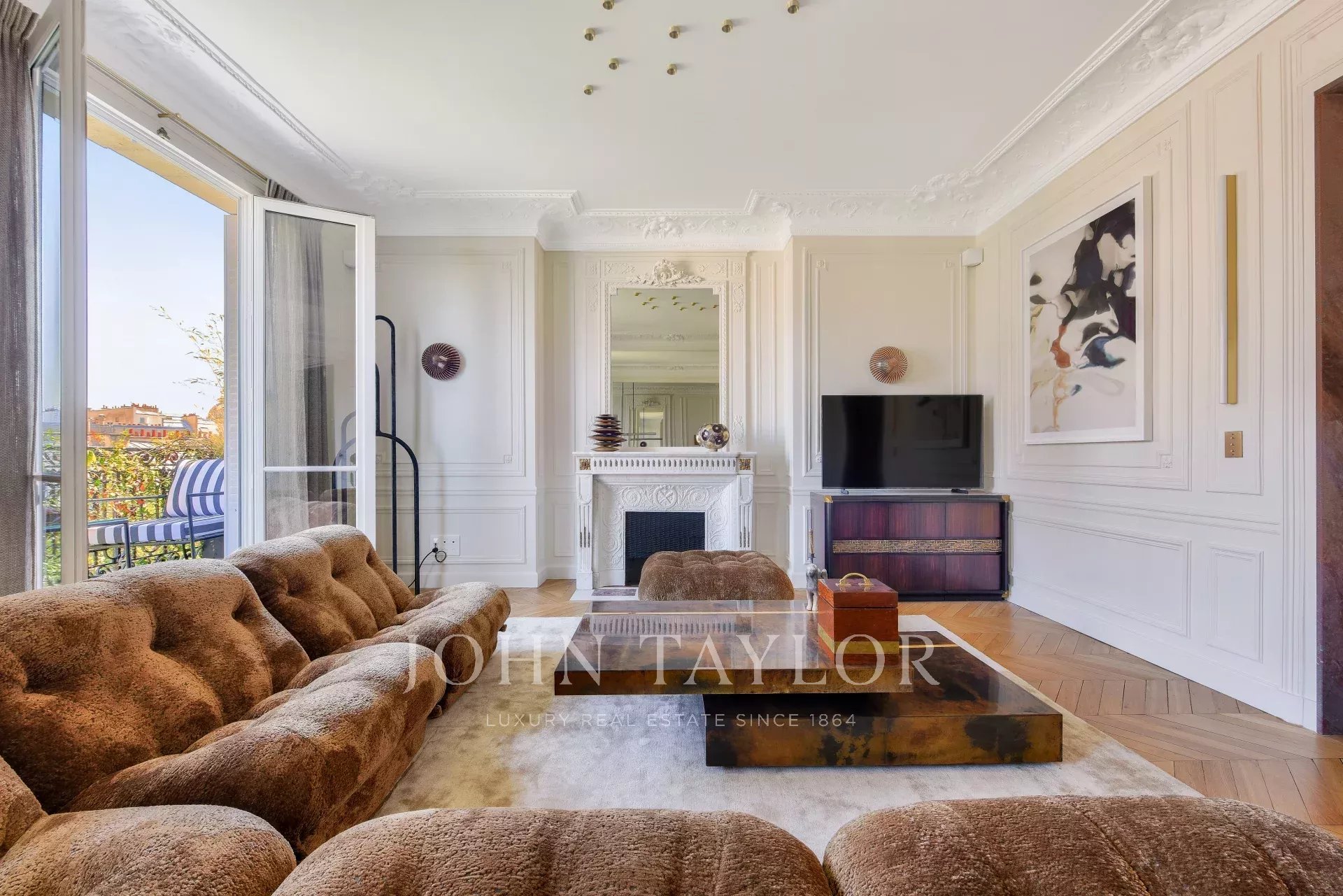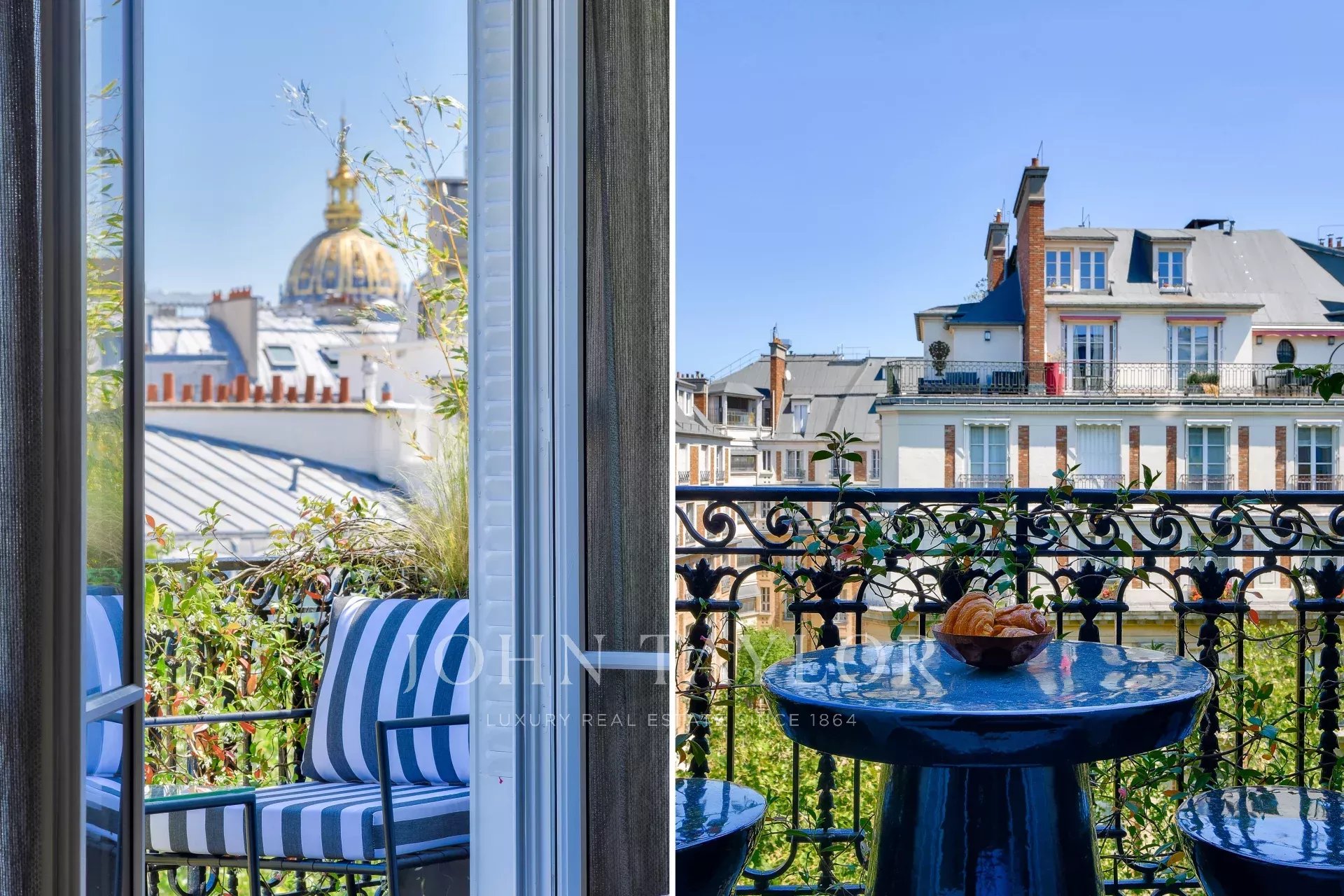- grand salon bordé d’un large balcon filant plein Est offrant des vues sur le Dôme des Invalides et l'Arc de Triomphe;