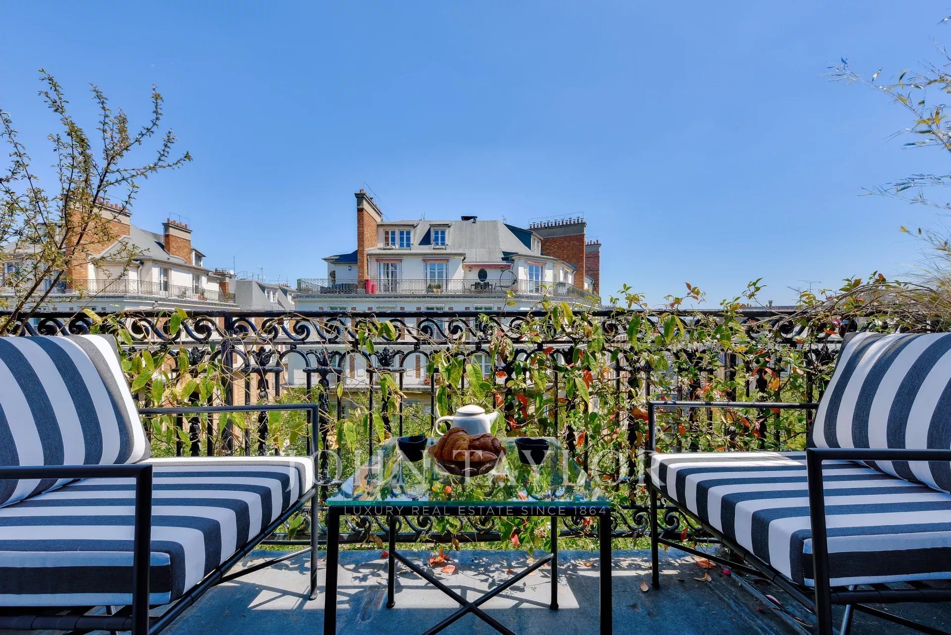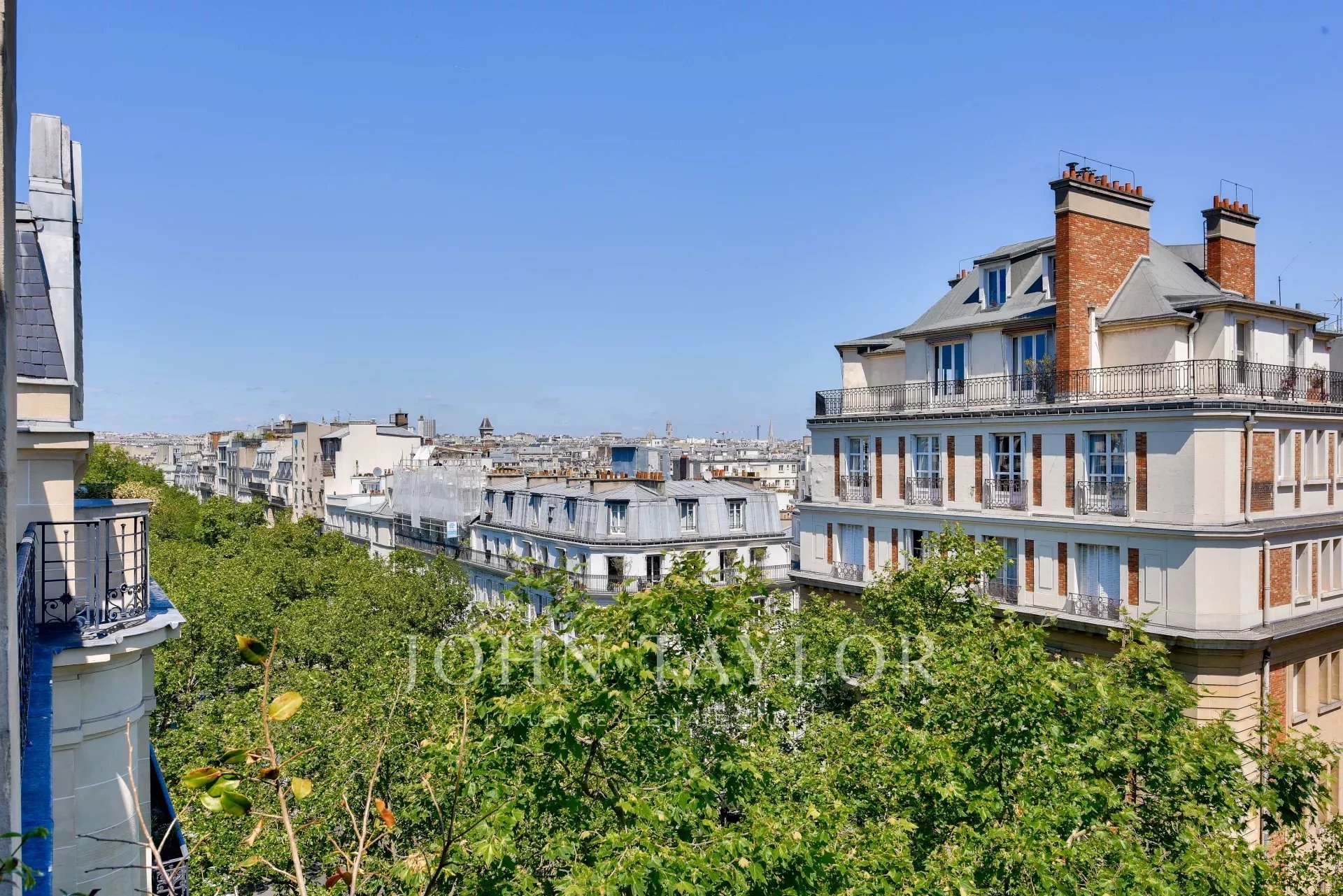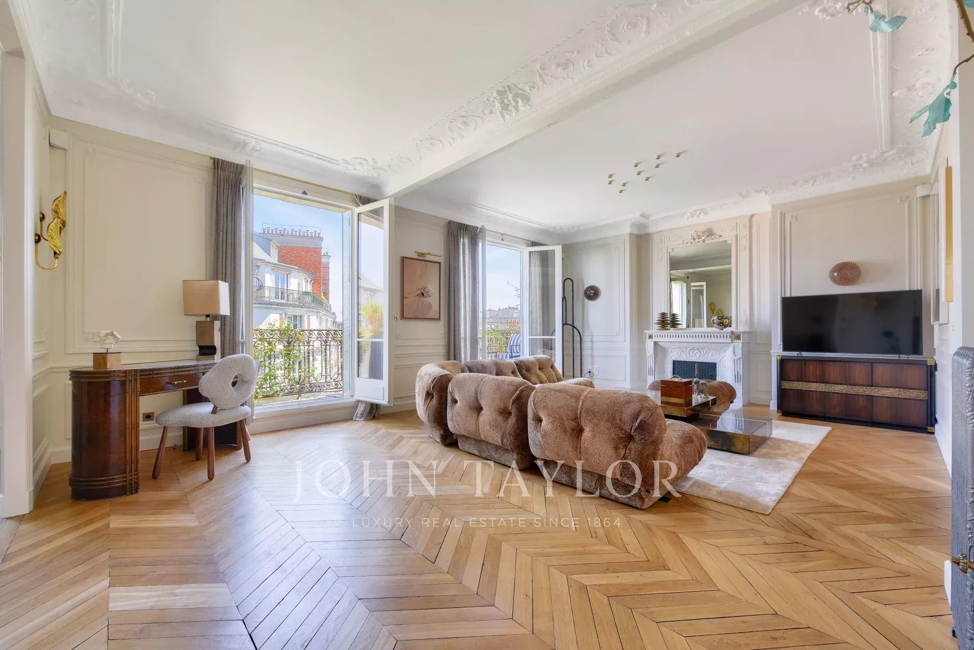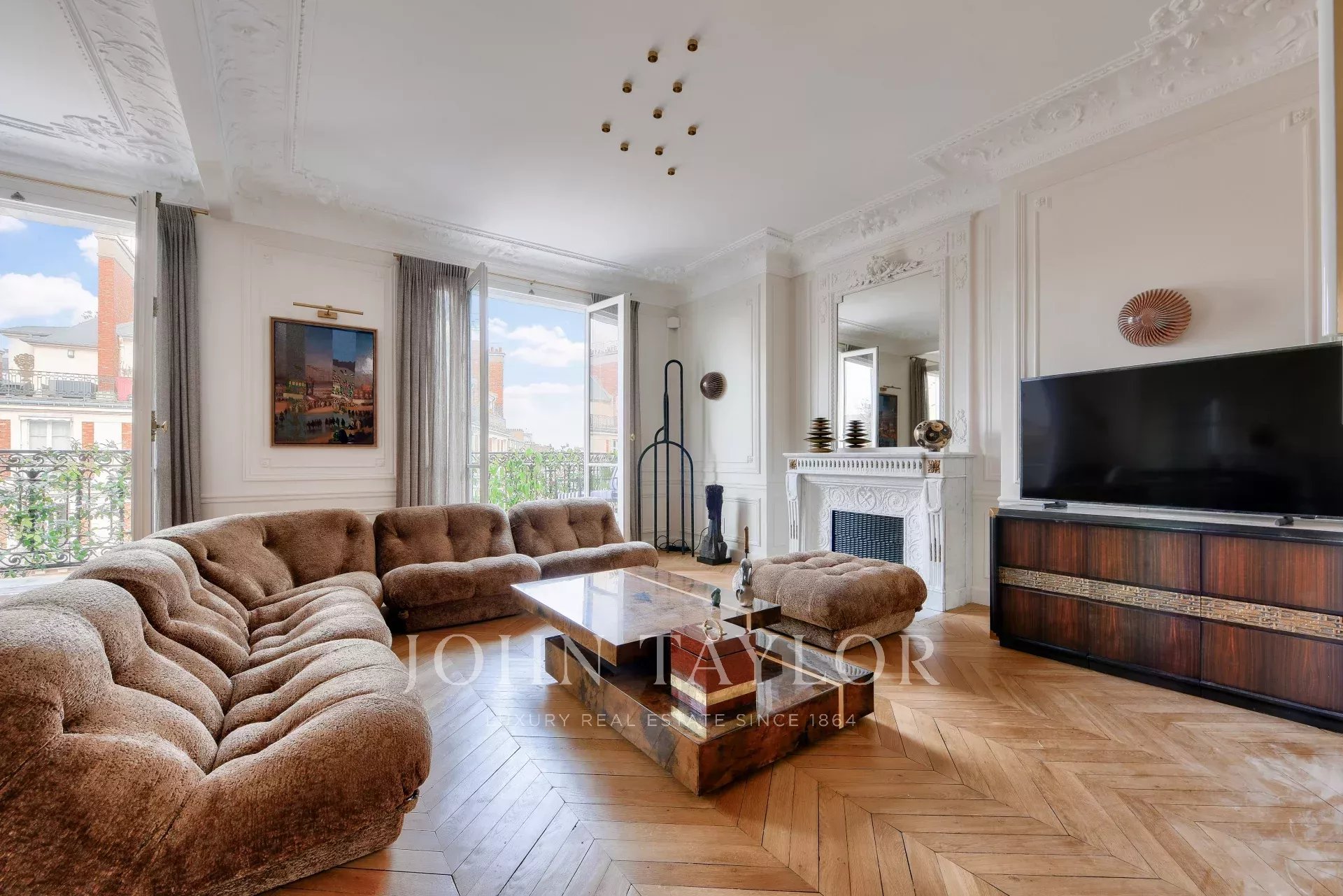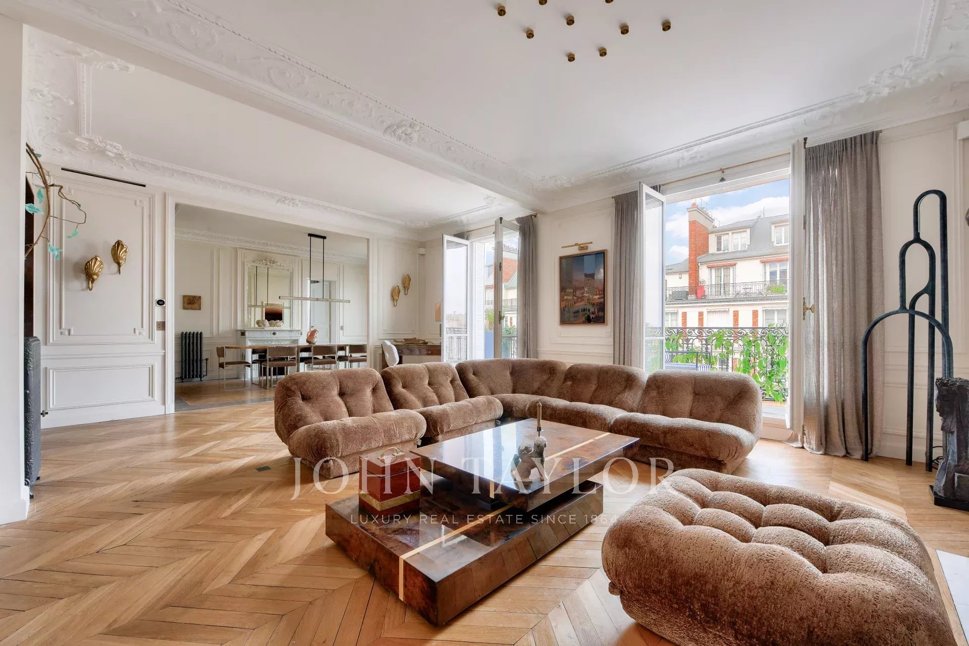 - grand salon bordé d’un large balcon filant plein Est offrant des vues sur le Dôme des Invalides et l'Arc de Triomphe;
