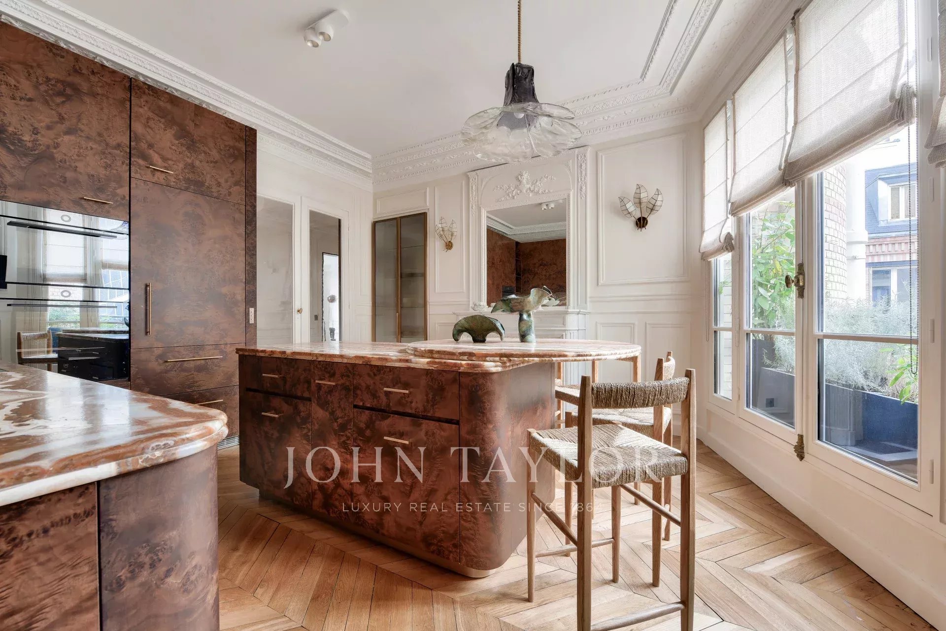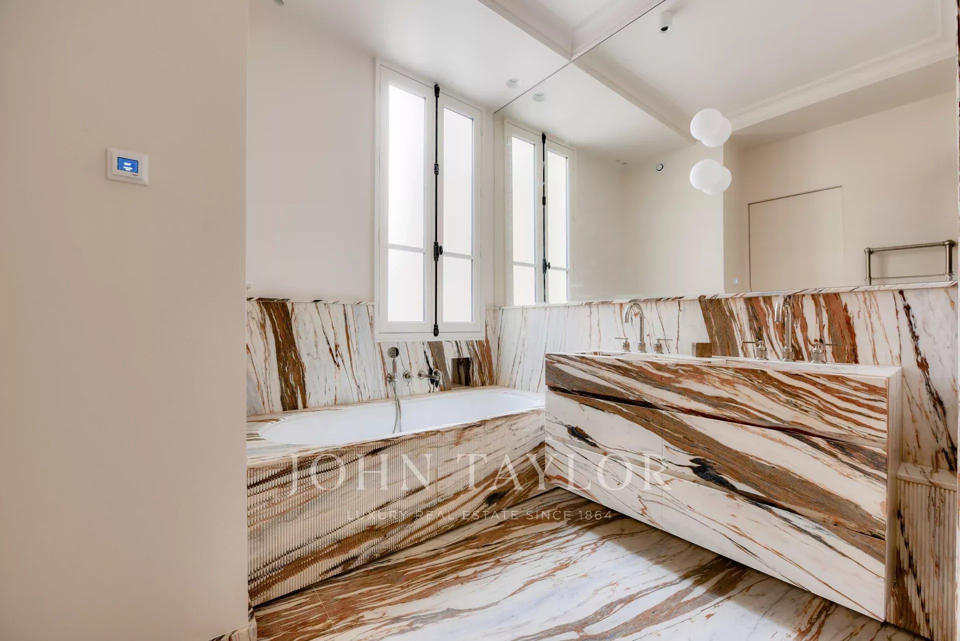 Au sixième étage avec ascenseur d'un bel immeuble haussmannien, ce magnifique appartement de 196.57m2 Carrez a bénéficié d’une rénovation exceptionnelle par l'un des cabinets d'architecture les plus renommés.