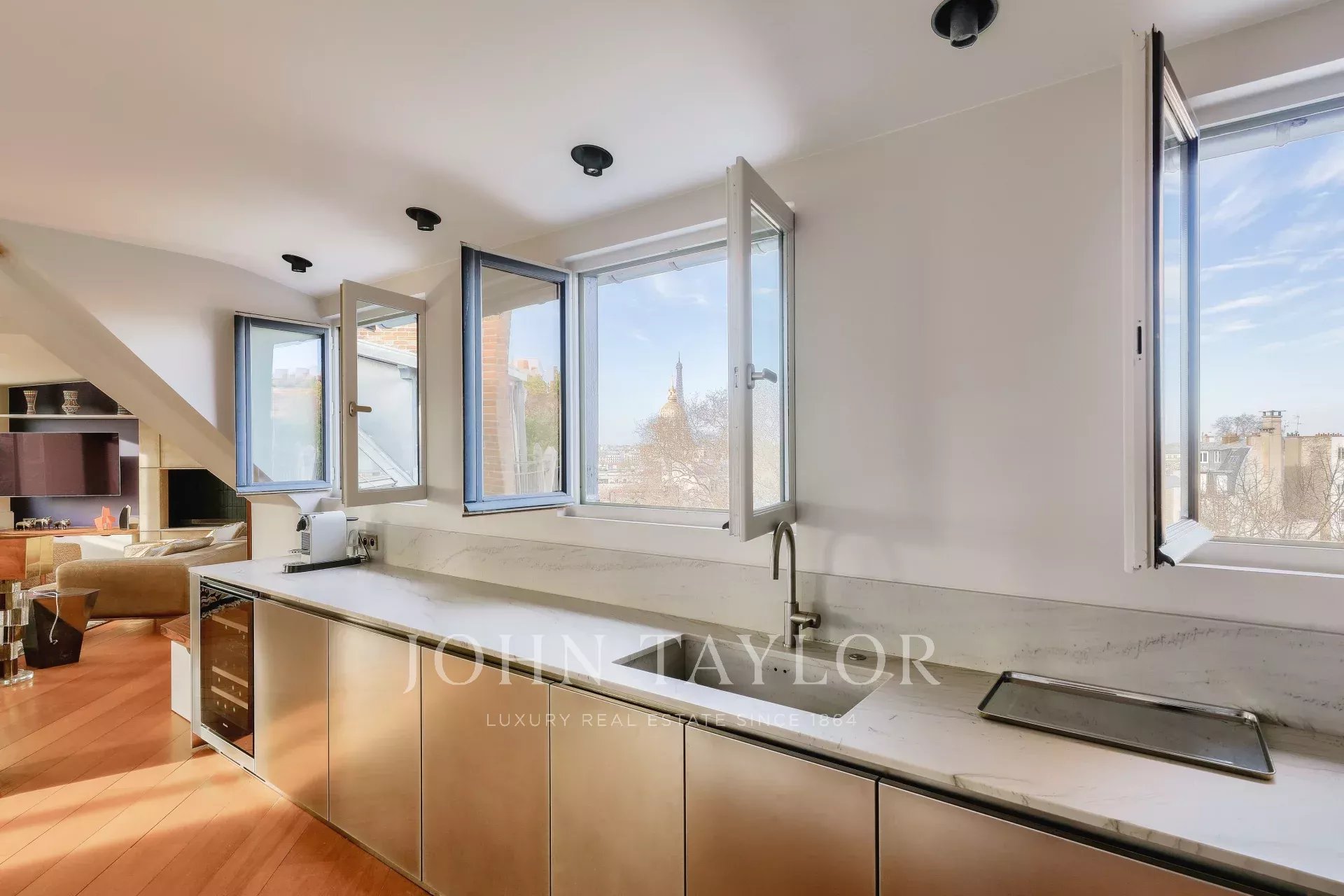 Toutes les pièces offrent de fabuleuses vues sur : les jardins de l'Hôtel Matignon, la Tour Eiffel, le Dôme des Invalides, le Panthéon et de nombreux jardins tout autour.