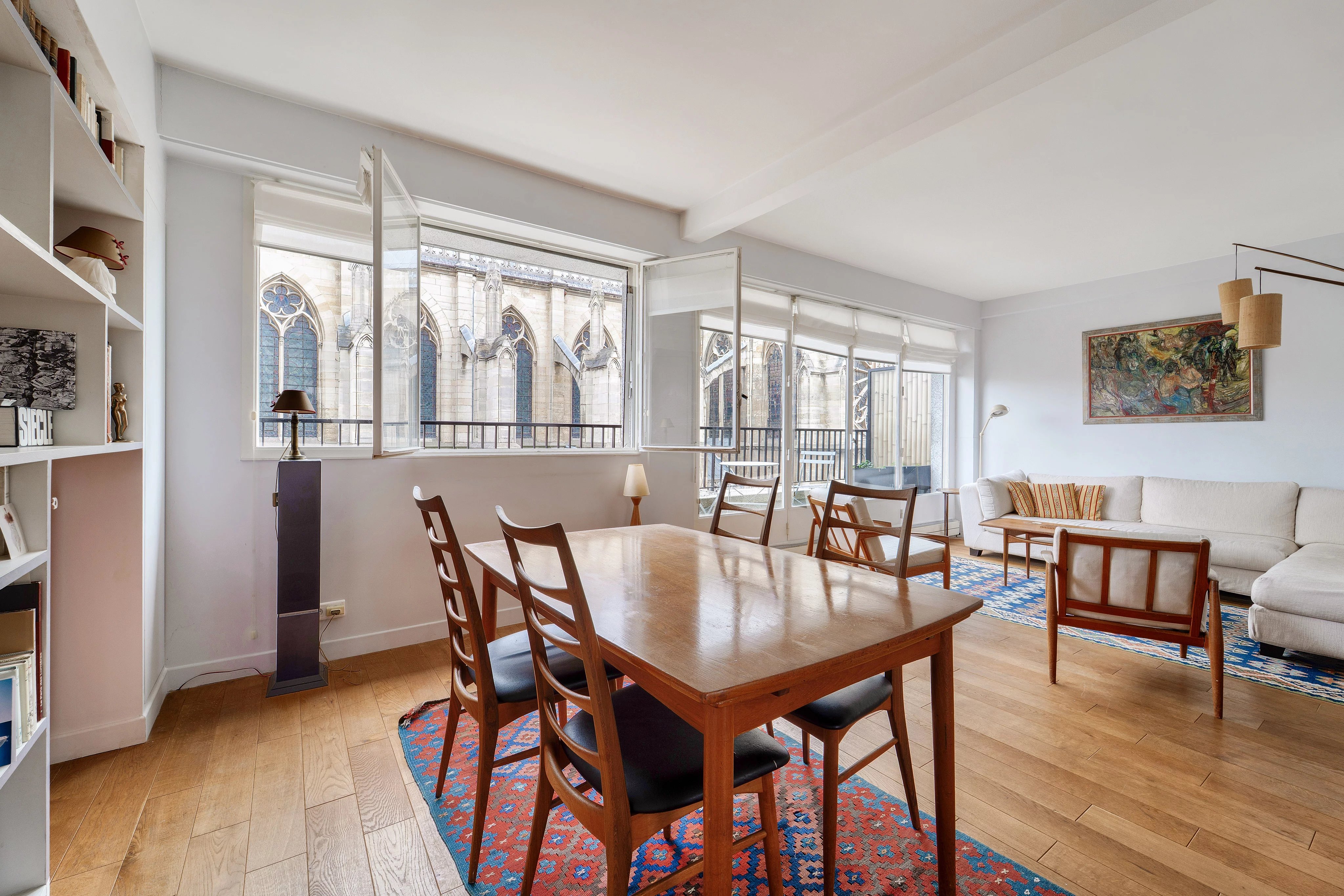 - Un salon bénéficiant de larges baies vitrées avec vues sur la basilique Sainte-Clotilde et sur le square Samuel-Trousseau, avec accès à un balcon filant de 8m²,