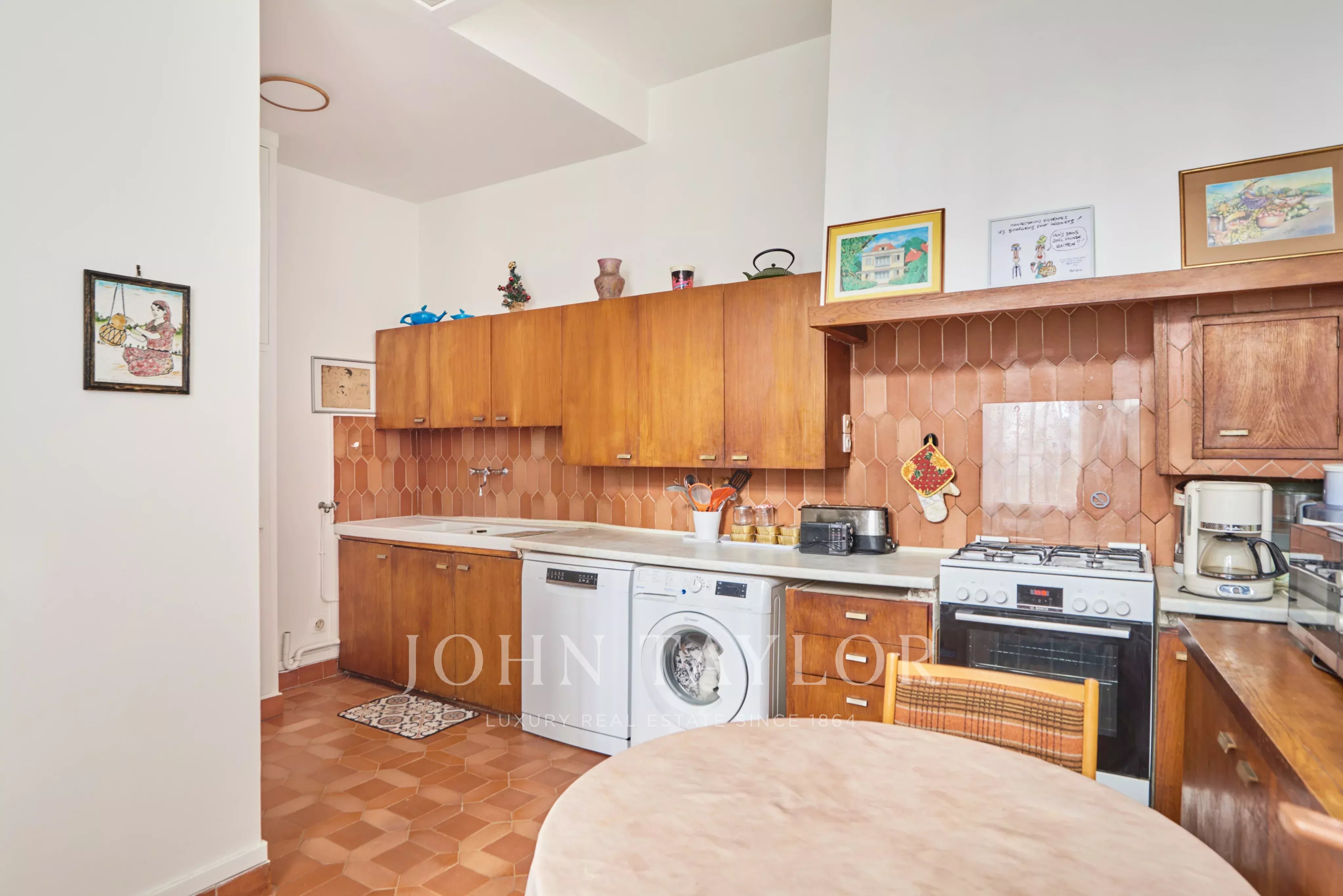 D'une surface de 120m², bénéficiant de très beaux volumes, avec une hauteur sous plafond de 3m20, et d'une grande luminosité, il se compose aujourd'hui de: