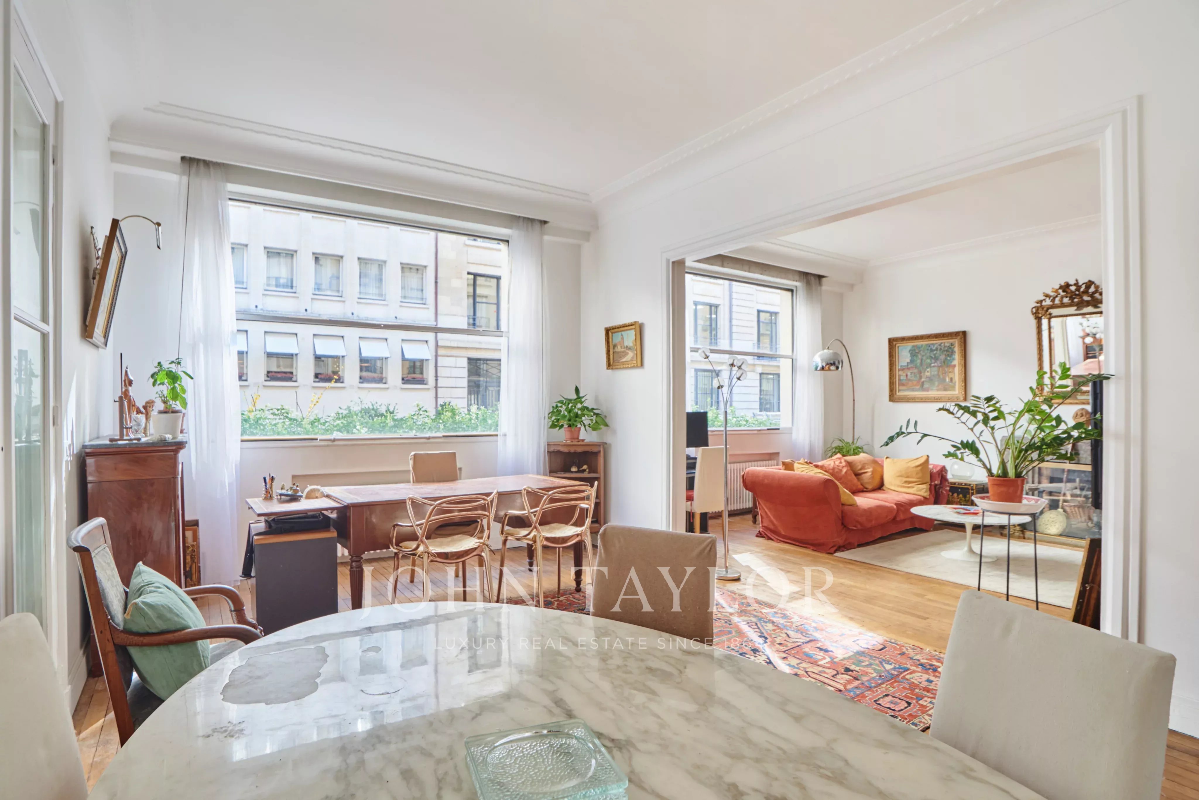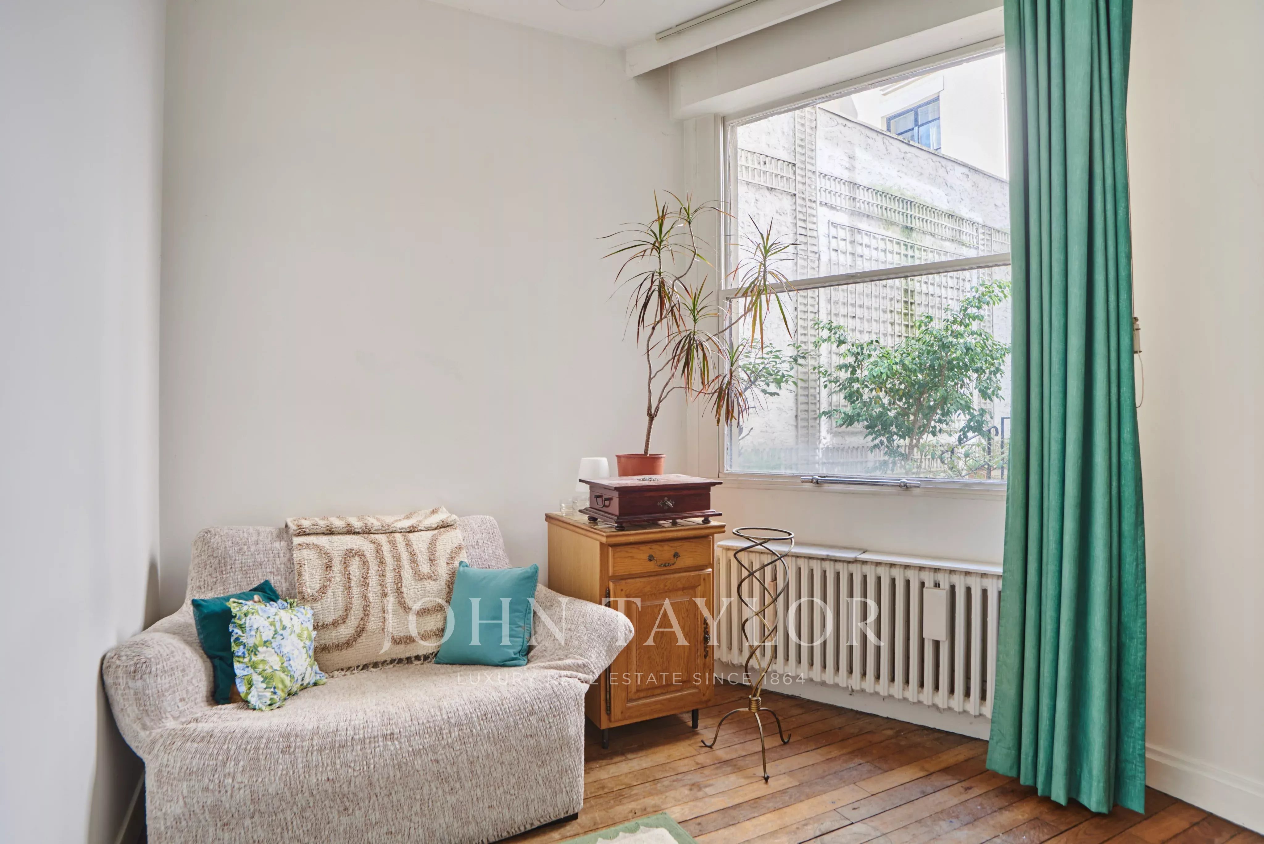 Dans une jolie rue calme et arborée, au sein d'un superbe immeuble Art Déco, avec gardienne, bel appartement situé en rez-de-chaussée surélevé bénéficiant d'un plan compact et modulable.
