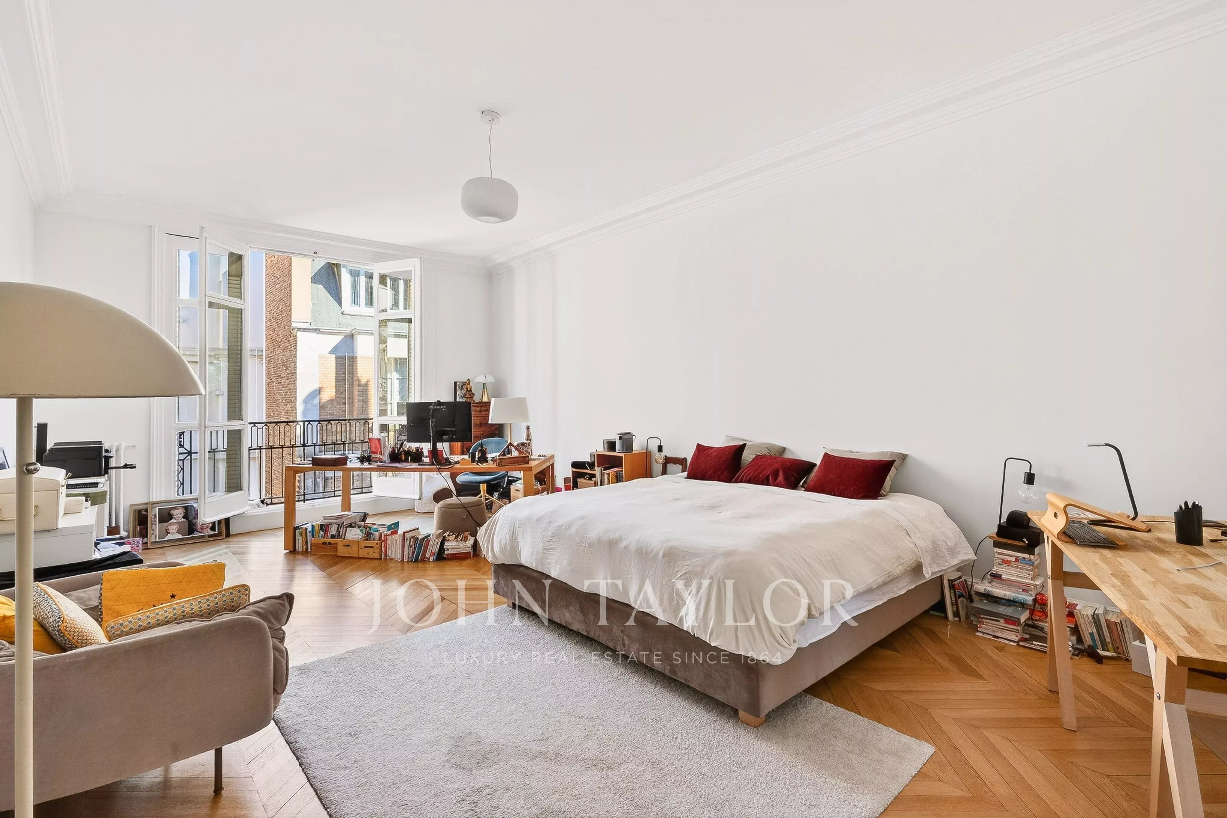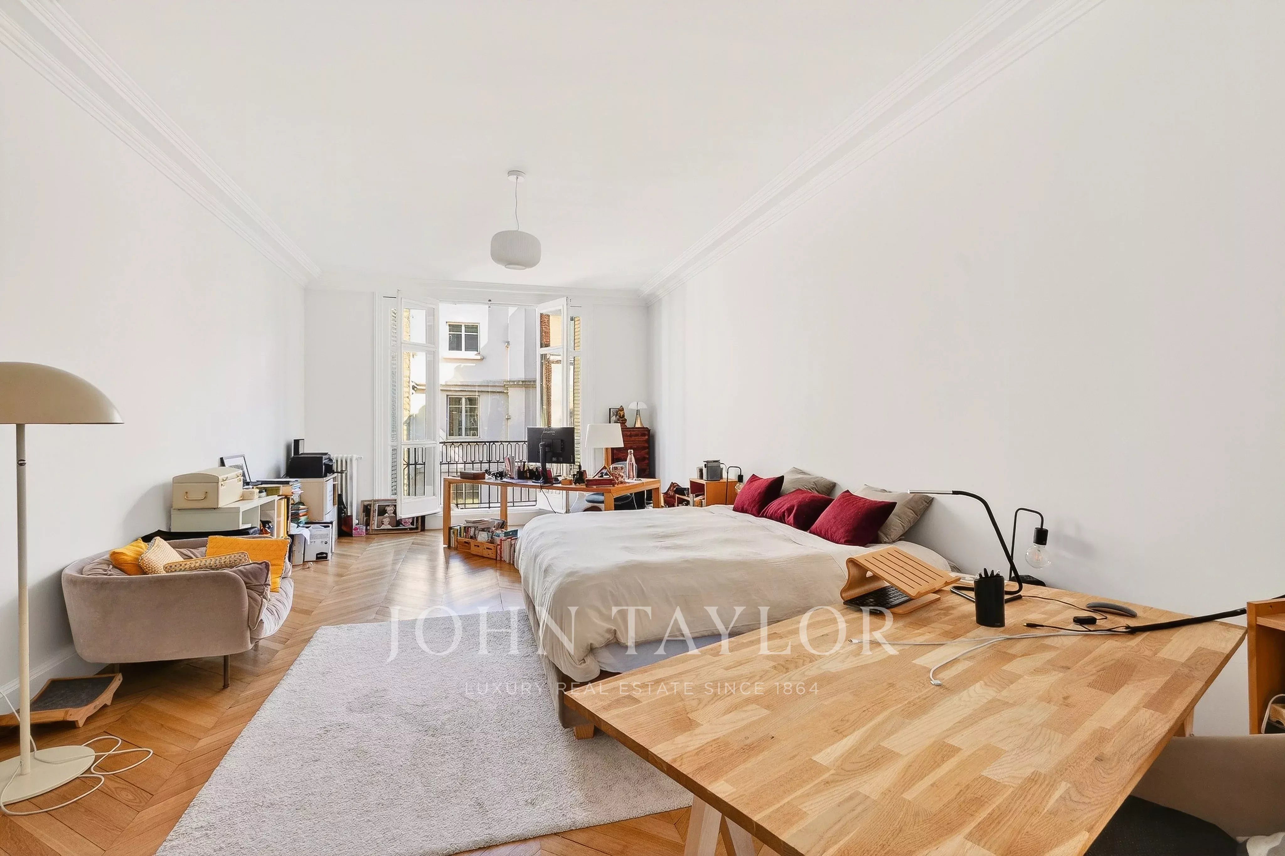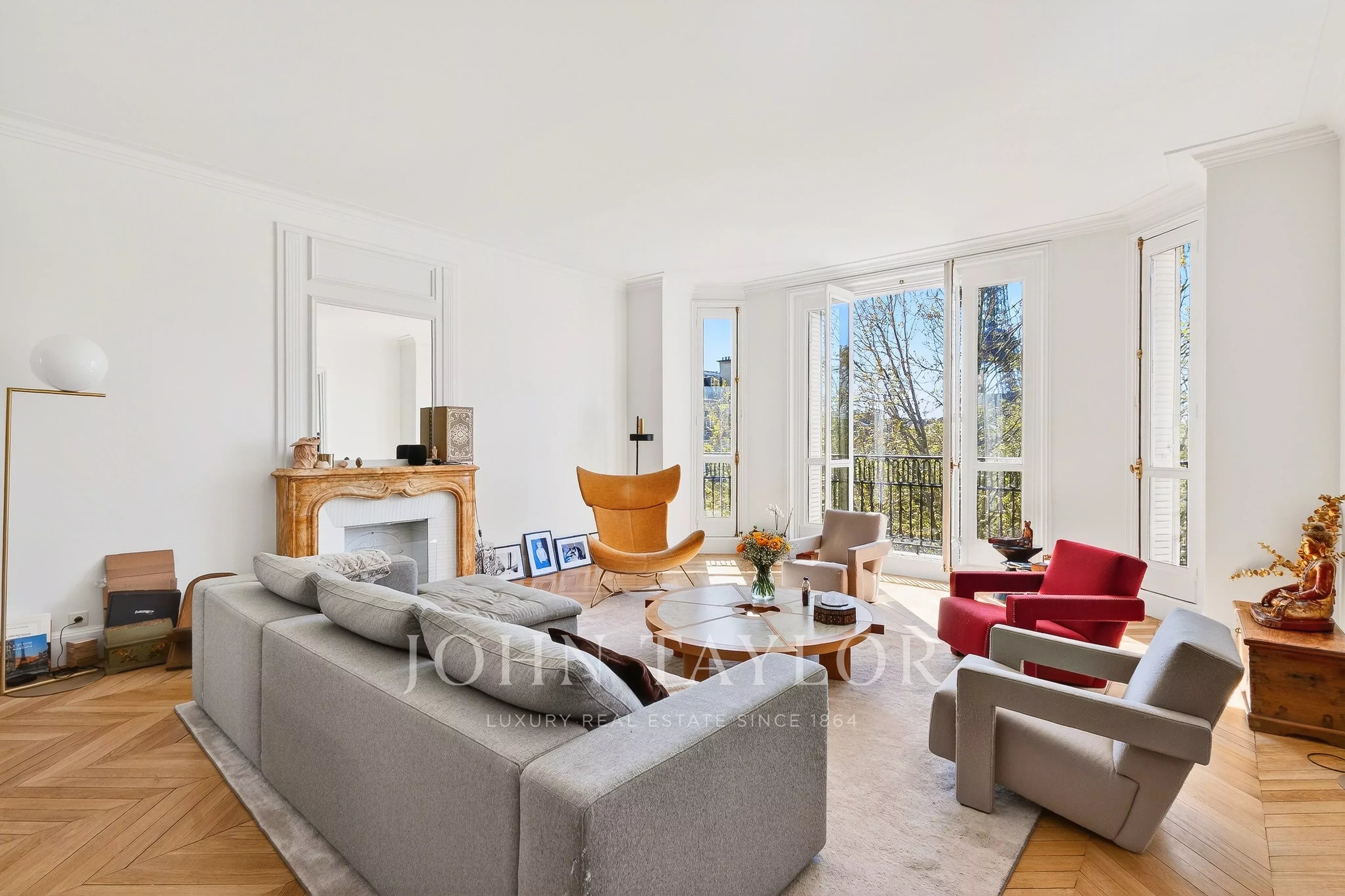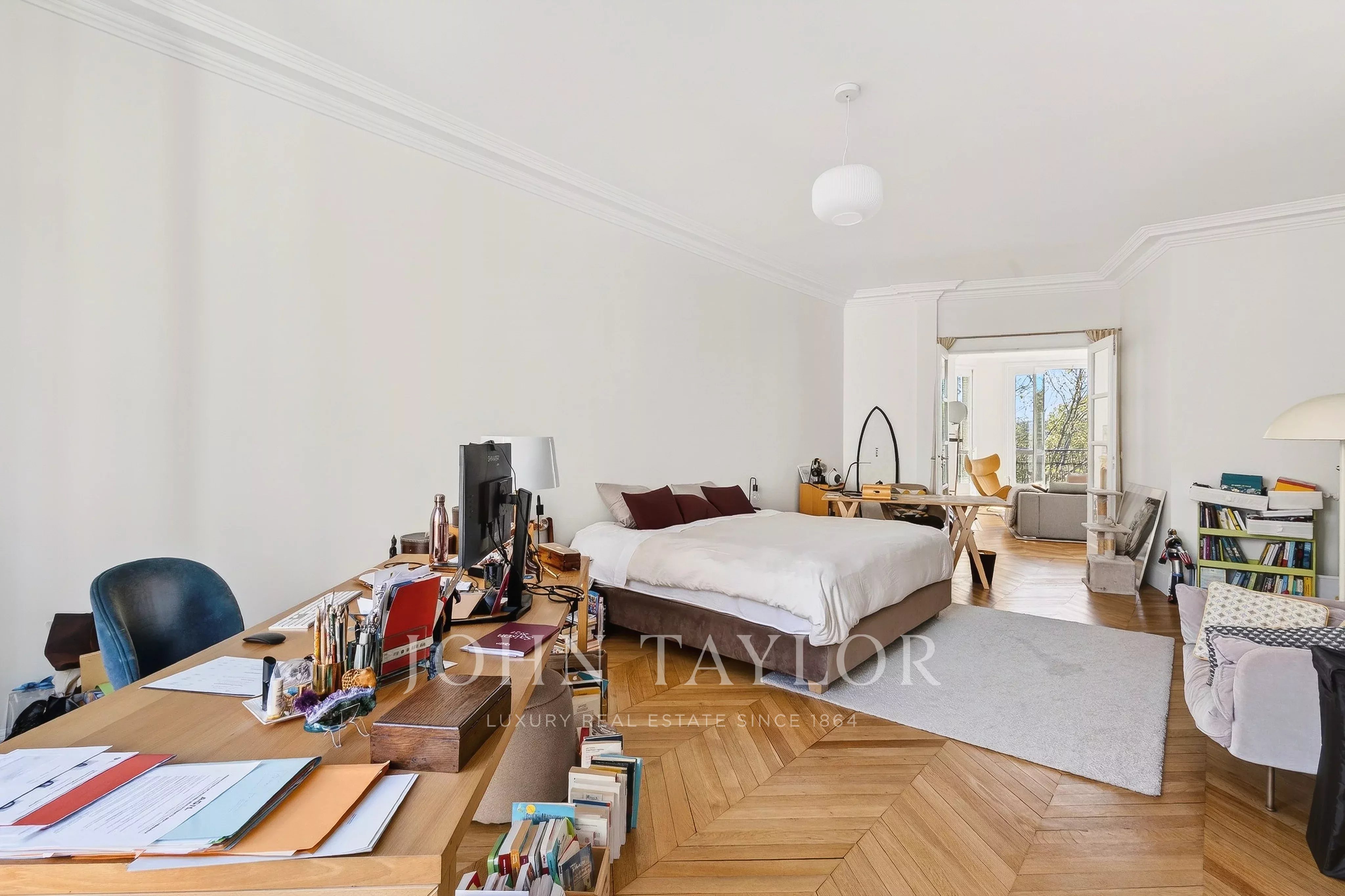 D’une superficie de 199,29 m² (loi Carrez) et bénéficiant de trois mètres de hauteur sous plafond, ce bien familial et de réception, seul sur le palier, a fait l’objet d’une rénovation complète alliant élégance et modernité.
