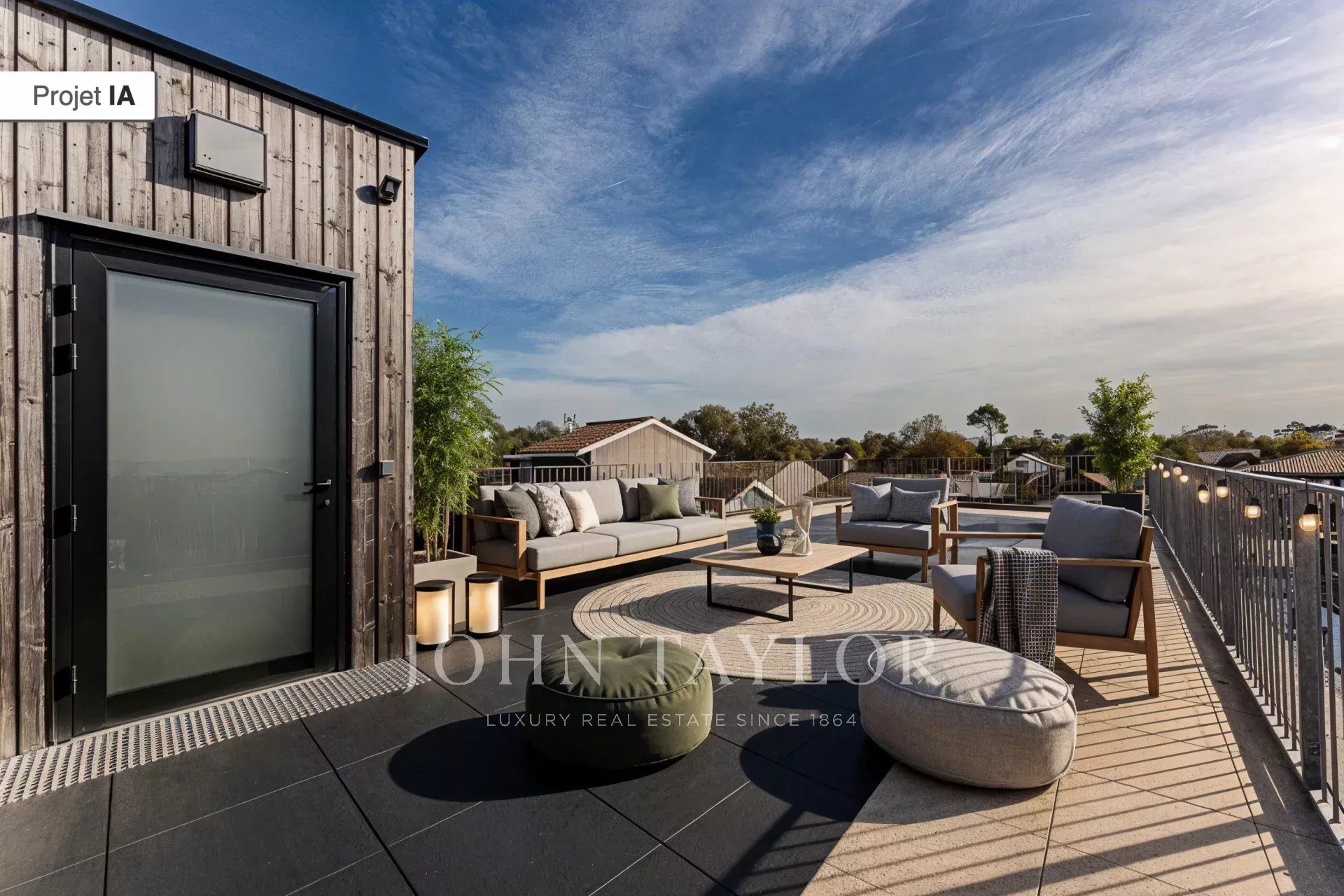 • Un rooftop spectaculaire de 76 m² à l'étage supérieur, offrant un panorama unique et contemplatif sur le Bassin d'Arcachon.