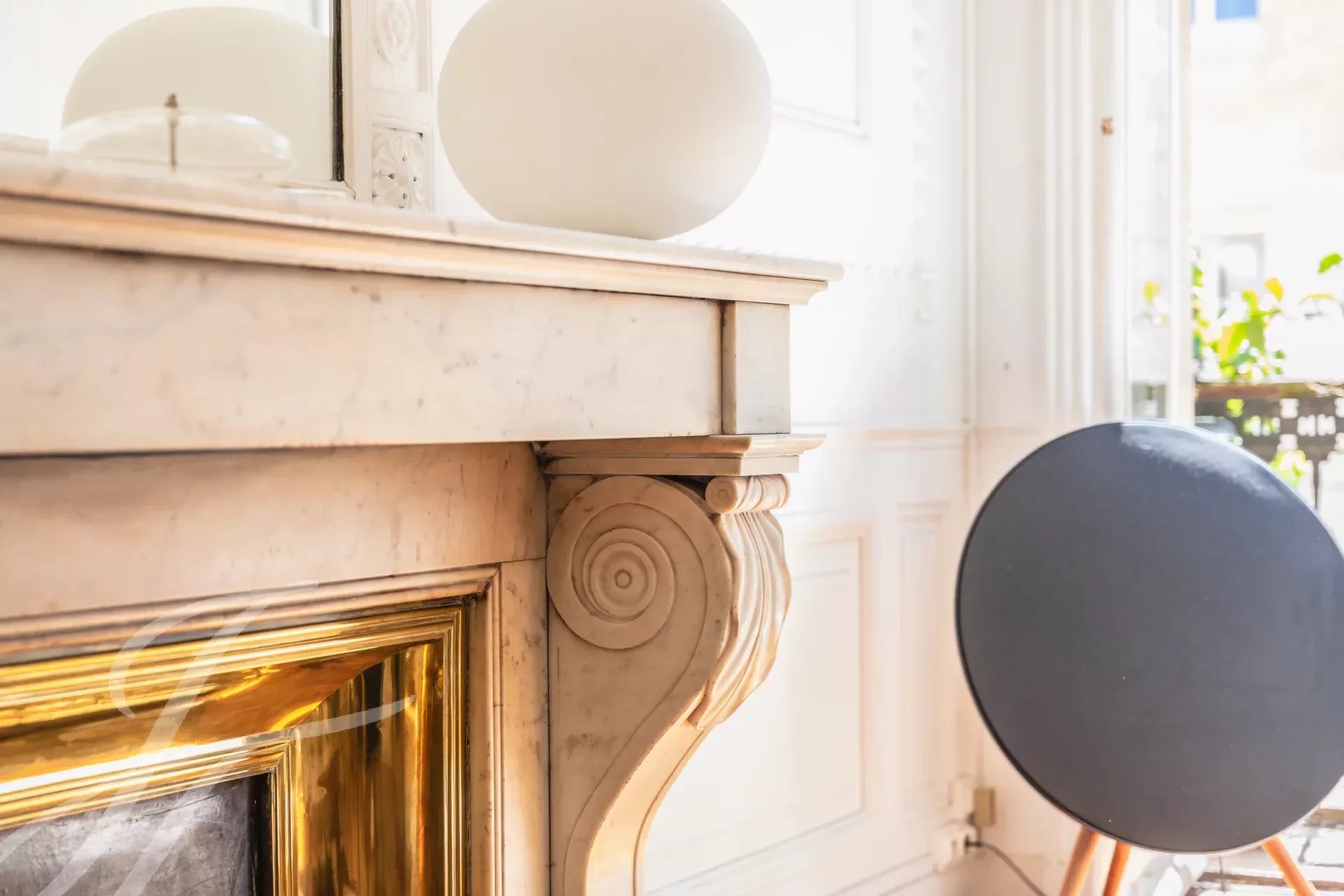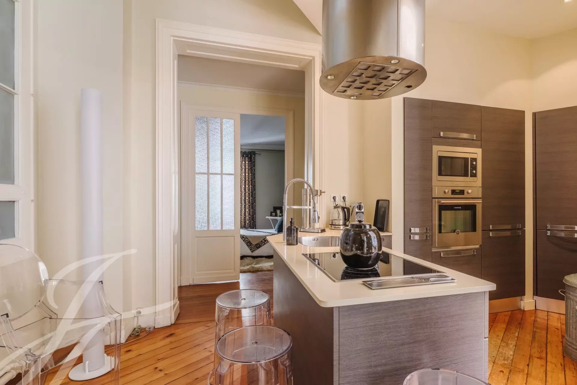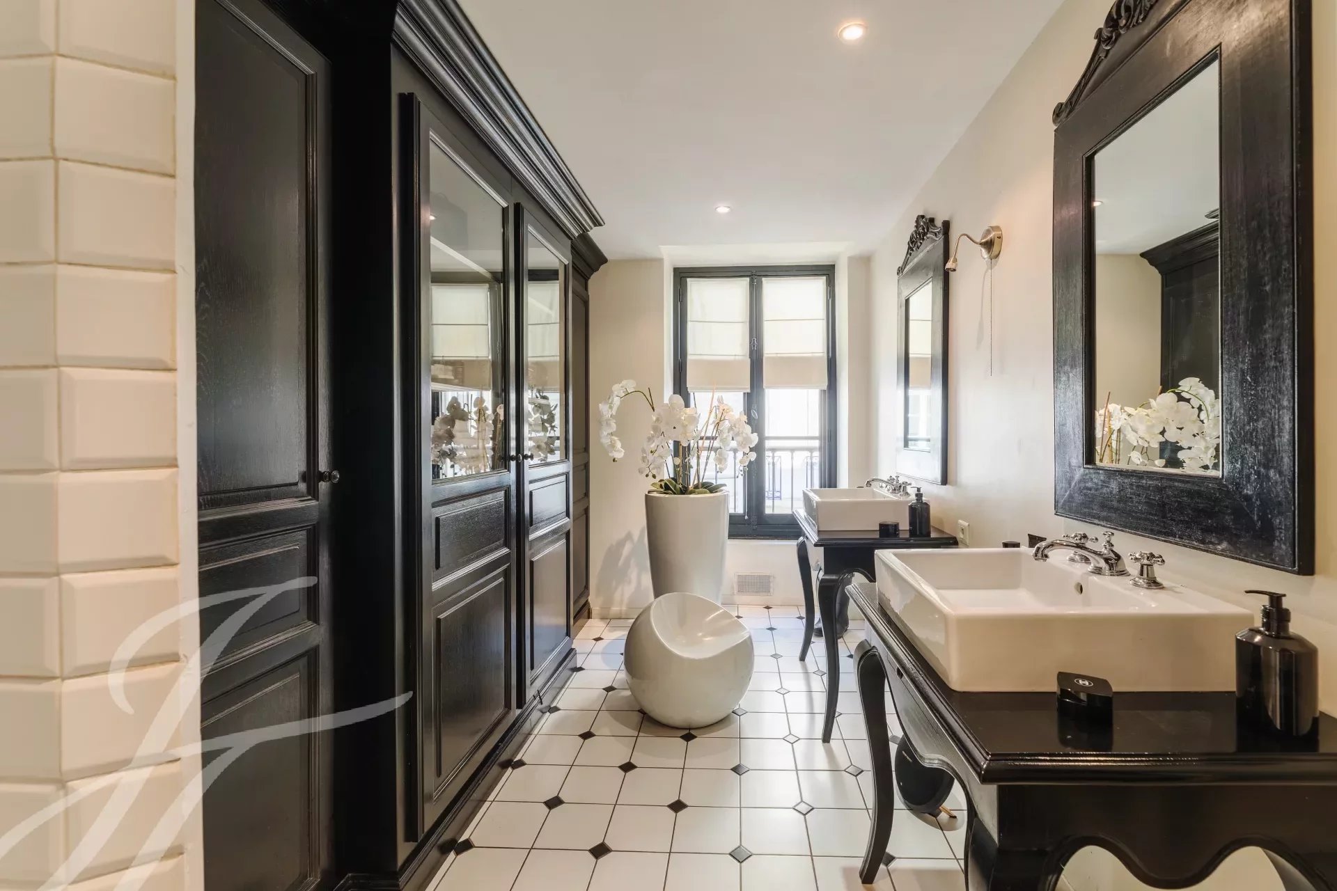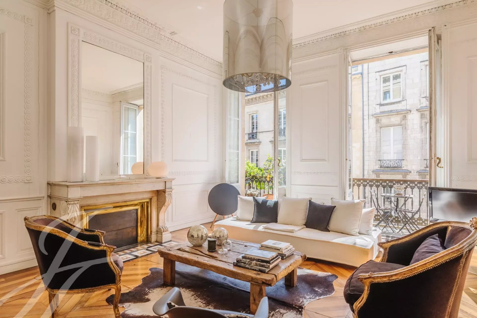 Au cœur de la prestigieuse Place du Palais, cet appartement de caractère a su conserver avec soin son esprit d’origine. Il met en valeur de magnifiques éléments architecturaux : moulures, parquet en bois massif, cheminées anciennes.