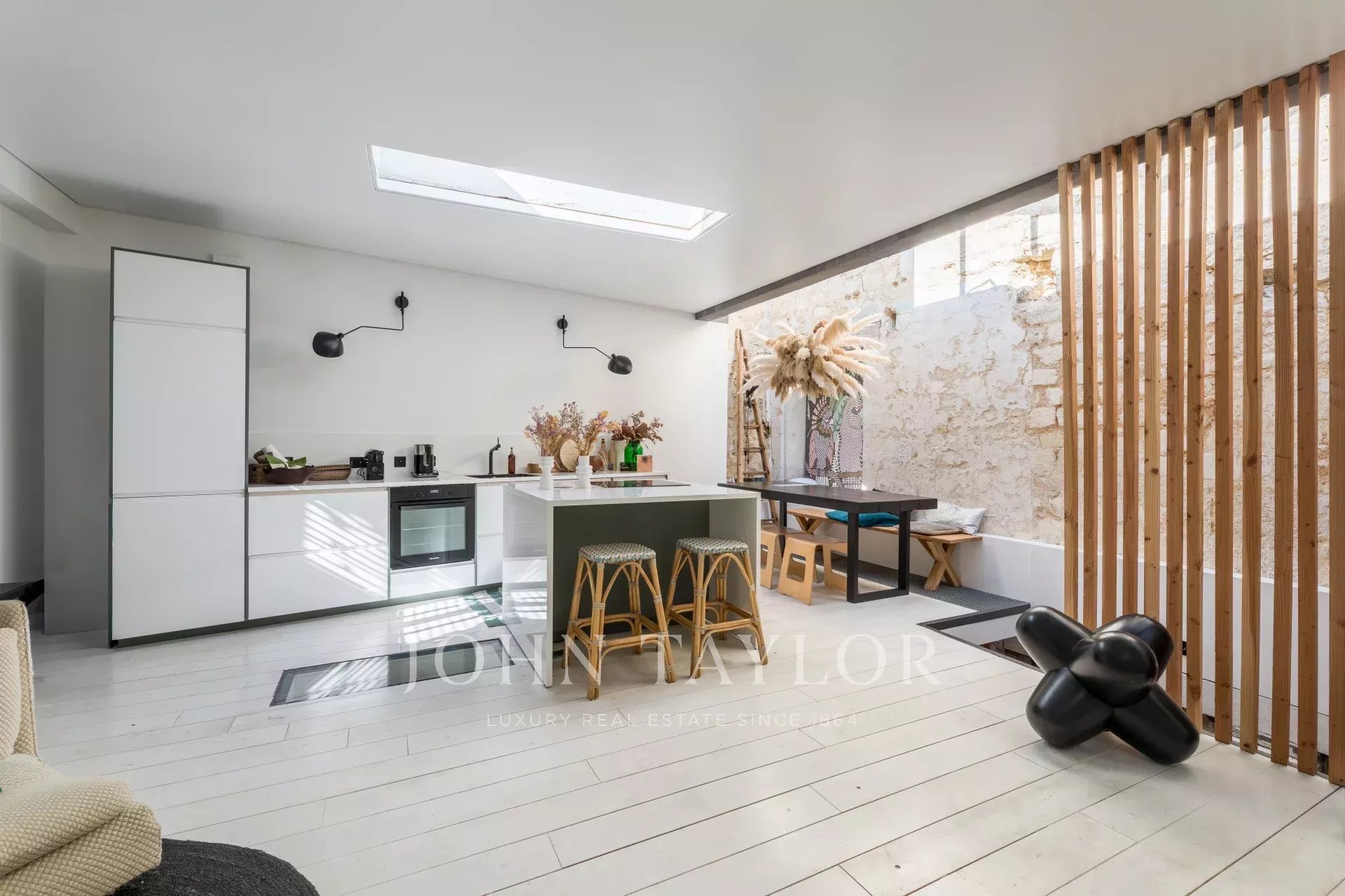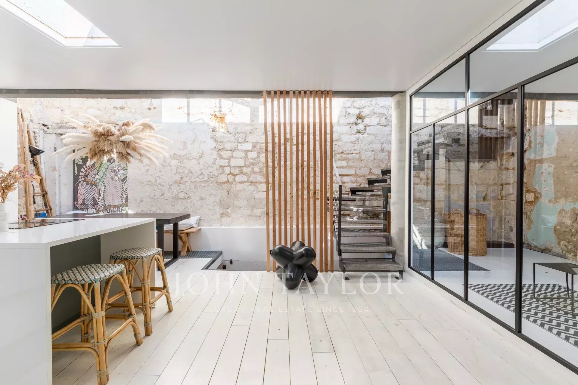 Au cœur du quartier emblématique des Chartrons, ce loft de 122 m2 au sol (106 m2 Carrez) se niche dans un environnement calme et préservé. Entièrement repensé par un architecte, il conjugue lignes contemporaines, matériaux nobles et atmosphère apaisante.