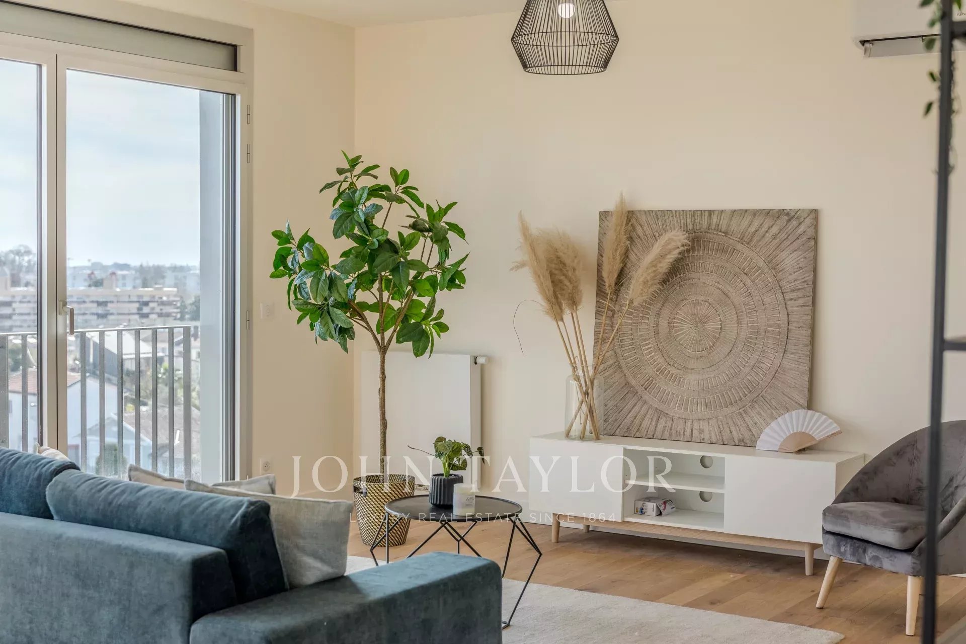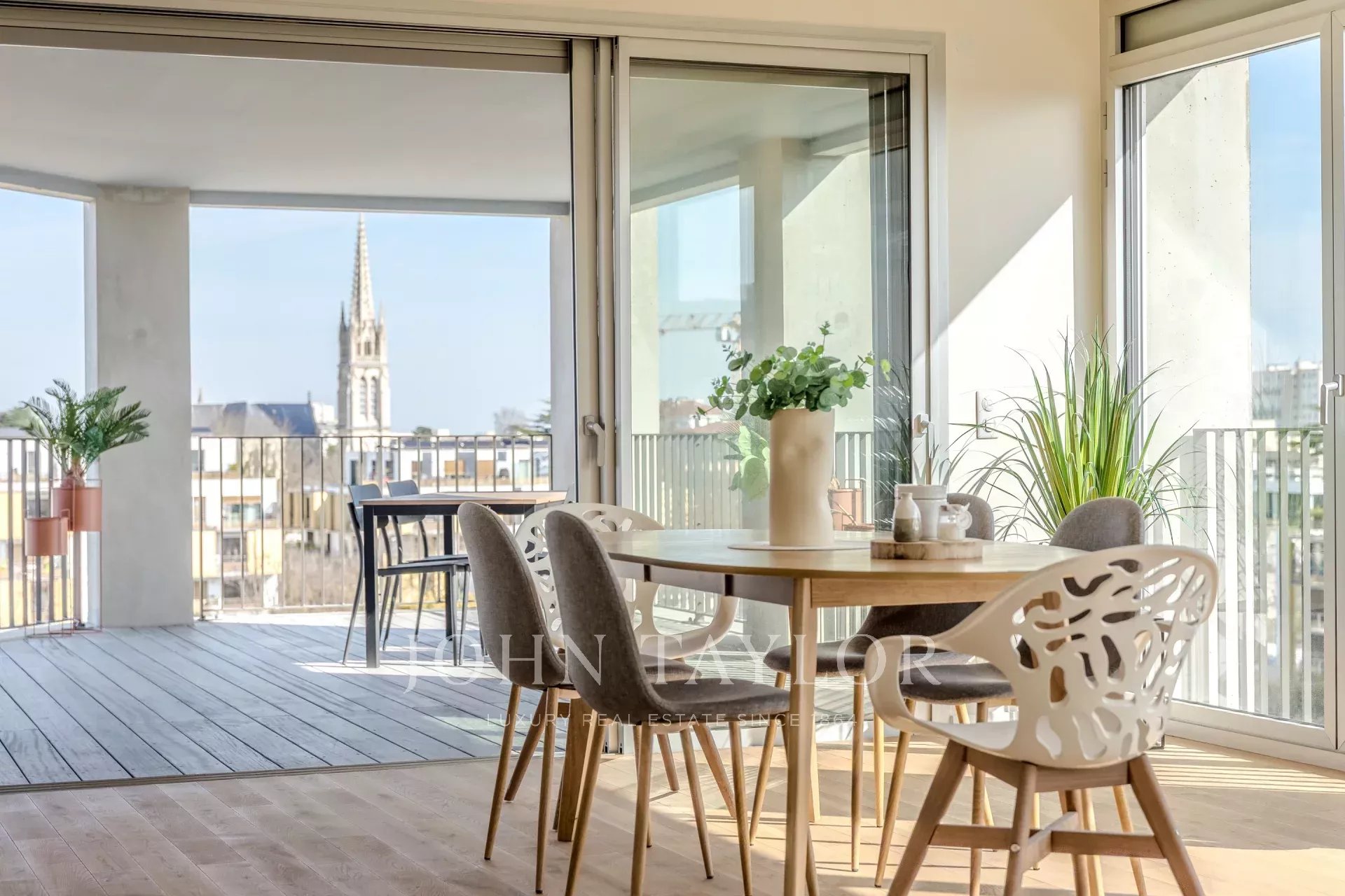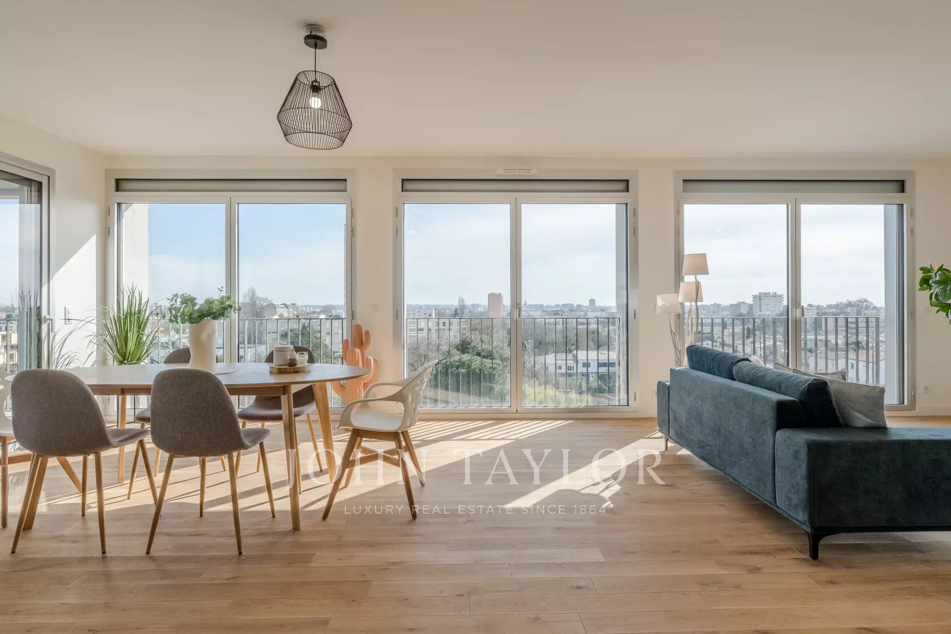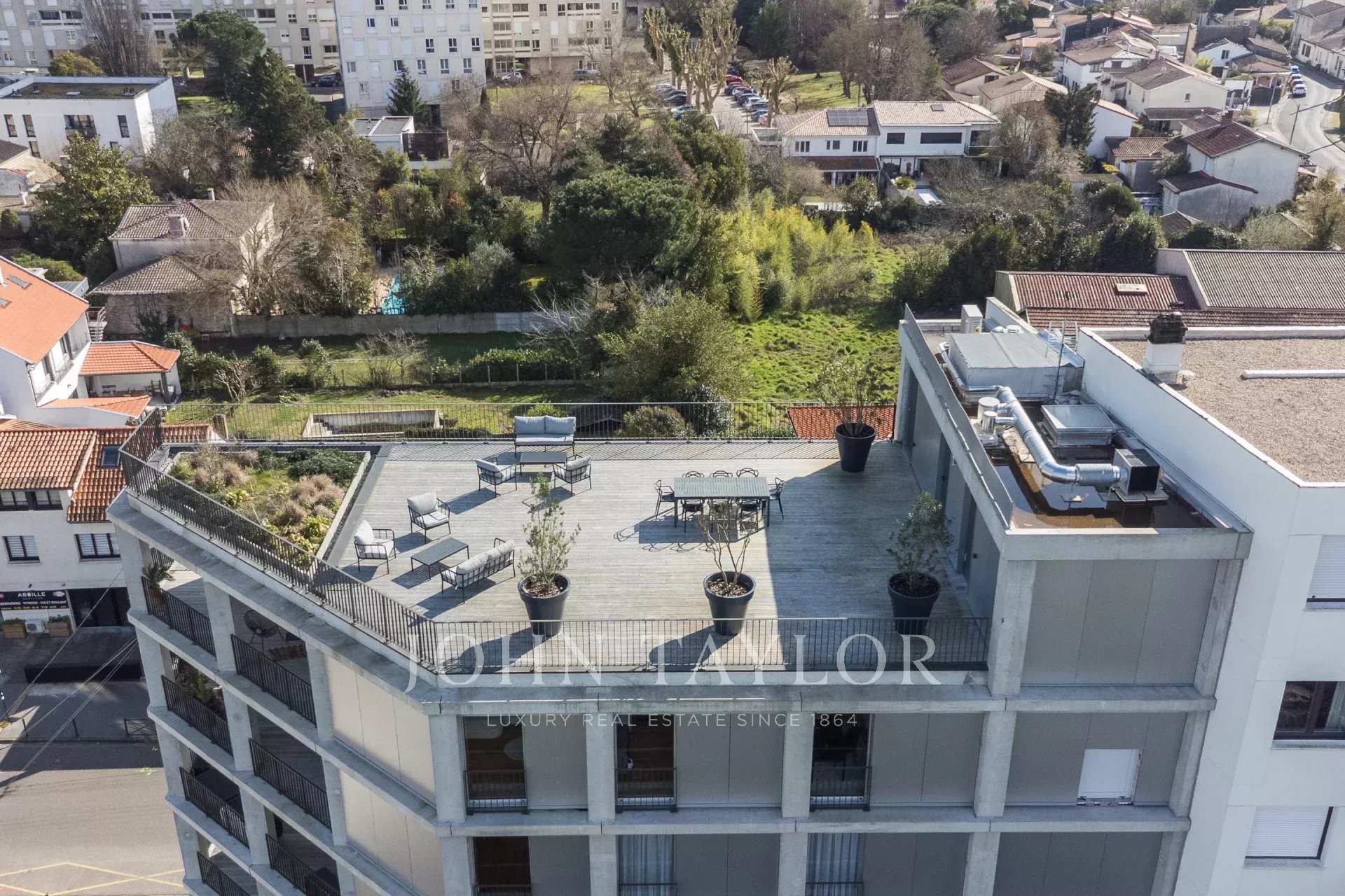 Au cœur de Caudéran, à proximité immédiate des commerces et transports, cet appartement de 124m², entièrement climatisé, au 6ᵉ et dernier étage d'une résidence moderne de six logements offre un cadre de vie privilégié.