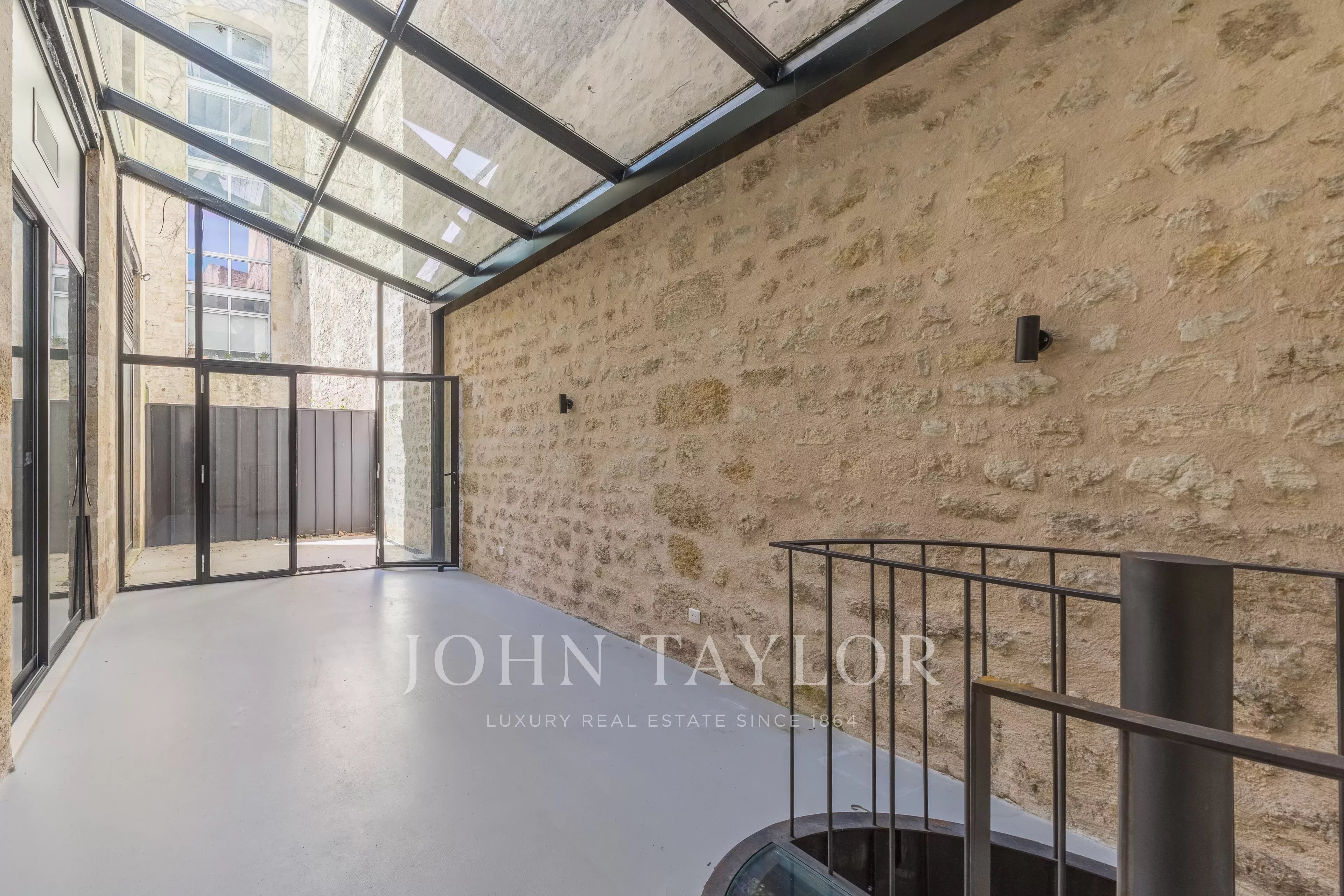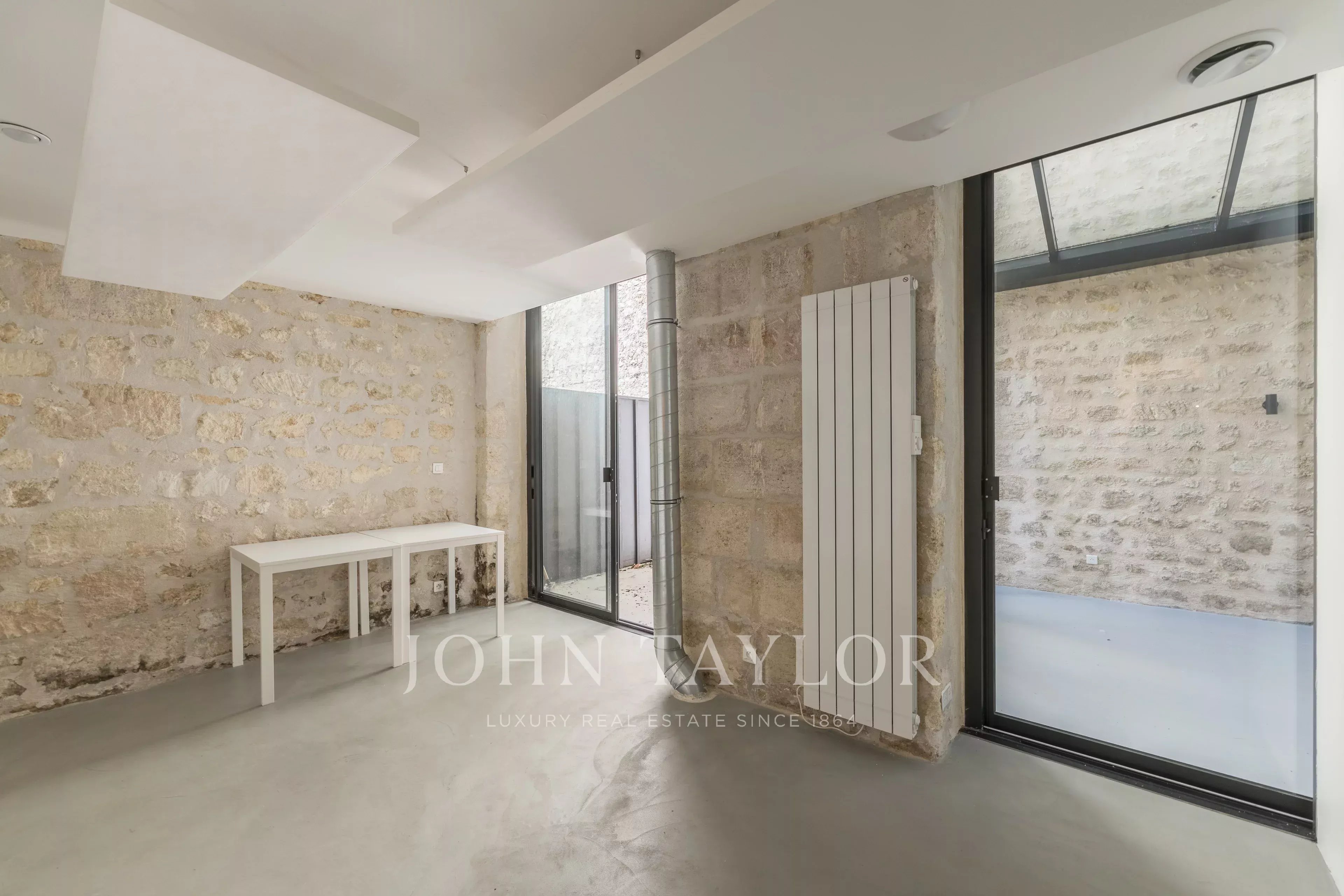 Toutes les pièces ont été entièrement rénovées avec des matériaux de qualité : béton ciré, menuiseries aluminium, traitement acoustique intégré.