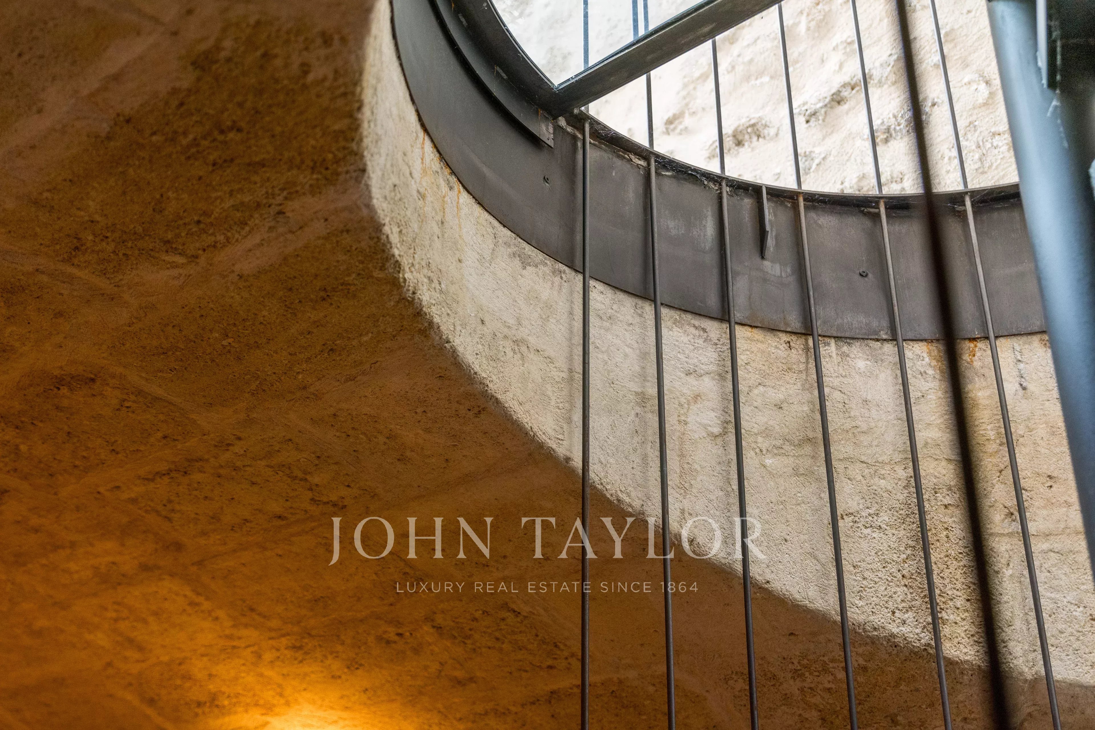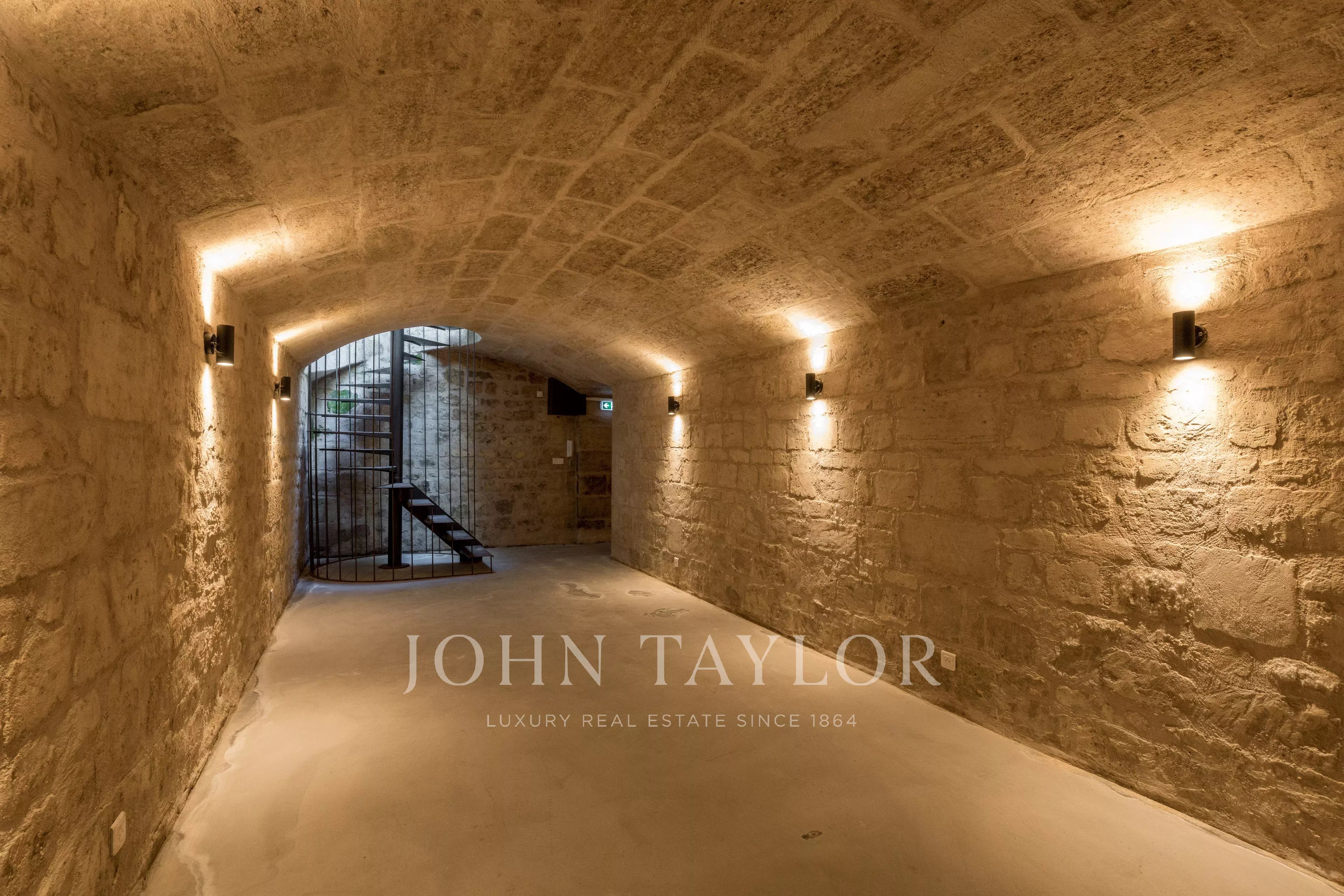 Le rez-de-chaussée est parfaitement distribué et organisé en plusieurs zones distinctes : une grande salle sous verrière apportant lumière et caractère, des espaces de travail et une agréable cour privative, véritable atout en plein cœur de la ville. En sous-sol, une salle voûtée de 55 m² pleine de charme pour un lieu de réception ou de détente.