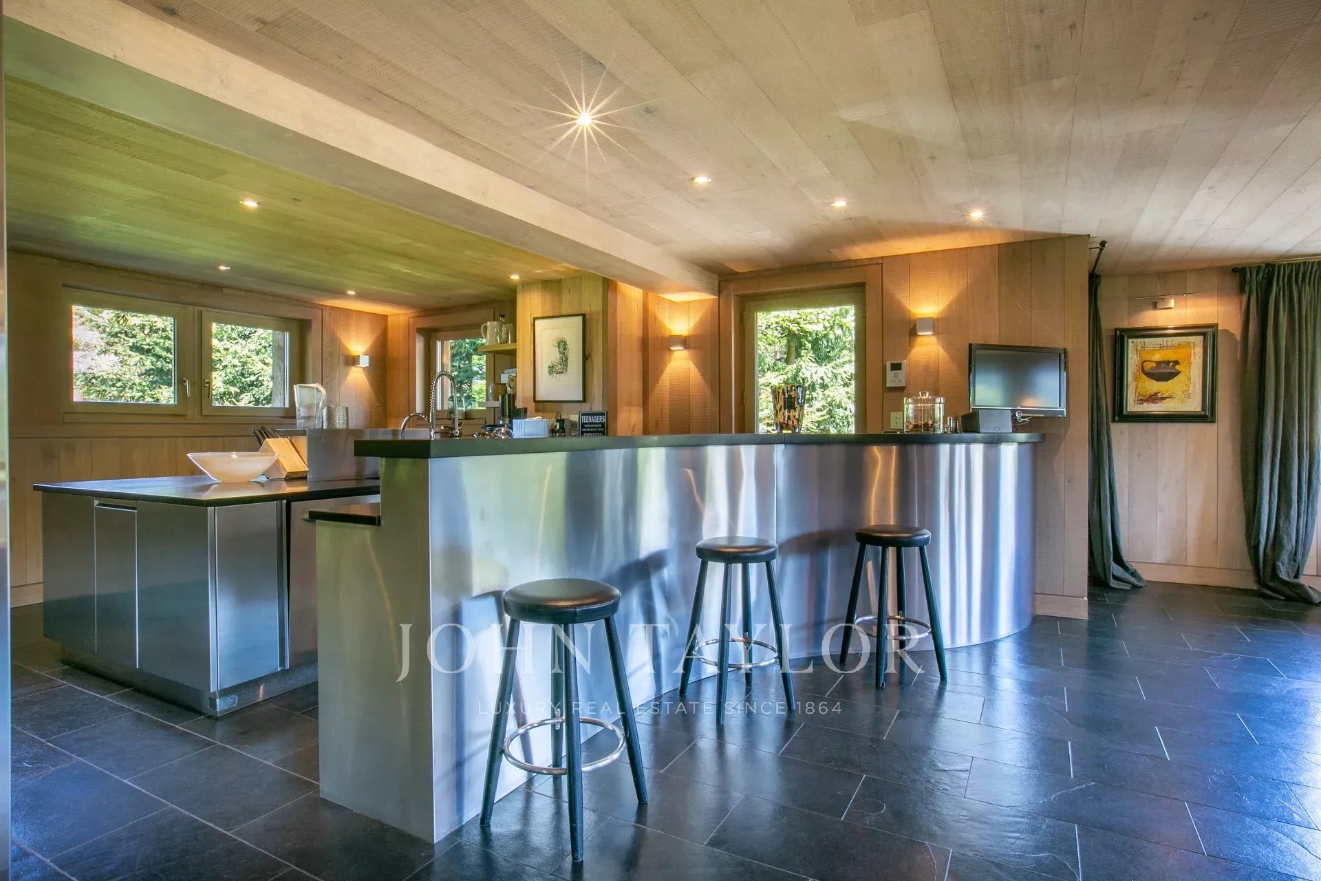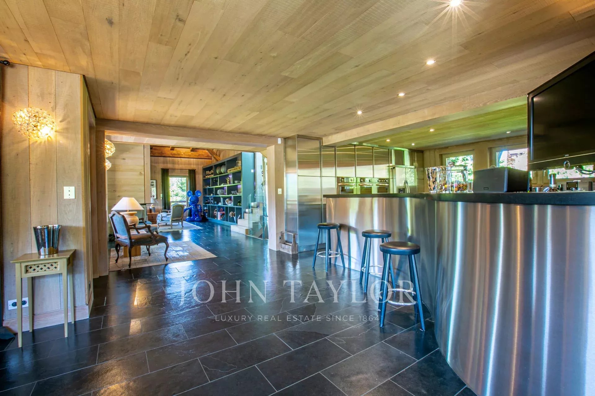 5 chambres en suite, dortoir enfants, chambre de service, cuisine entièrement équipée ouverte sur salle à manger/salon avec cheminée, terrasse. Espace bien-être ( piscine intérieure, jacuzzi, spa, salle de sport), home cinéma, cave à vin. Garage.