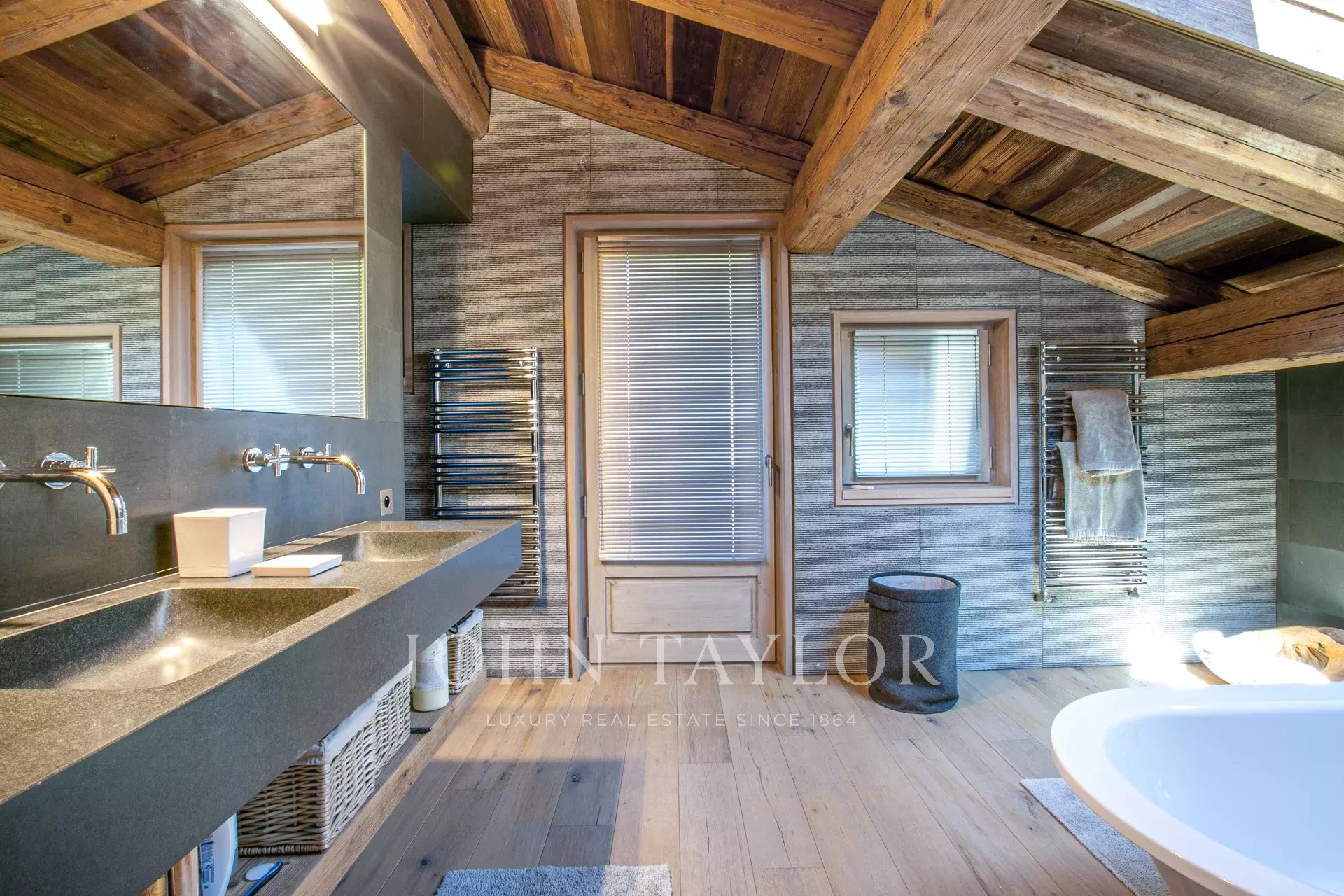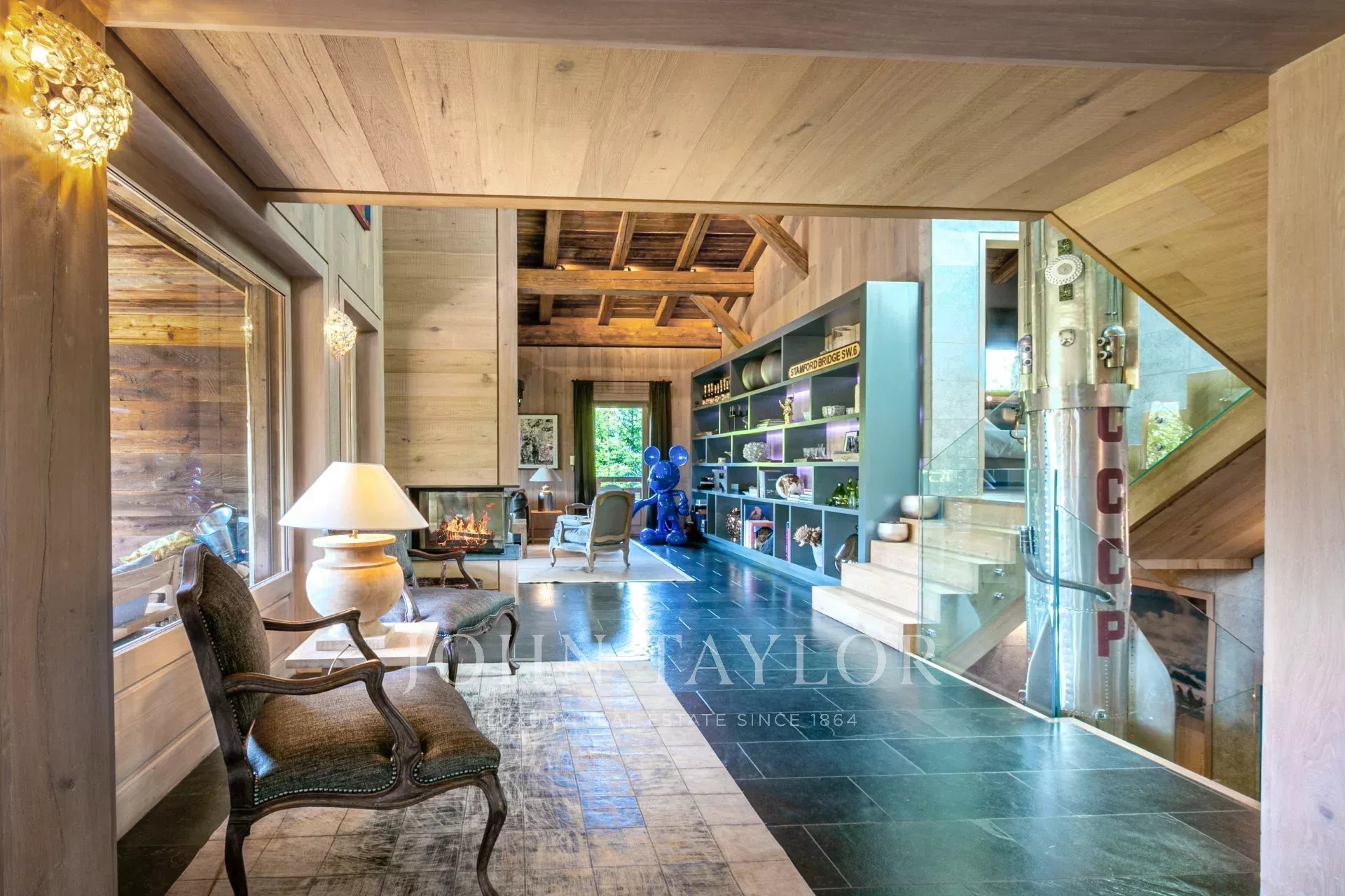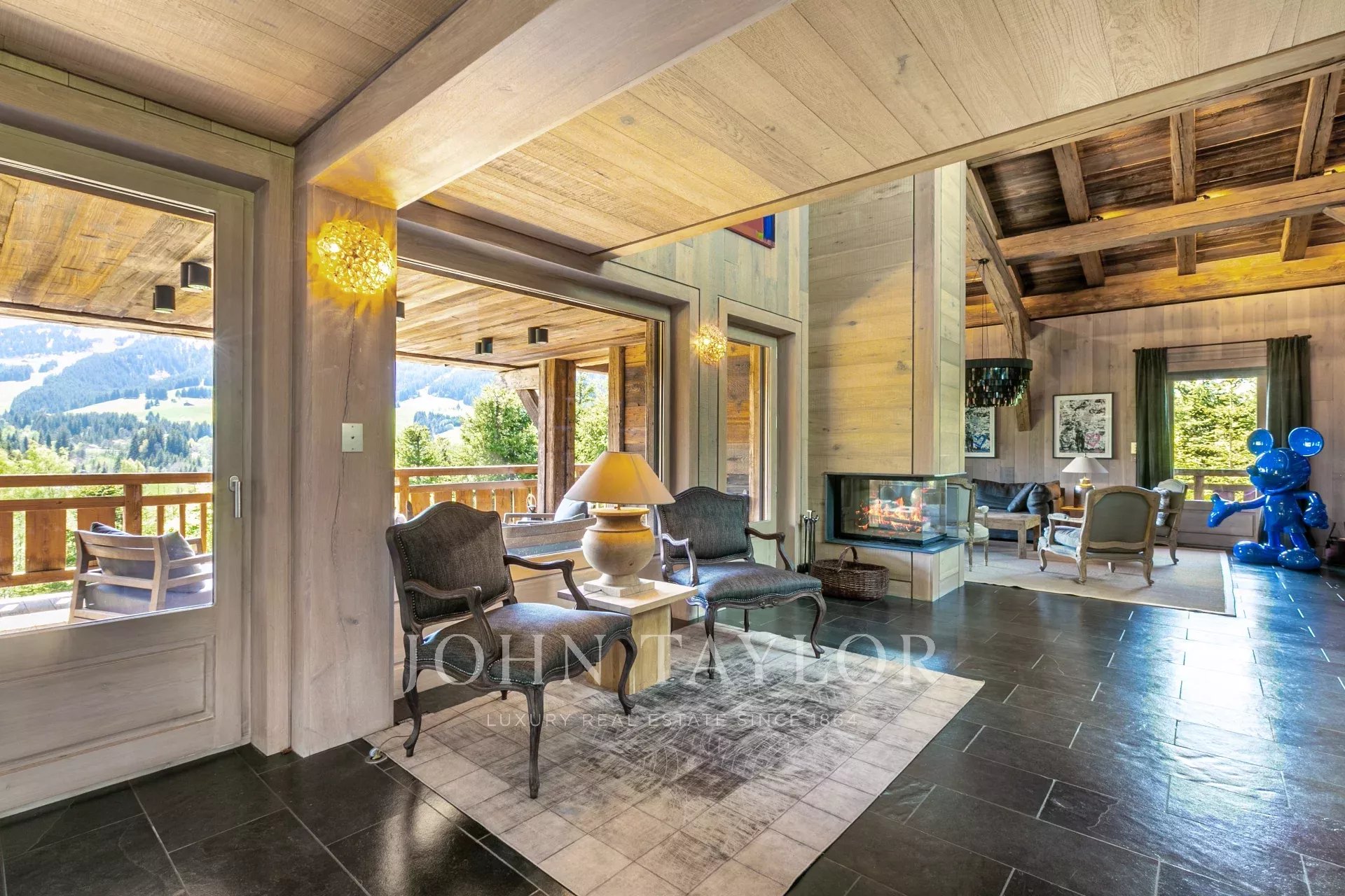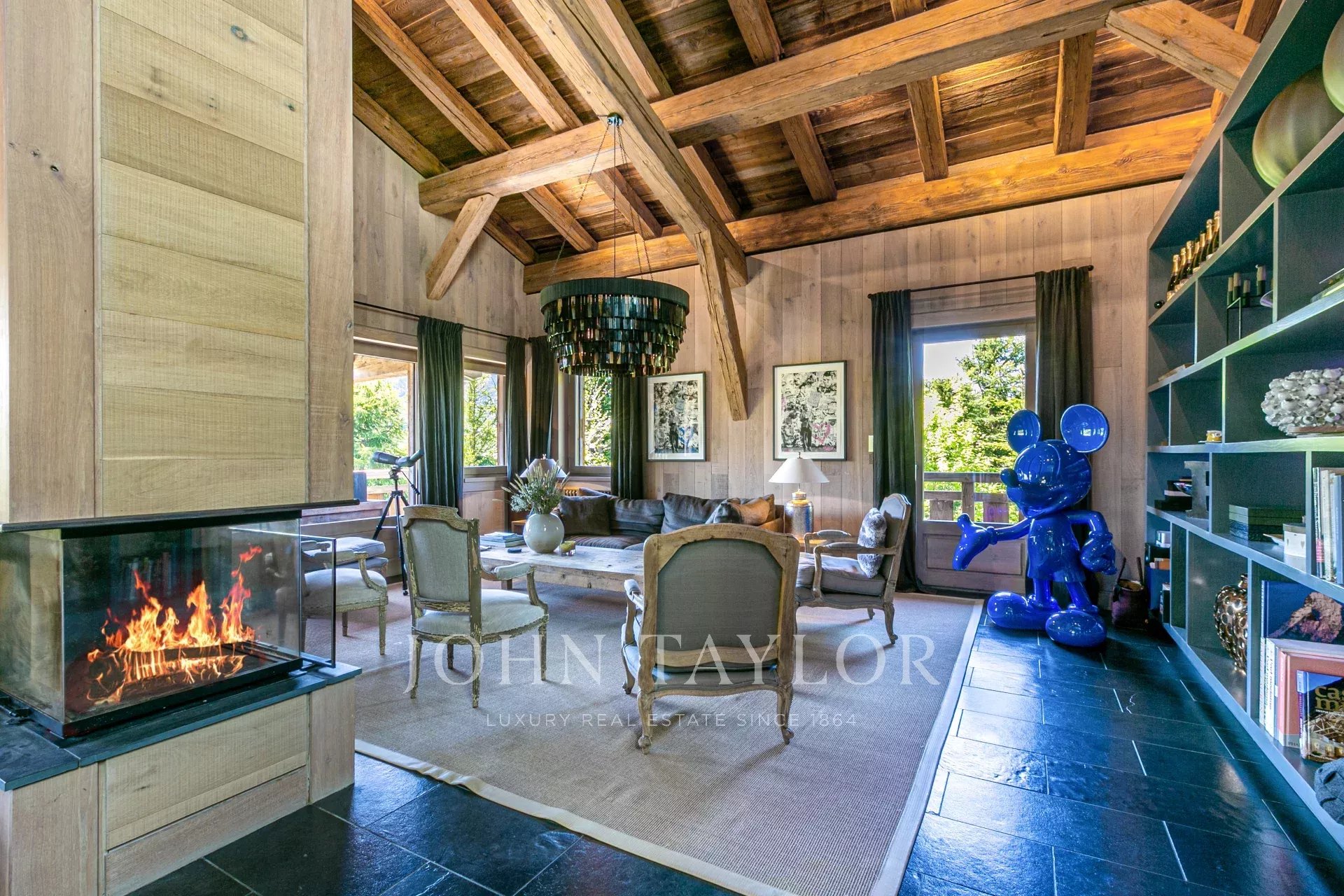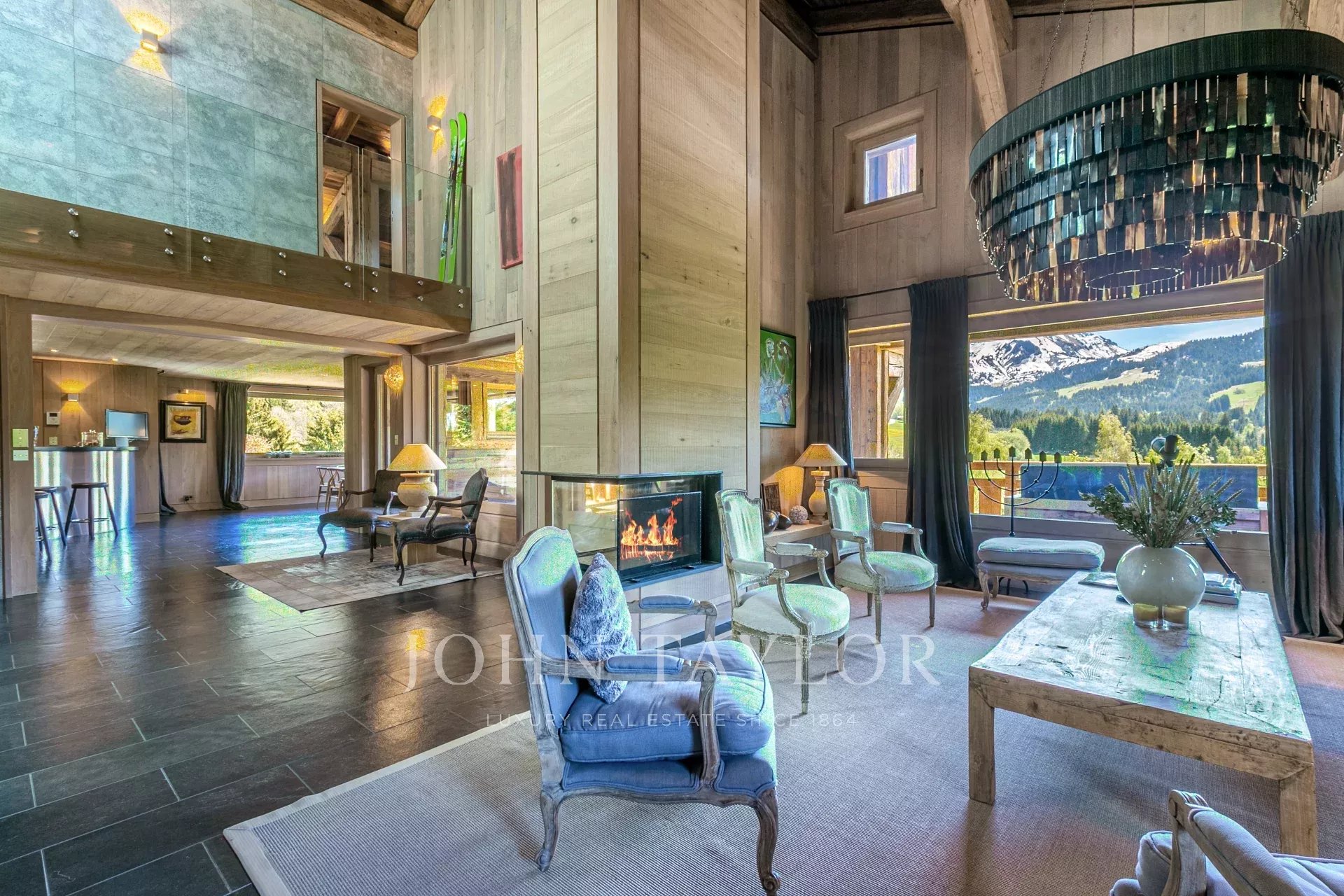Magnifique chalet d'une surface totale d'environ 515 m2 situé dans un hameau privilégié au pied du Four Seasons. Elevé sur 4 niveaux, il offre une belle pièce de vie avec un salon cathédrale ainsi qu'une vue panoramique sur les montagnes environnantes.