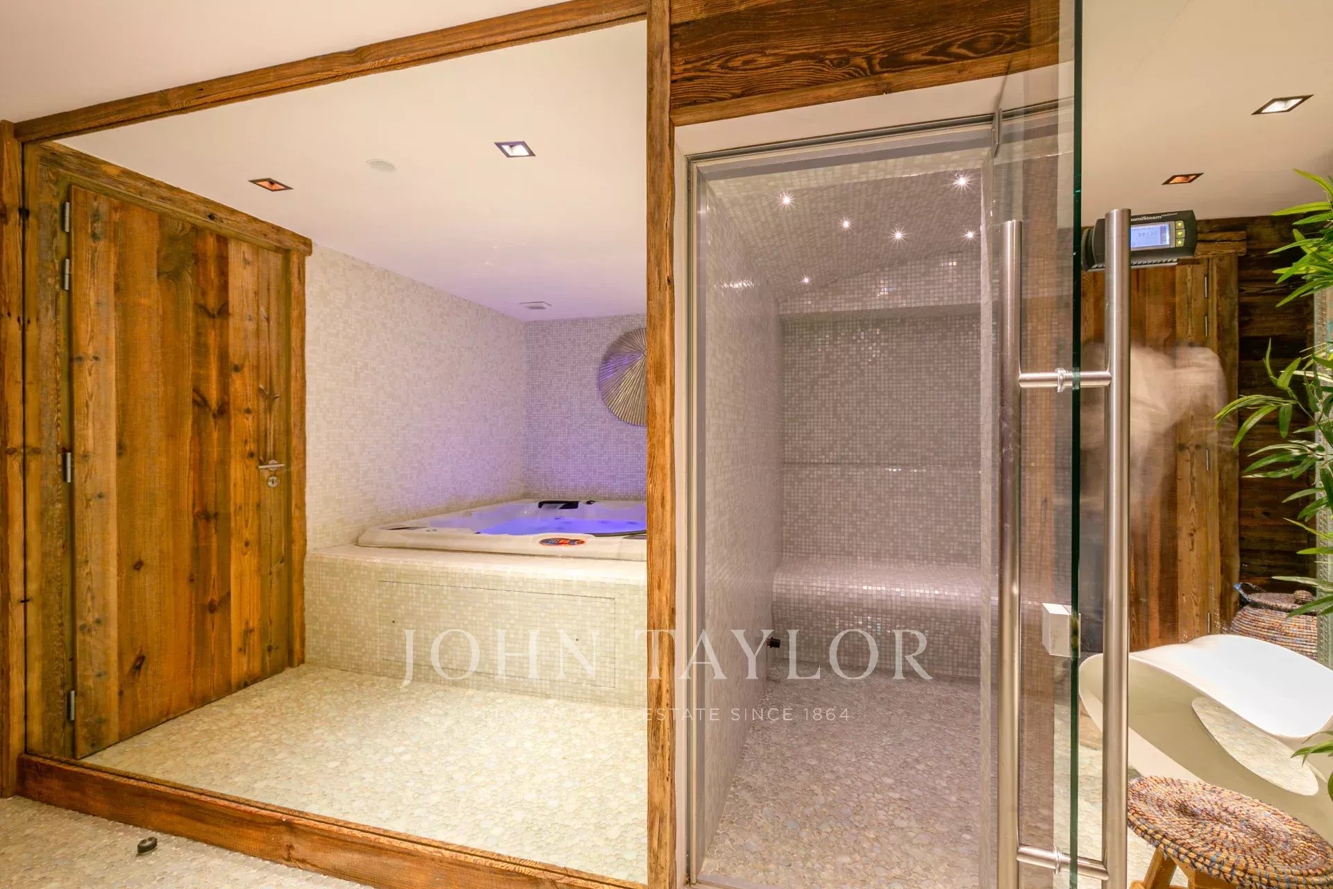 Elevée sur 3 niveaux, il offre un majestueux séjour/salon sous charpente avec cheminée donnant sur une belle terrasse, une cuisine ouverte entièrement équipée, un bureau, 6 chambres en suite dont une superbe chambre de maître avec dressing, vaste salle de bains et terrasse.Espace détente avec hammam et jacuzzi. Cave à vin. Buanderie Bulthaup.