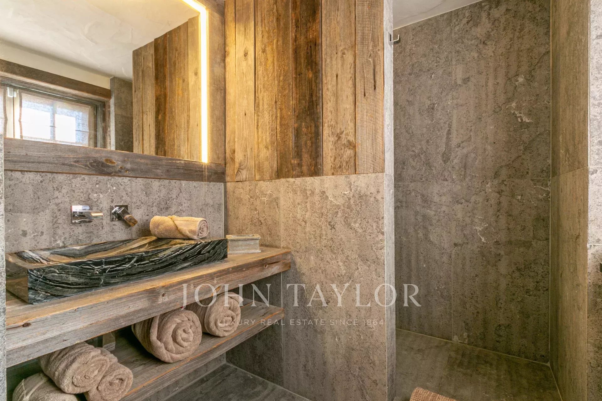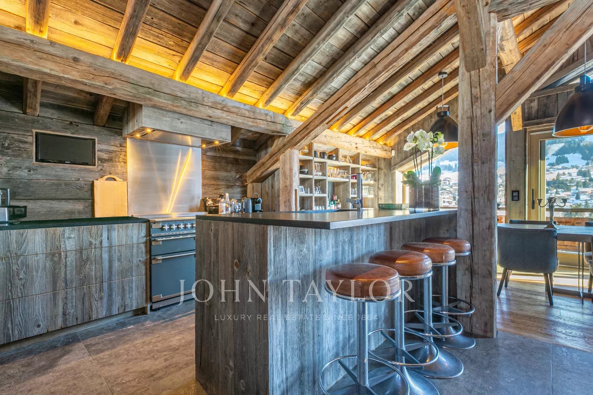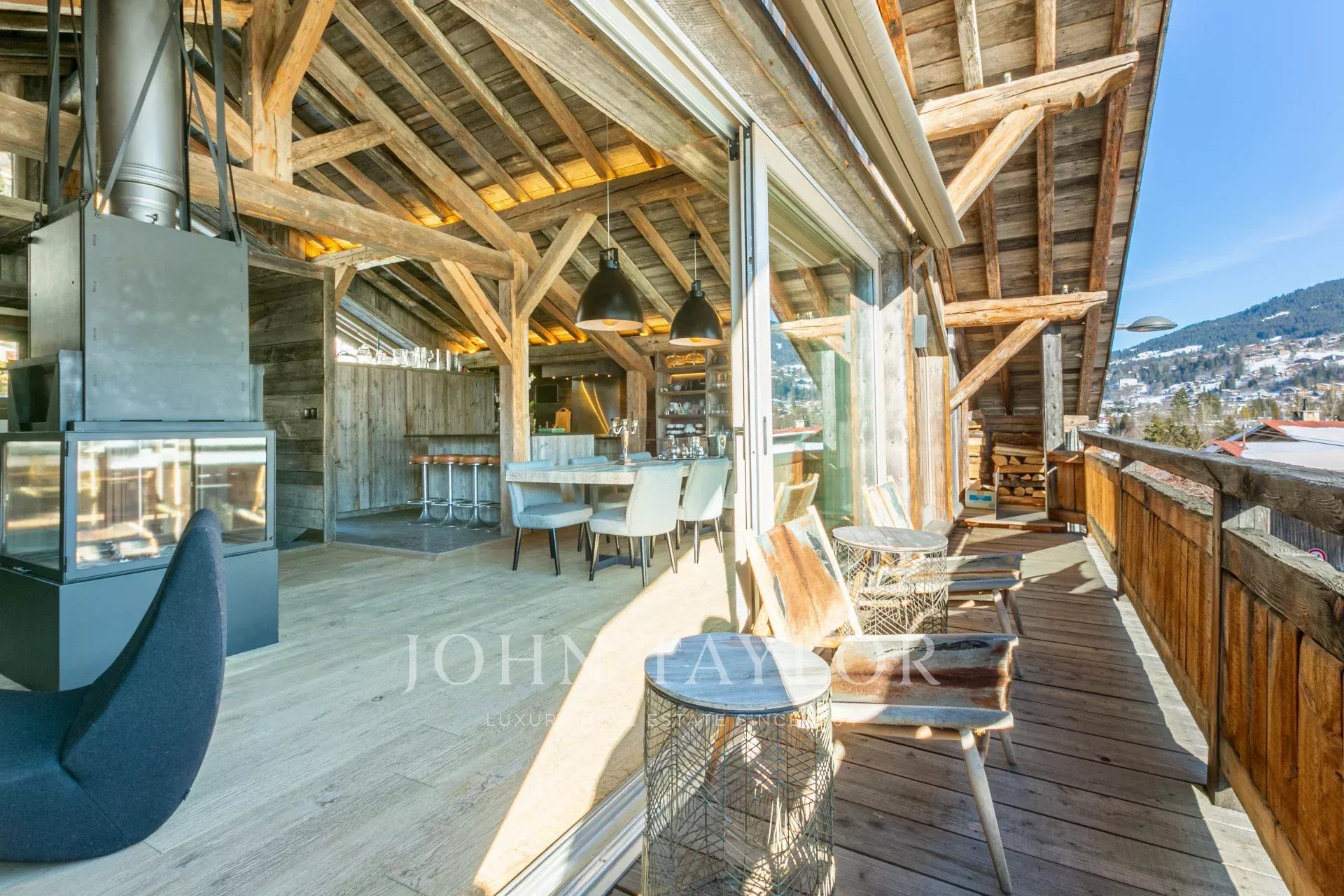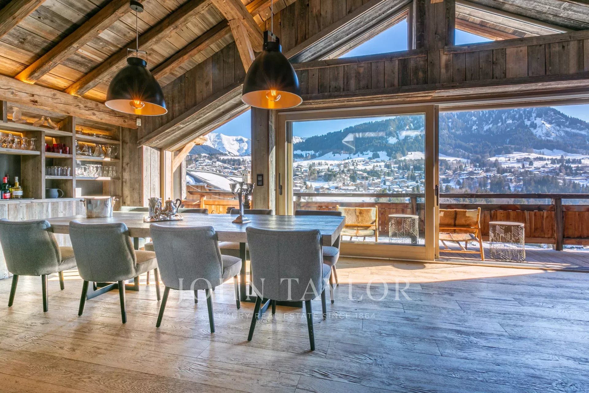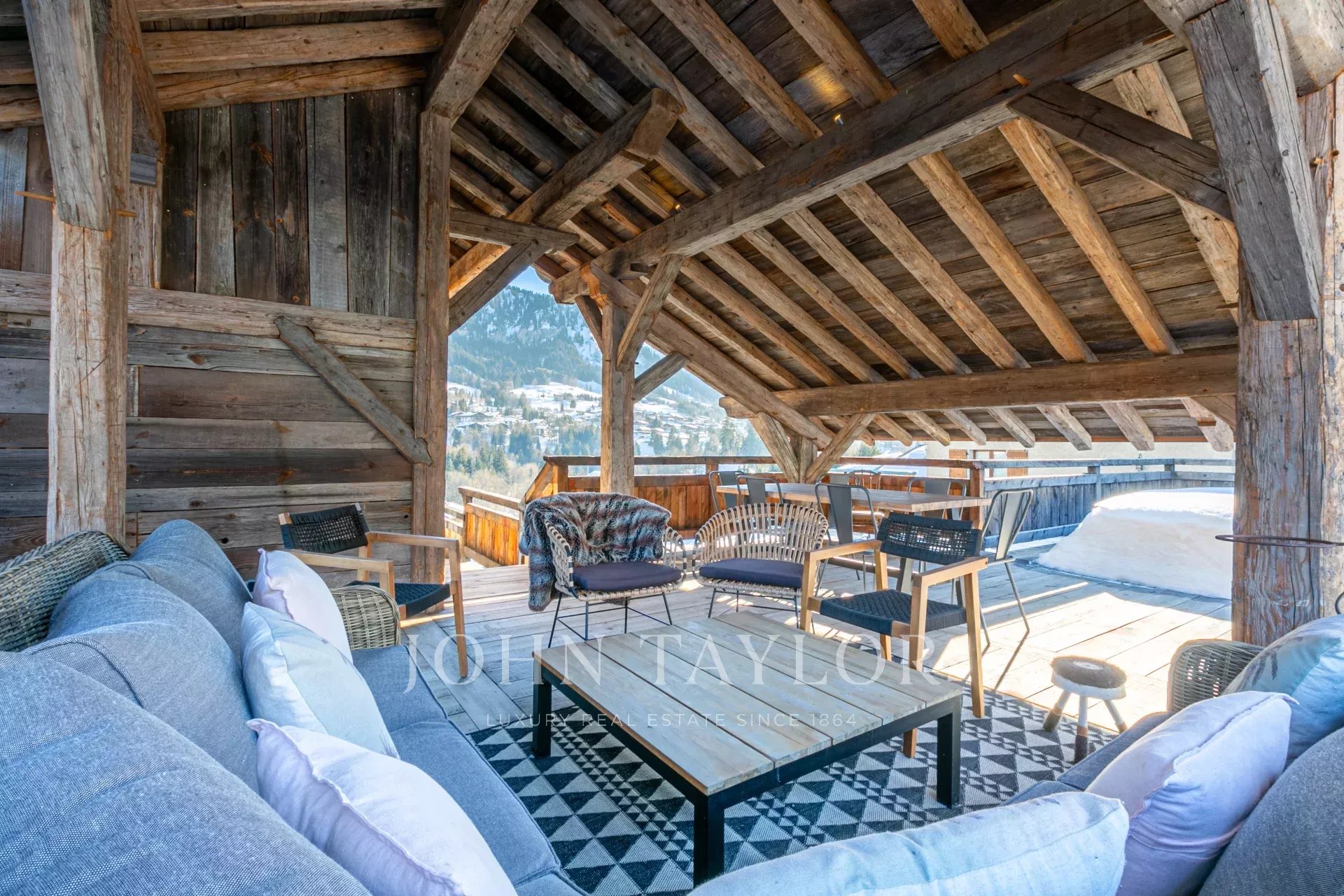 Il offre 5 chambres en suite, cuisine ouverte sur salle à manger, vaste séjour cathédrale / salon avec cheminée, superbe terrasse d'été, jacuzzi, salle de sport et espace détente. Ascenseur/monte-charge. Double garage (40 m2).Chalet vendu meublé.