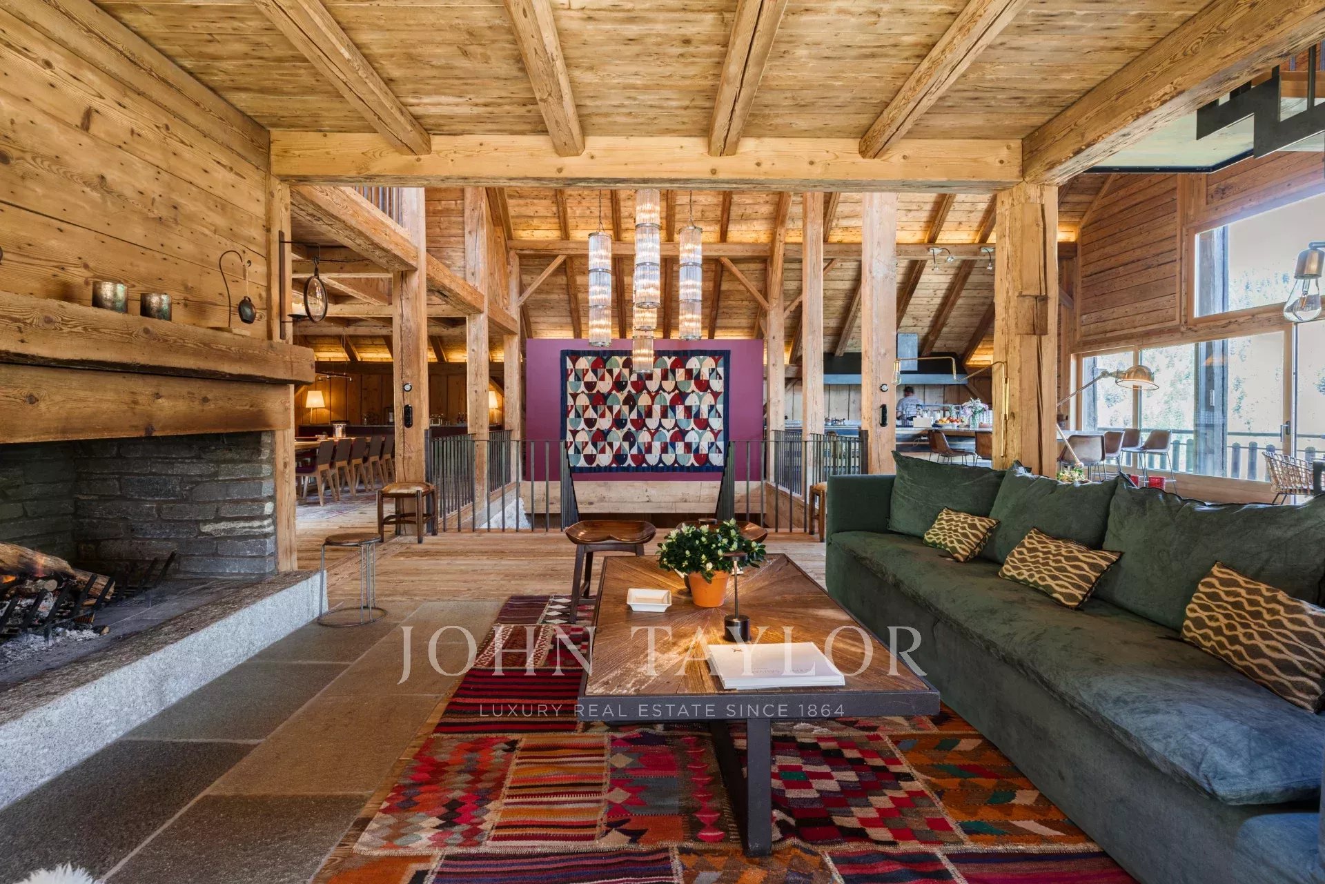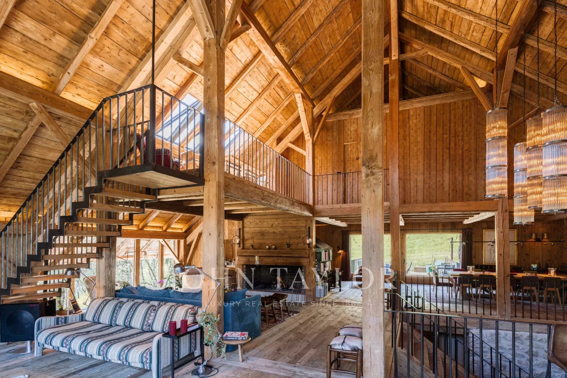 La pièce à vivre principale dispose d'une incroyable hauteur sous plafond.
