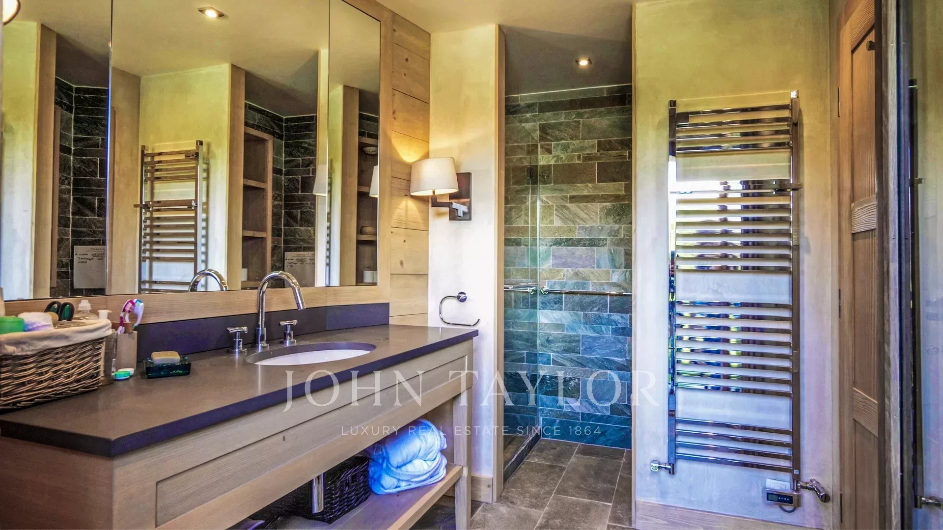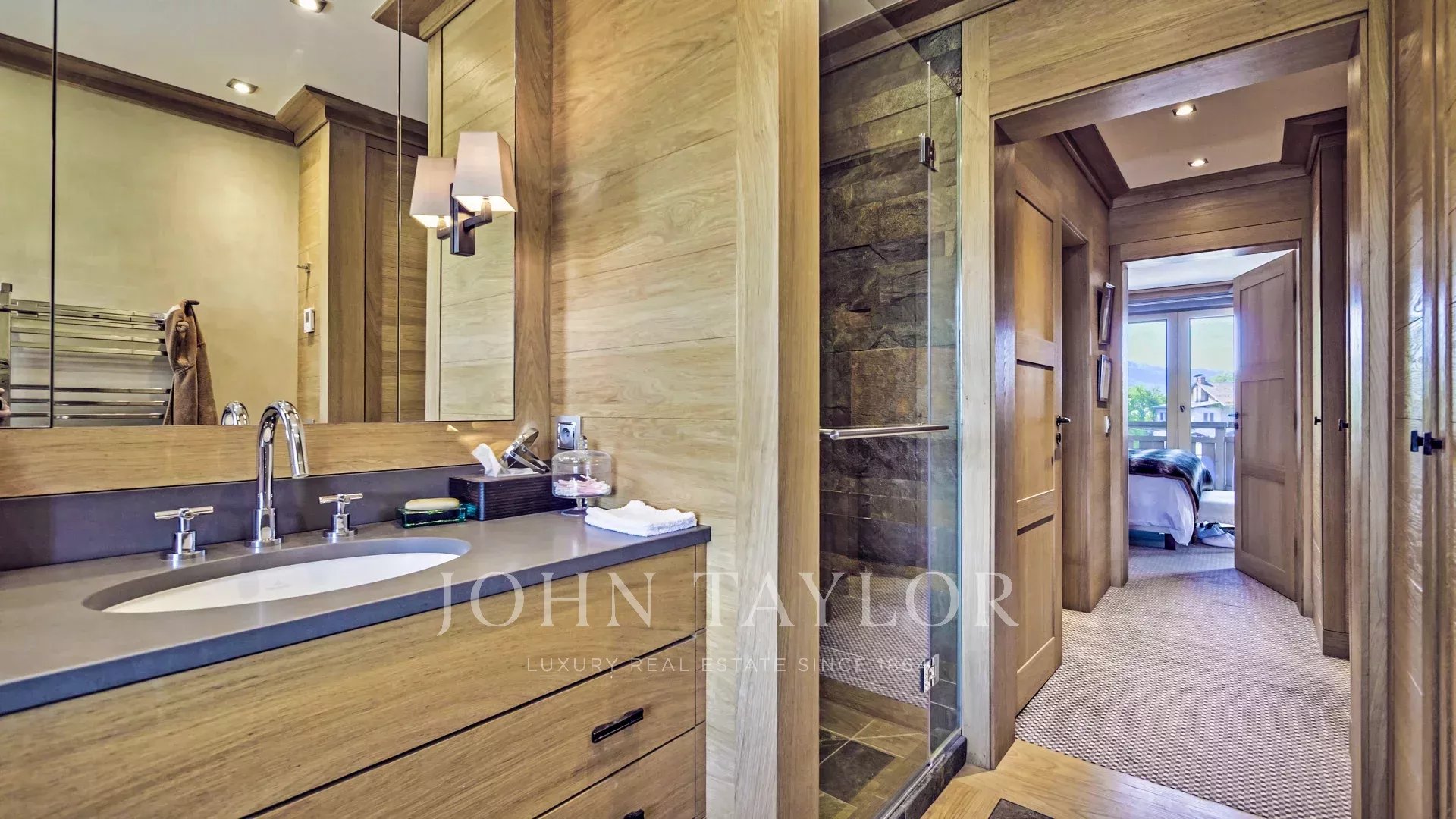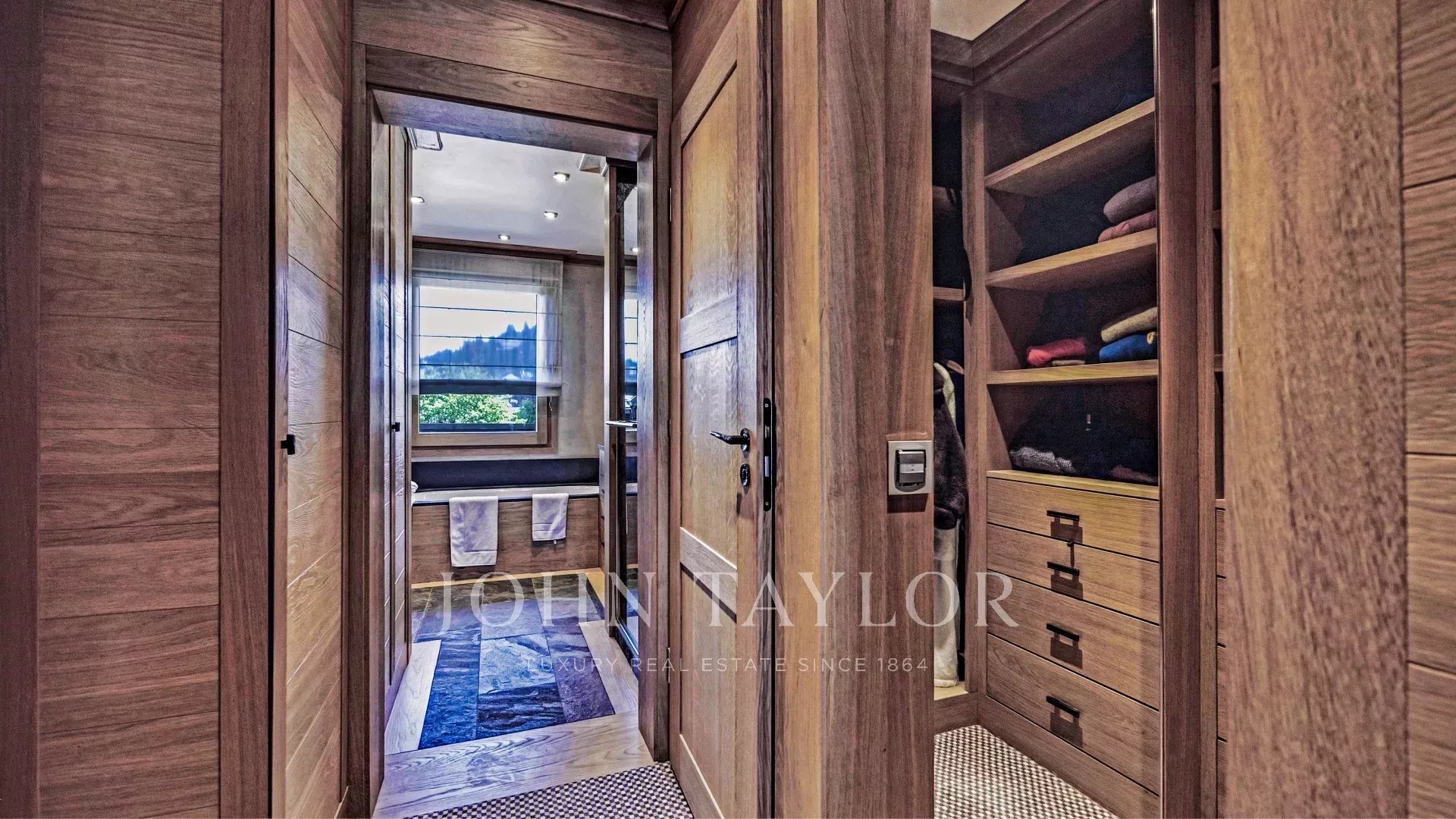 Chalet idéalement situé au coeur du village de Megève d’une surface totale de 301 m2 édifié sur un terrain d’environ 630 m2 sur 5 niveaux comprenant :