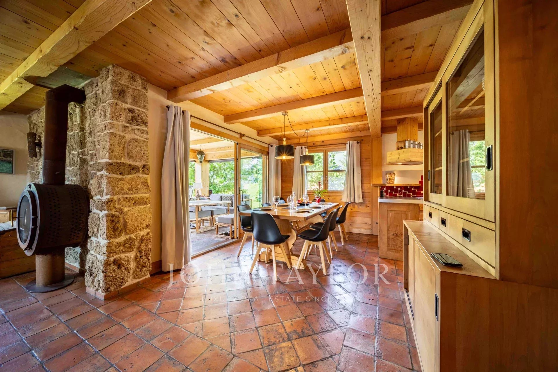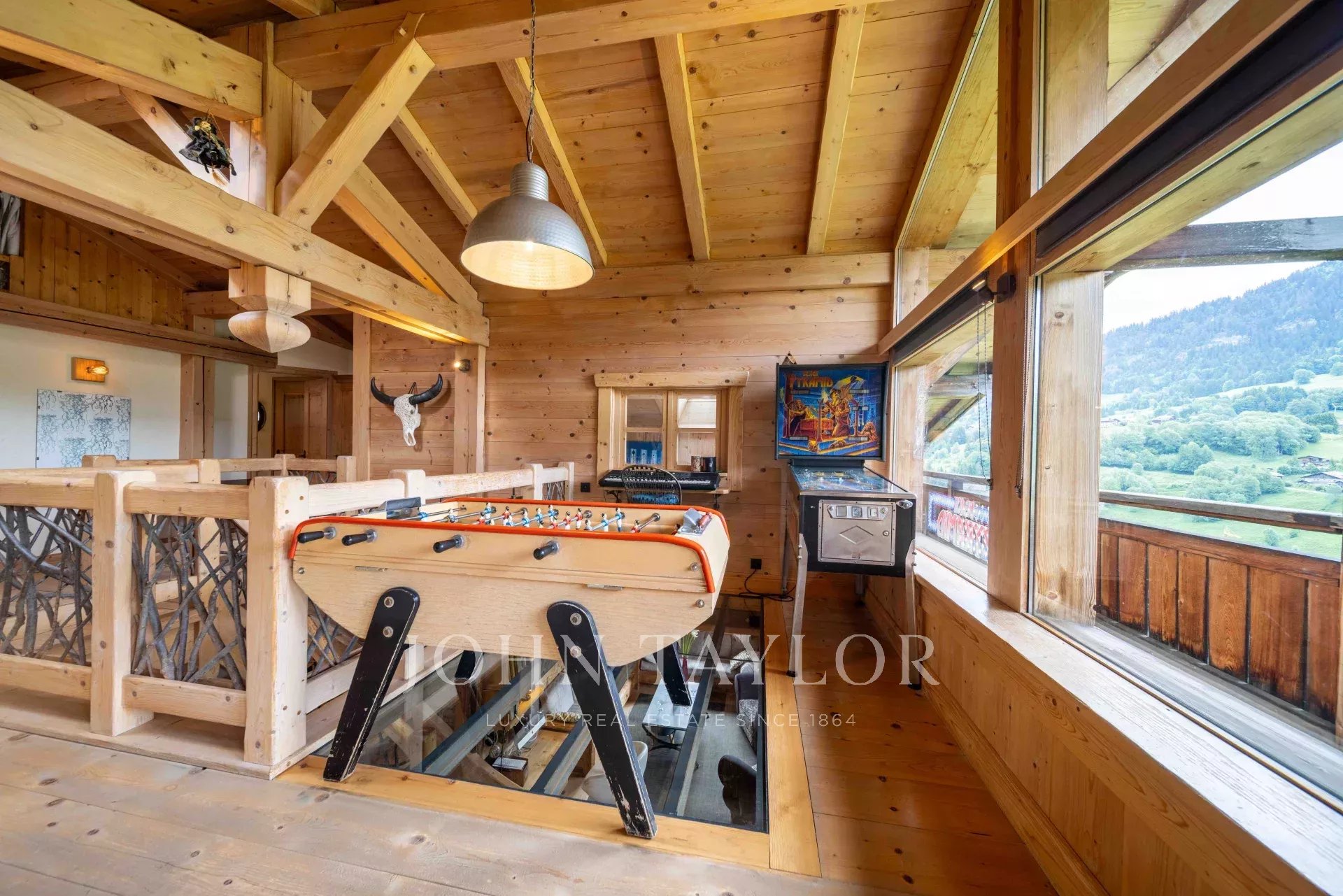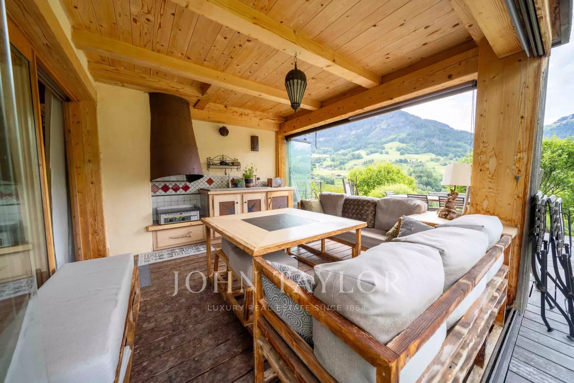 Situé à Megève, niché dans un cadre idyllique, Chalet construit en 2003 d’une surface totale de 311m2 édifié sur un terrain de 918m2 comprenant : Entrée avec rangement/vestiaire, WC invité, salon avec cheminée, cuisine aménagée & équipée avec cellier donnant sur salle à manger avec accès véranda comprenant cuisine d’été et coin repas (véranda escamotable vitré) desservant sur une grande terrasse, exposé sud avec vue panoramique sur les montagnes environnante et le Mont-Blanc. 4 chambres, 2 salle de bains, coin buanderie et une salle de jeux/TV. Grenier aménagé en coin-nuit.