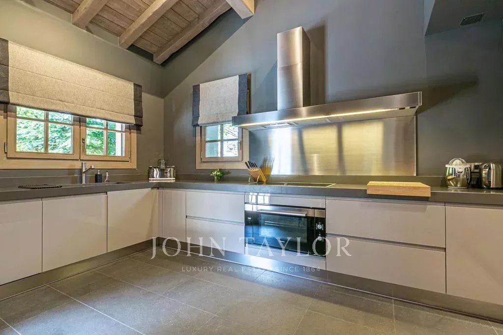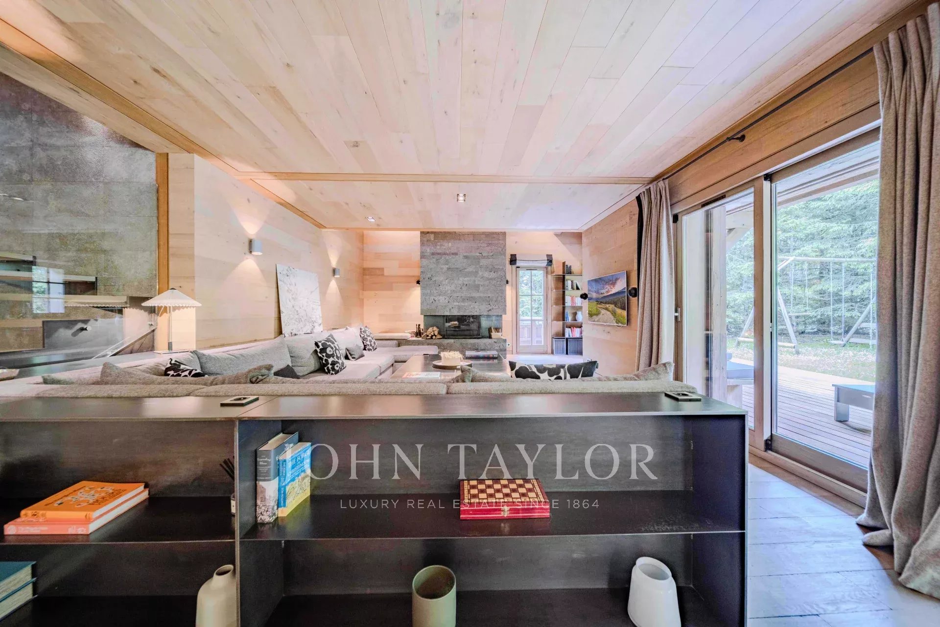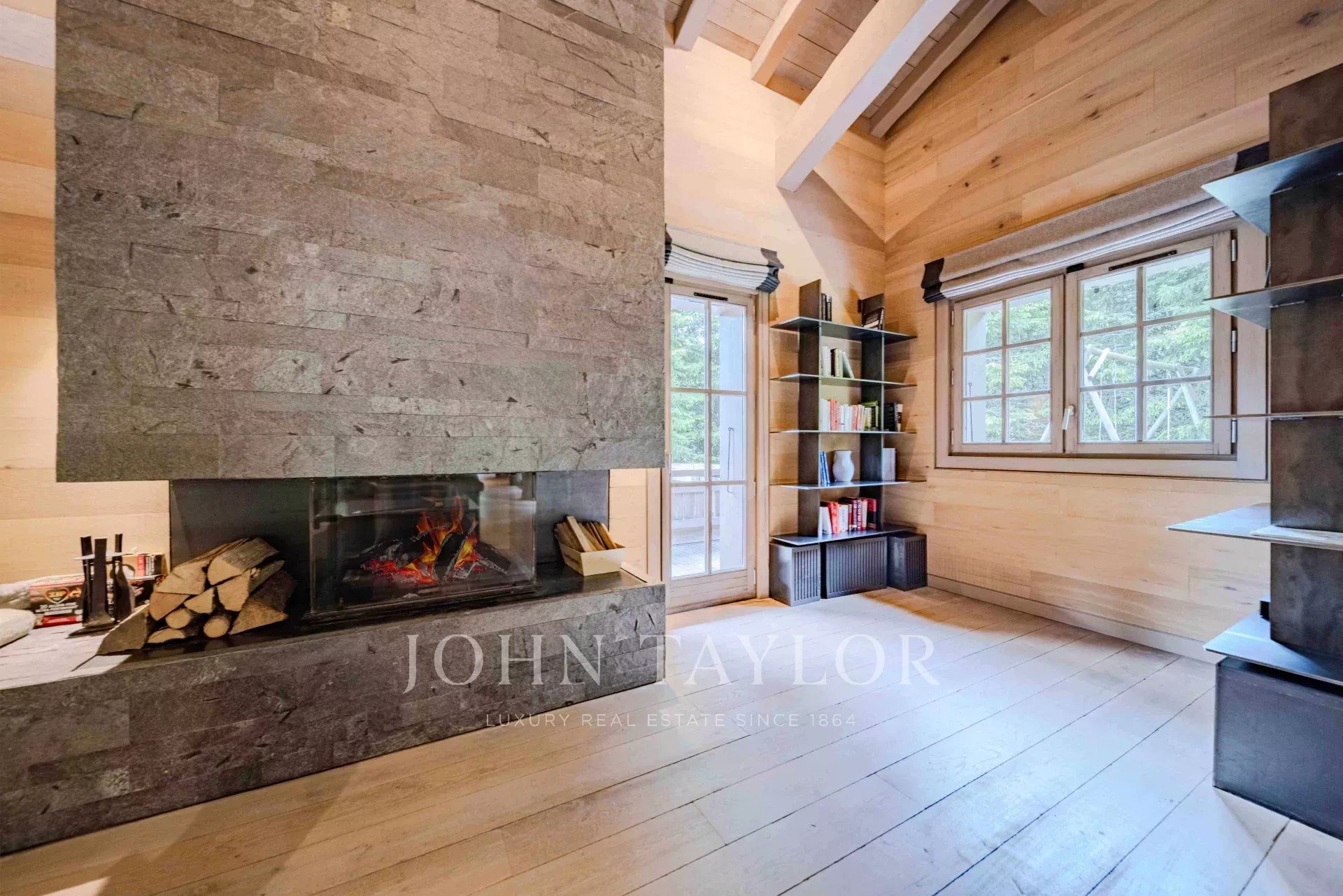 Découvrez ce splendide chalet de 350 m² situé au Mont d'Arbois, Megève. Avec ses 5 chambres spacieuses, c'est l'endroit idéal pour accueillir famille et amis. Son ambiance chaleureuse est accentuée par la magnifique cheminée dans le salon, offrant un cadre douillet pour se détendre après une journée sur les pistes.