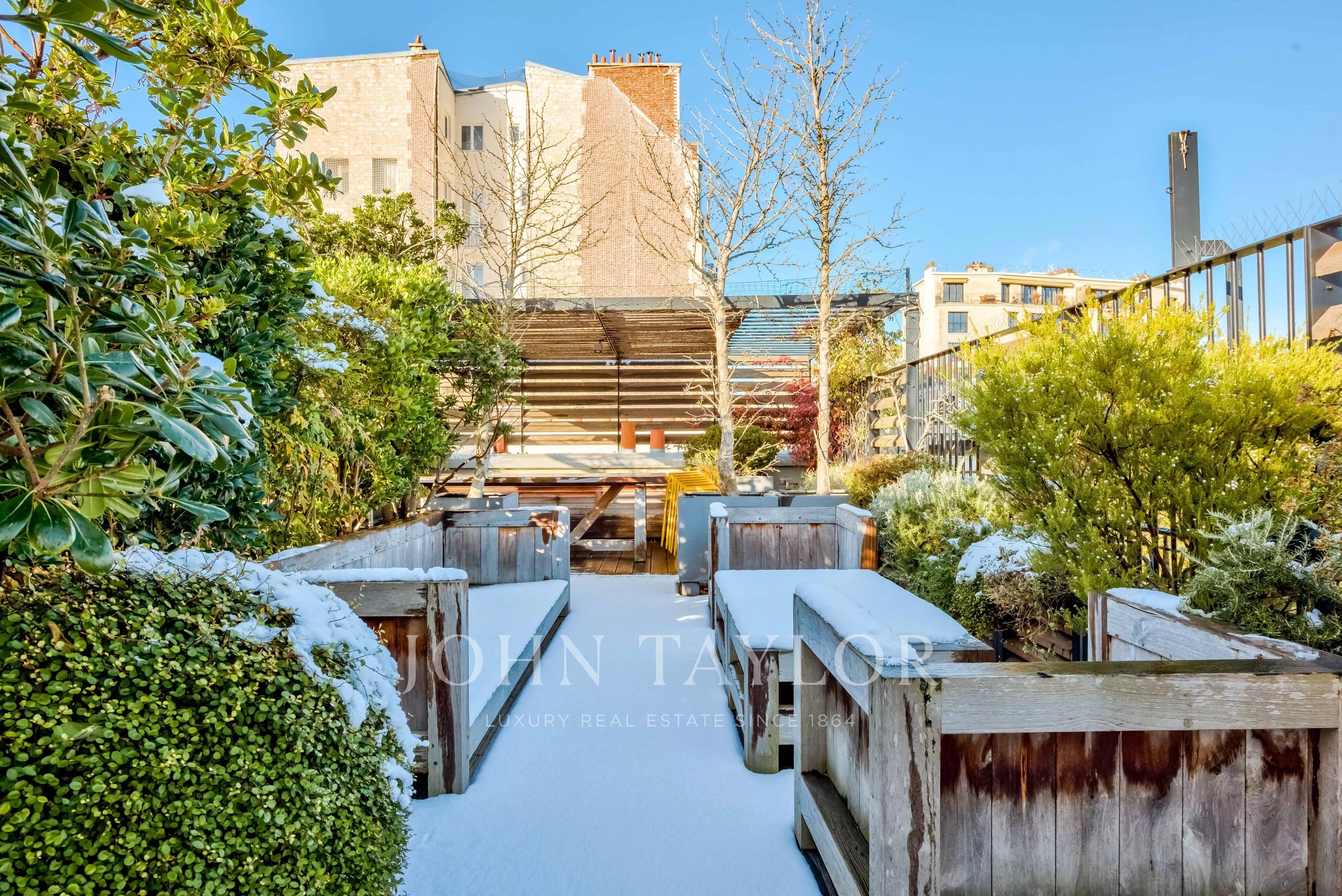 - Un rooftop paysagé, baigné de soleil et bénéficiant d'une triple exposition avec une vue sur des jardins ainsi que sur la tour Eiffel.