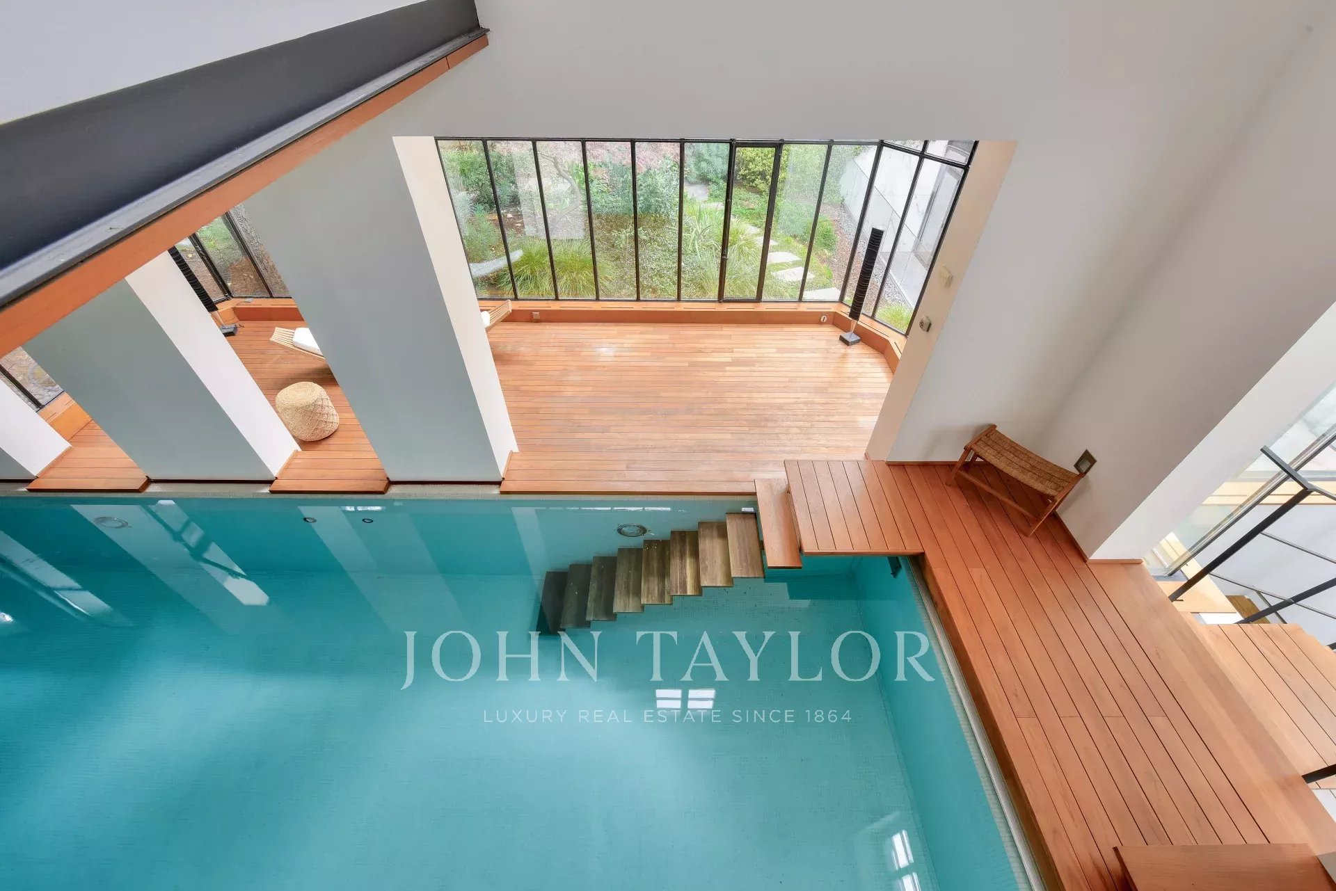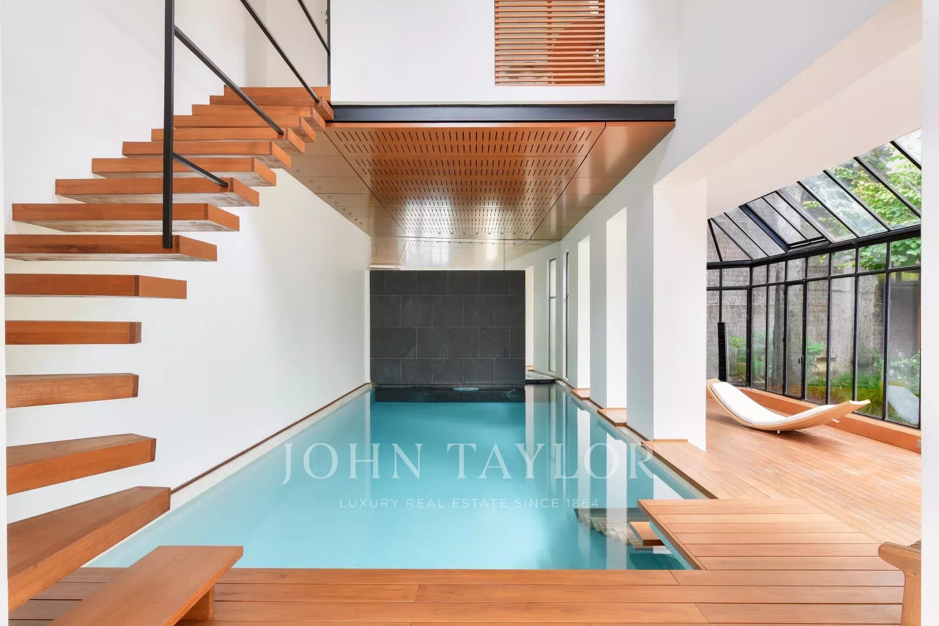 Une dépendance attenante, reliée par un escalier intérieur, accueille la piscine chauffée de 8 m x 3,5 m avec contre-courant, ouvrant sur un espace détente et une belle terrasse au sein d’un jardin d’hiver avec vue sur le jardin. Une suite indépendante avec salle de douche et toilettes complète cet espace.