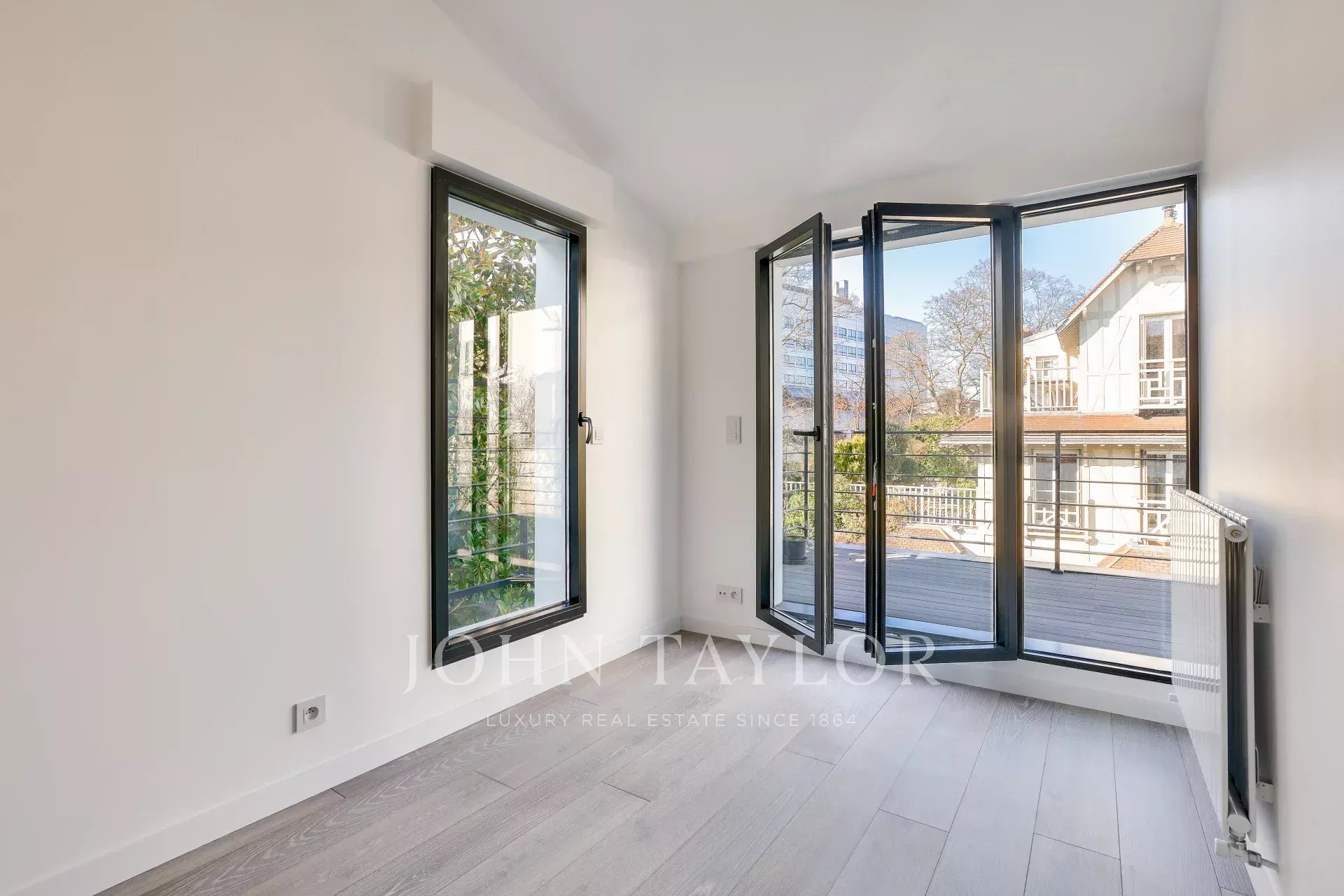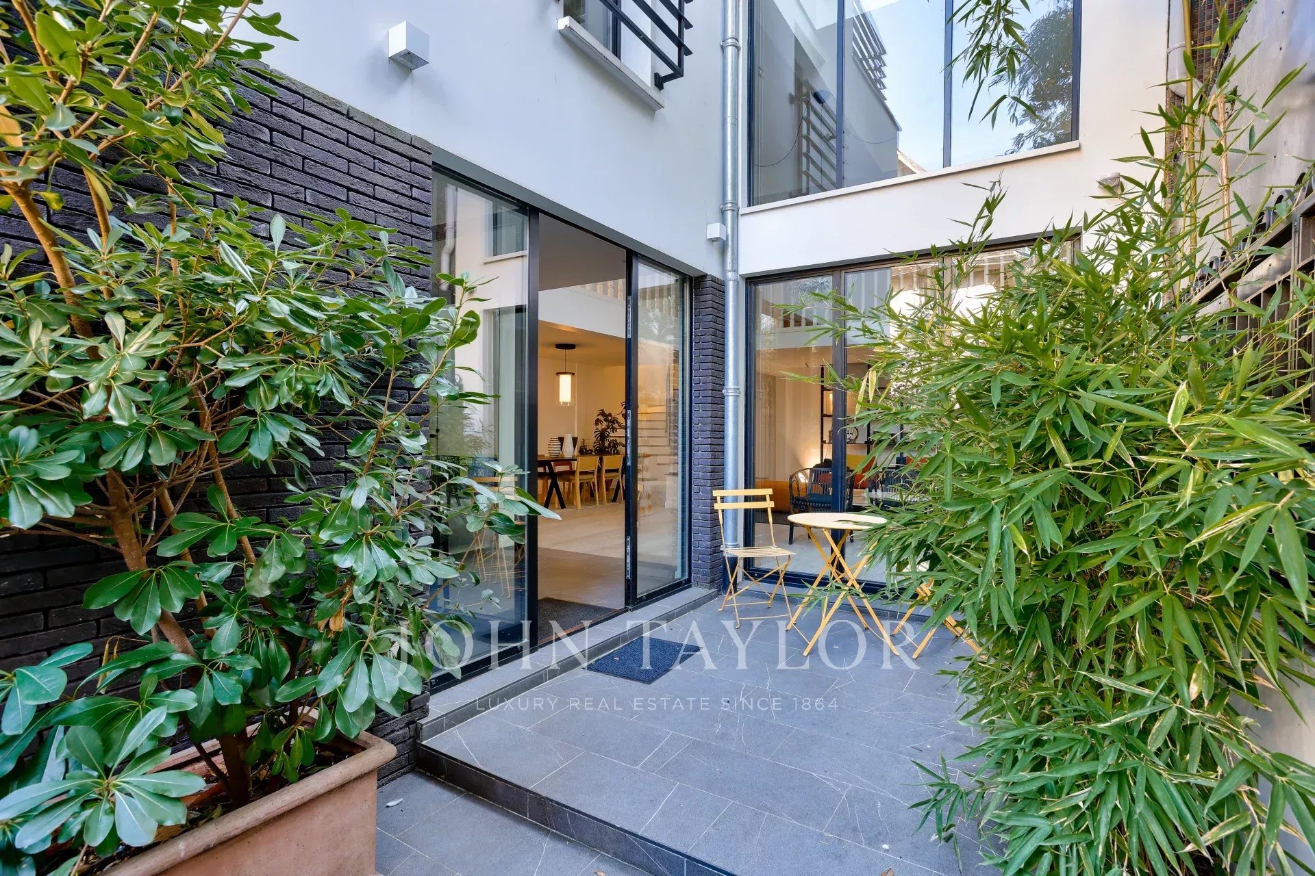 Située au bout d'une impasse privée, cette magnifique maison d'architecte de 220 m2 a été entièrement rénovée et bénéficie de prestations haut de gamme.