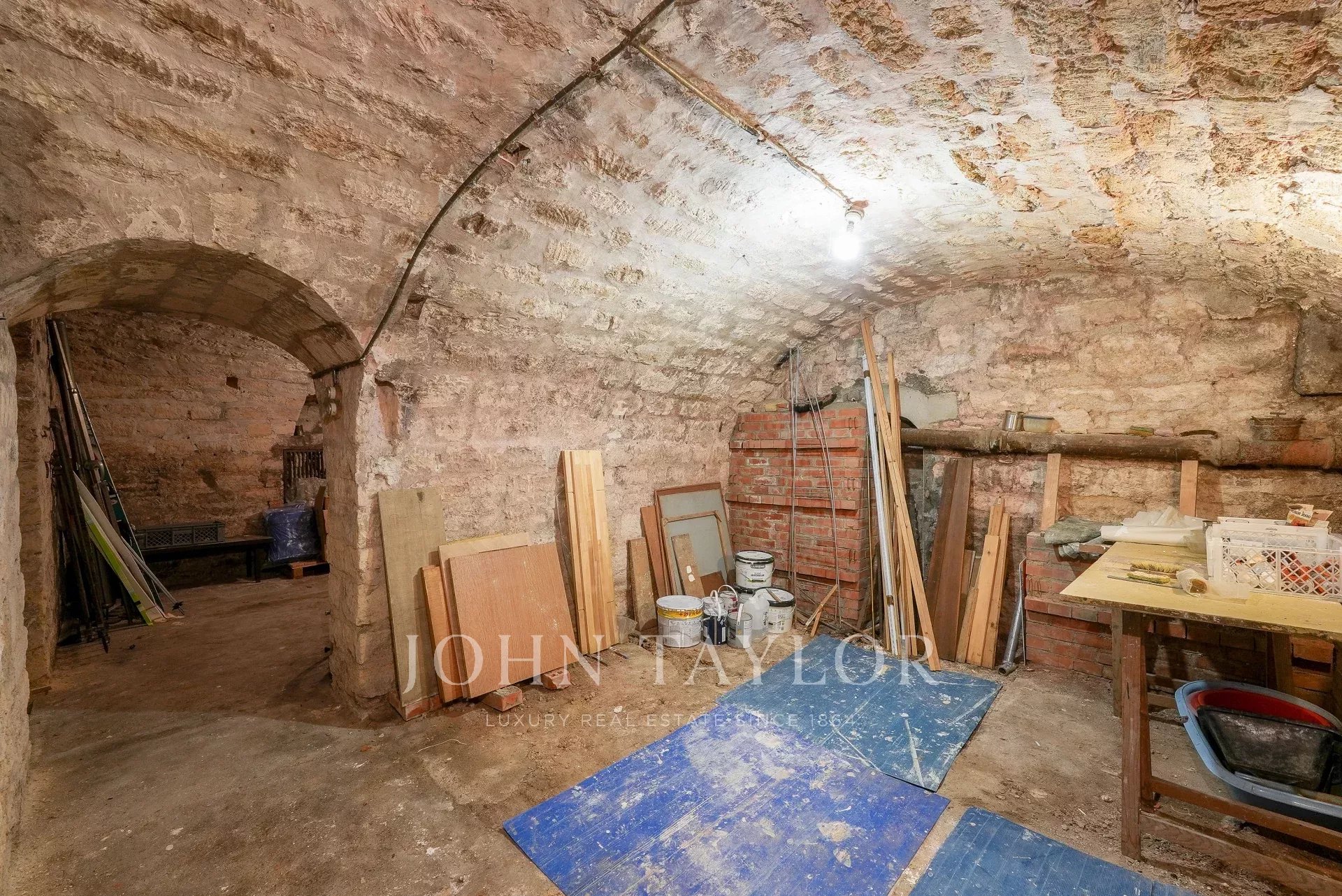 Au sous-sol : une grande cuisine, un appartement privé, une buanderie, 2 caves voutées, une chaudière et un local poubelle accessible depuis la rue.