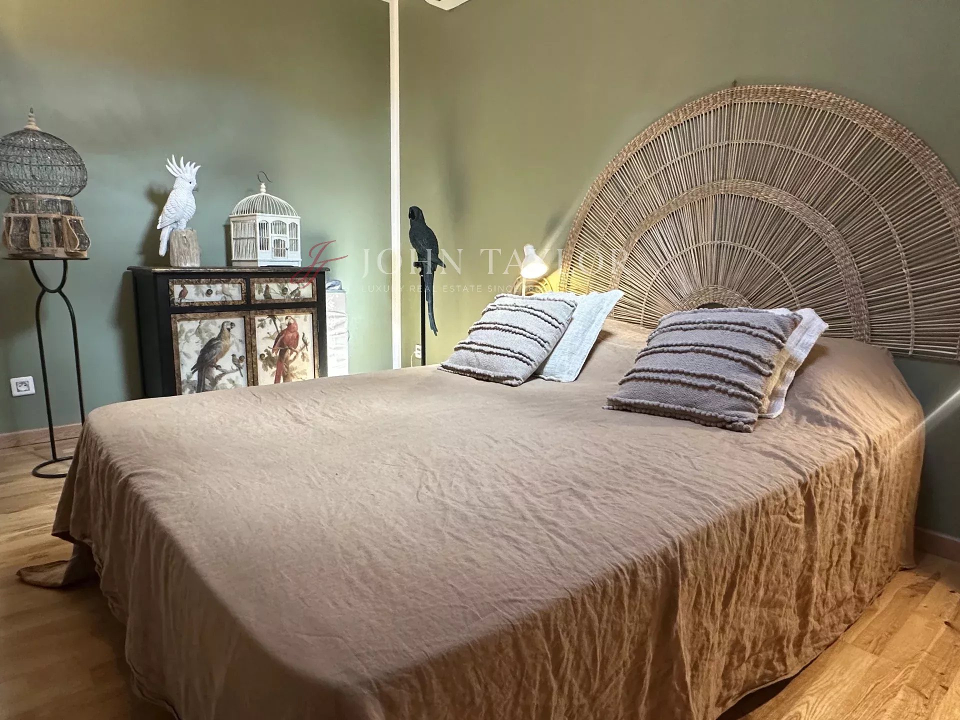 À l’étage, deux chambres aux volumes harmonieux, un dressing-bureau, ainsi qu’une salle de bain élégante composent un espace intime et apaisant.