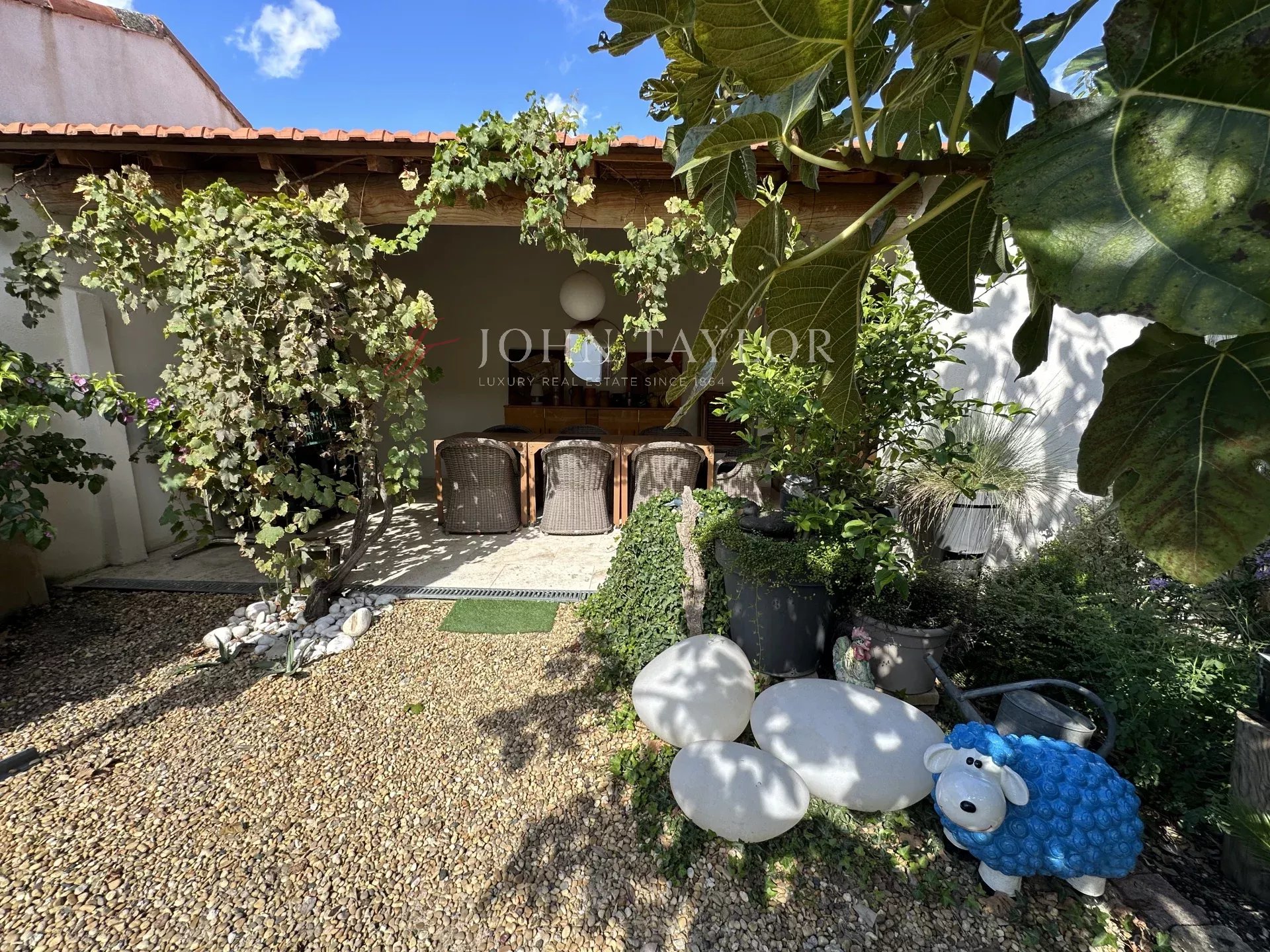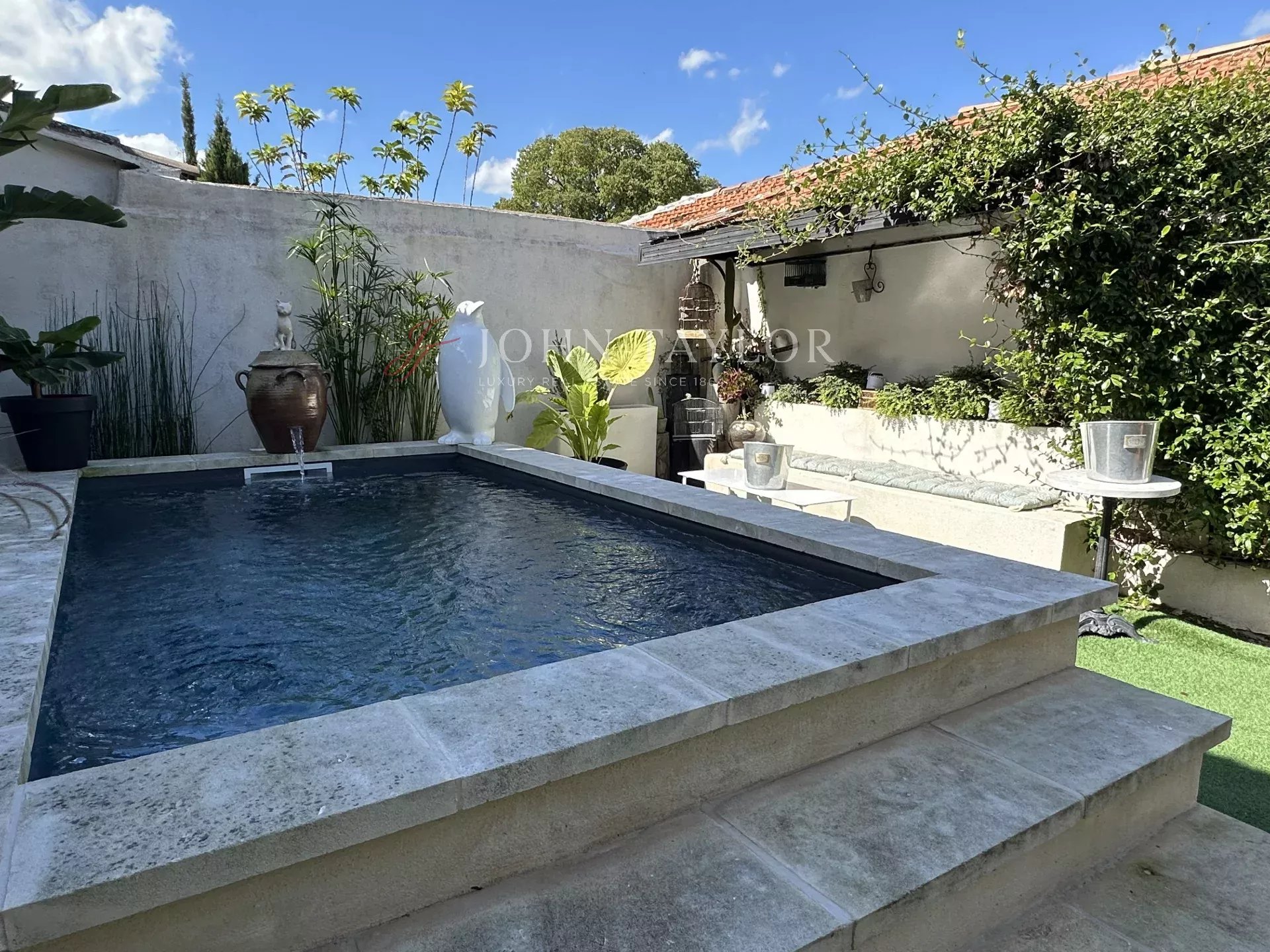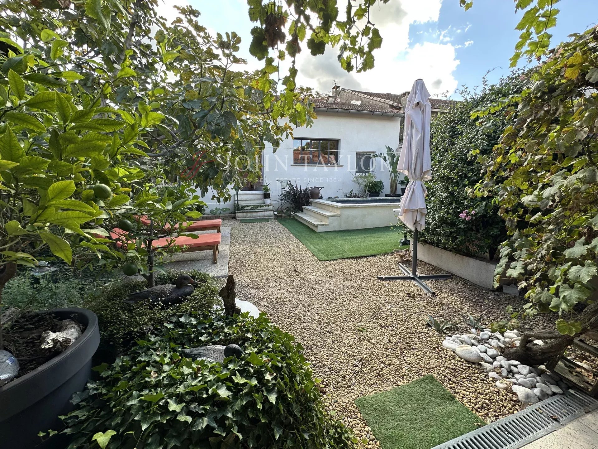 Véritable écrin de sérénité, le jardin clos accueille une piscine privée et une terrasse couverte, invitant à profiter des longues journées ensoleillées et de la douceur des soirées d’été.