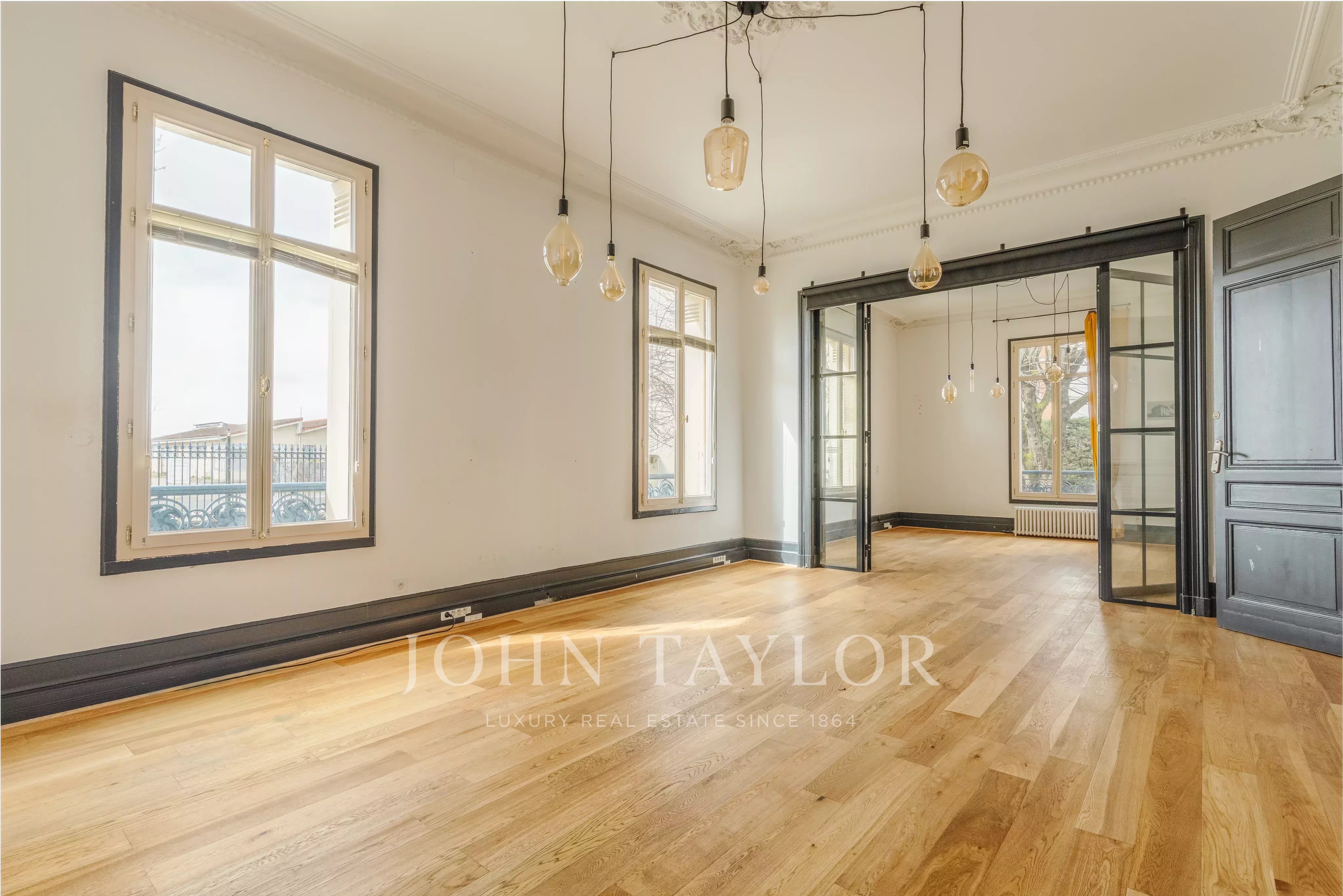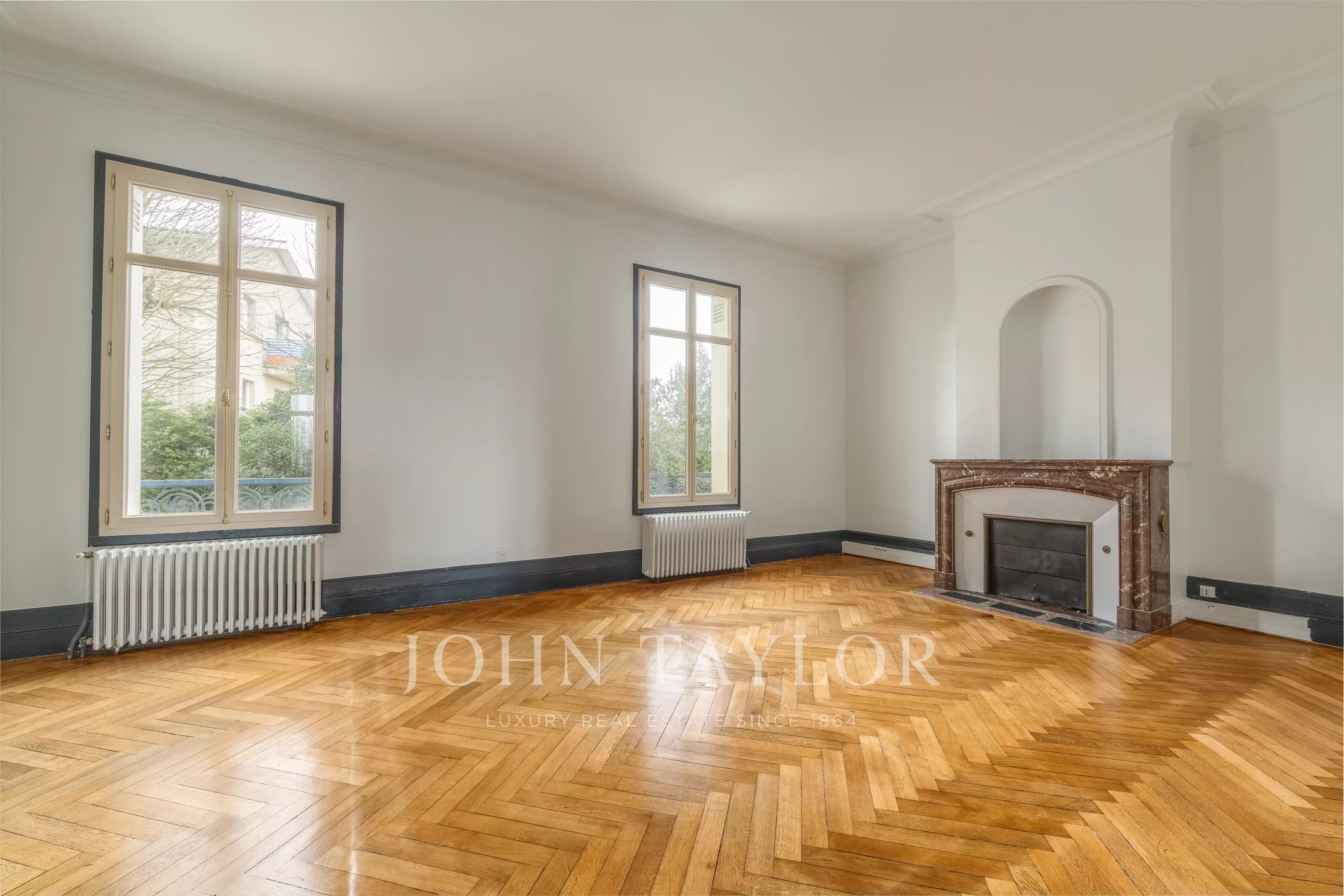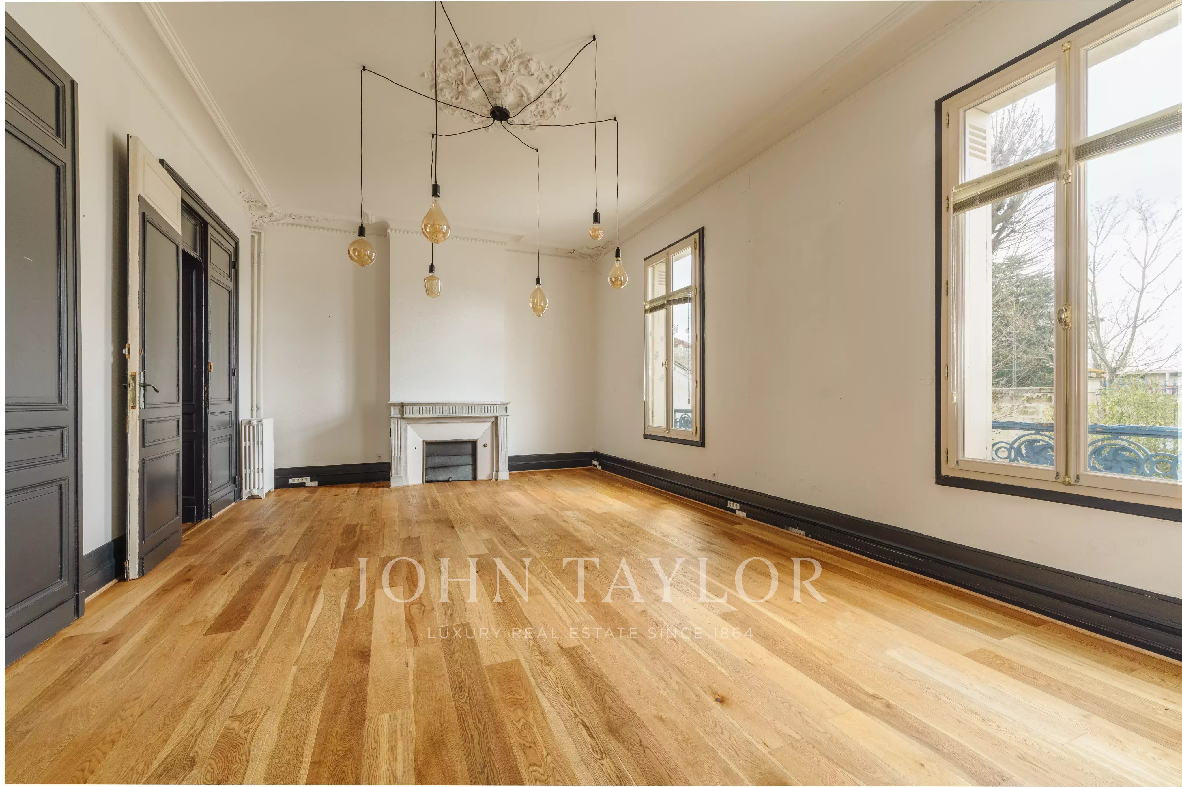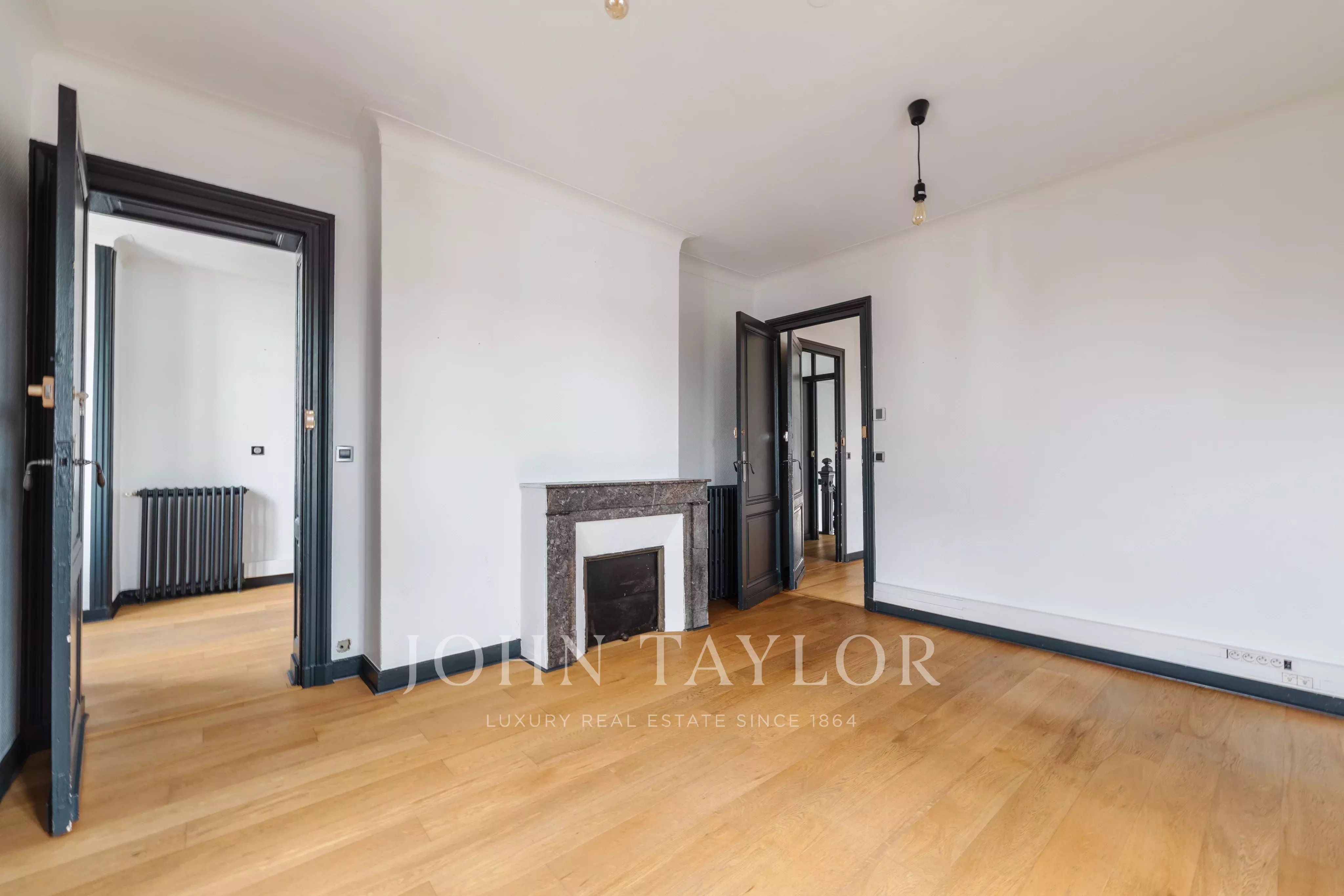 Les volumes intérieurs séduisent par leurs belles hauteurs sous plafond, leurs moulures, parquets anciens rénovés et cheminées d’époque, conférant à l’ensemble un cachet rare et une atmosphère élégante.