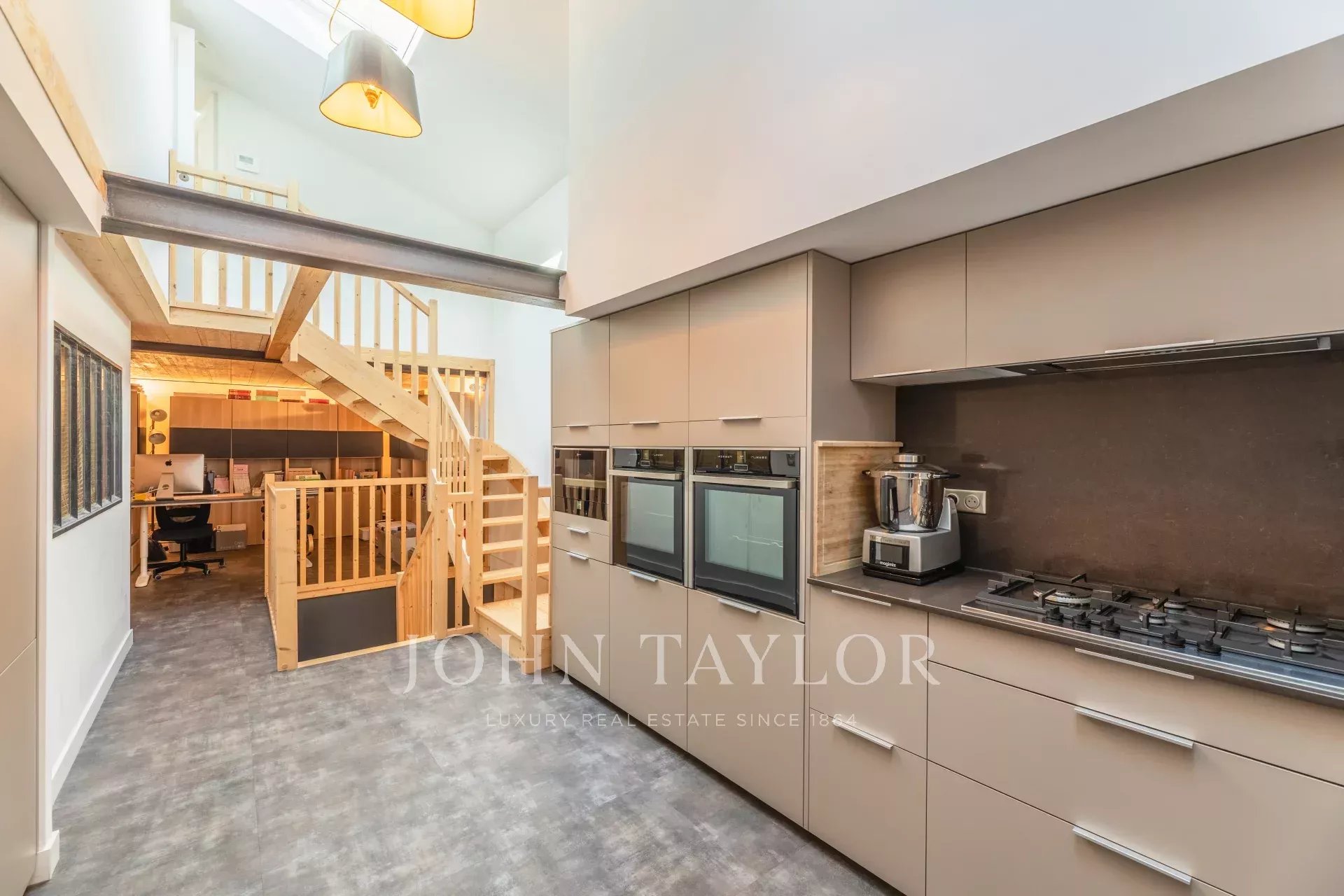 Au premier étage, un espace de vie lumineux et une cuisine entièrement équipée vous attendent. Vous y trouverez également un bureau menant à un salon TV et à une première suite. Un magnifique escalier en bois vous conduira à l'étage consacré à la suite parentale, tandis qu'un autre espace nuit propose deux chambres, chacune avec sa propre salle d'eau. De plus, un grand garage peut accueillir jusqu'à deux véhicules.