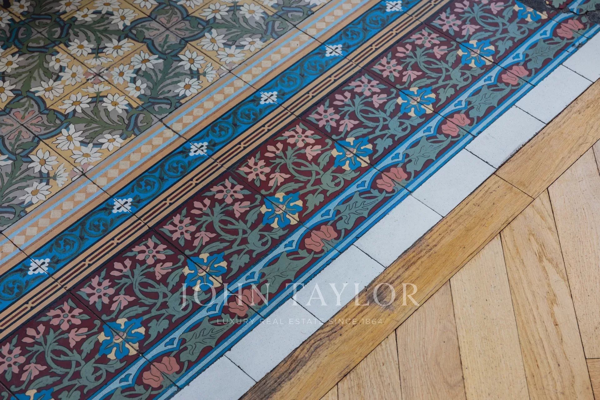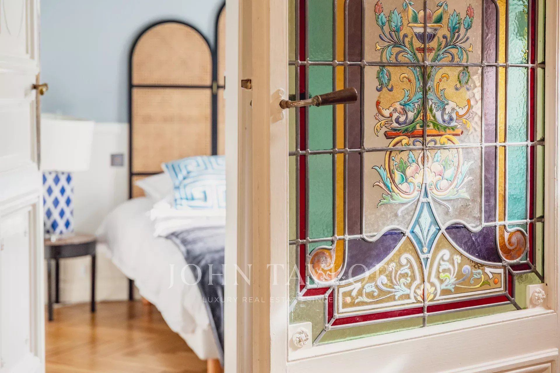 Les finitions haut de gamme incluent des parquets authentiques, des moulures fines, de grandes hauteurs sous plafond, des vitraux artistiques et un système audio intégré. Un garage spacieux complète ce bien.