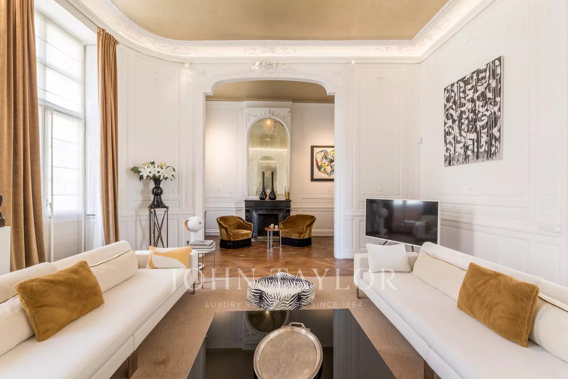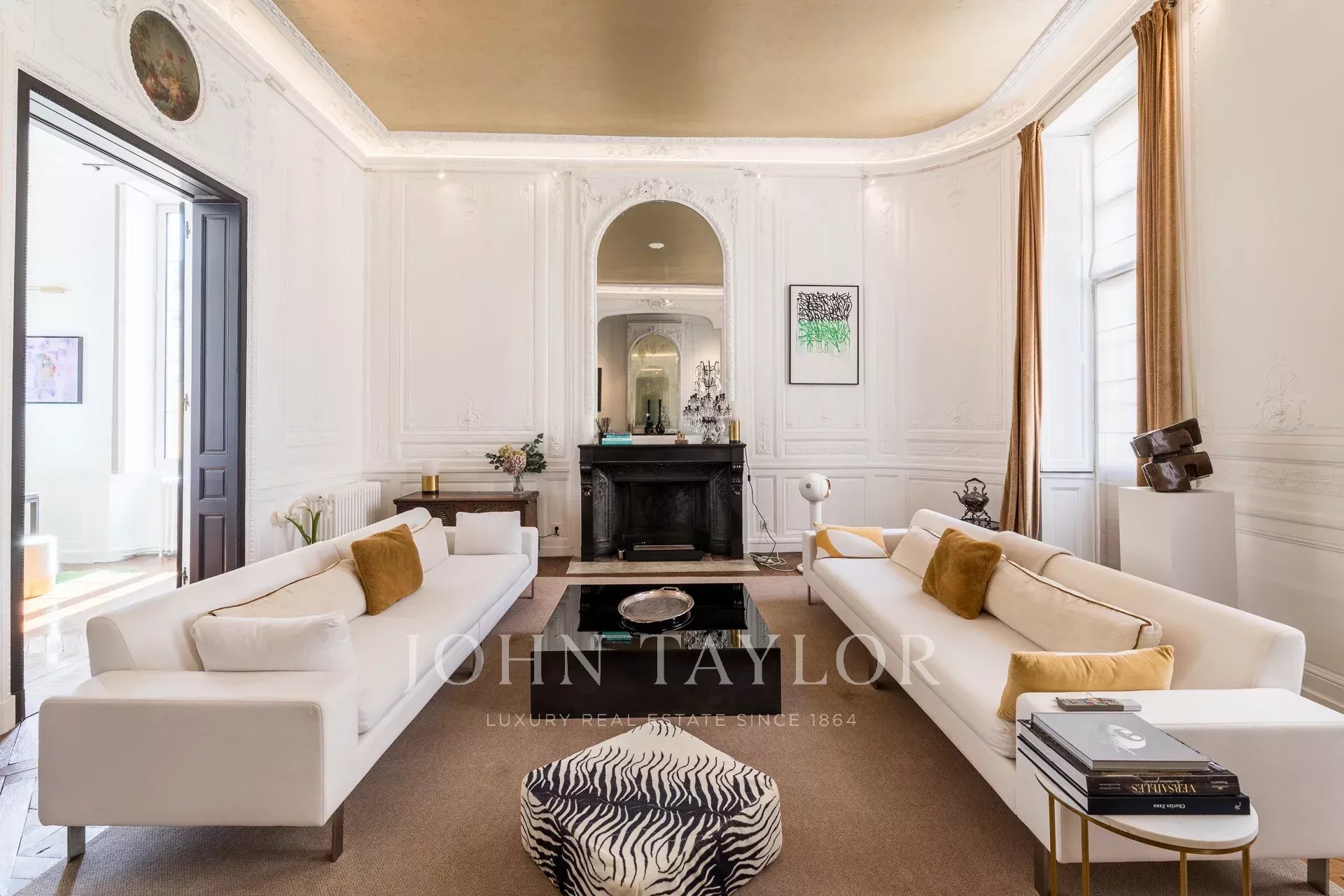 L’étage noble déploie de sublimes pièces de réception, mises en valeur par des boiseries raffinées, des parquets d’époque et une hauteur sous plafond remarquable. Un vestibule élégant dessert un double salon, une salle à manger ouvrant sur une terrasse baignée de soleil, et une cuisine séparée.