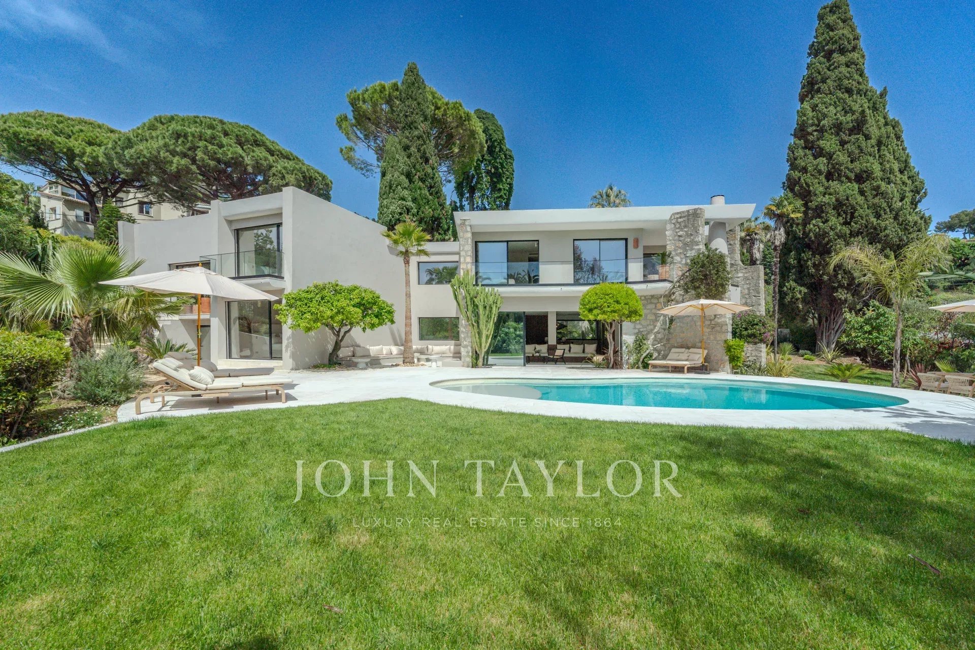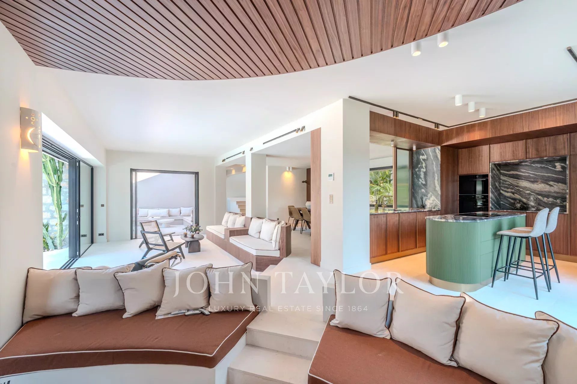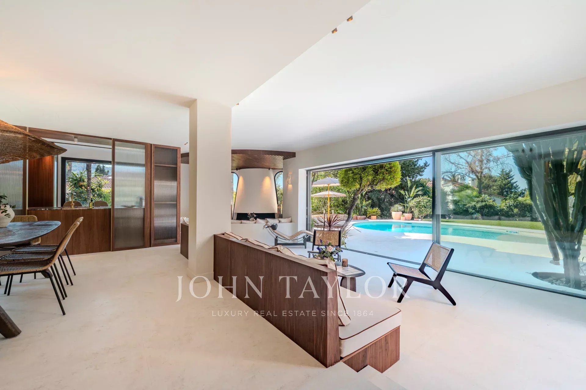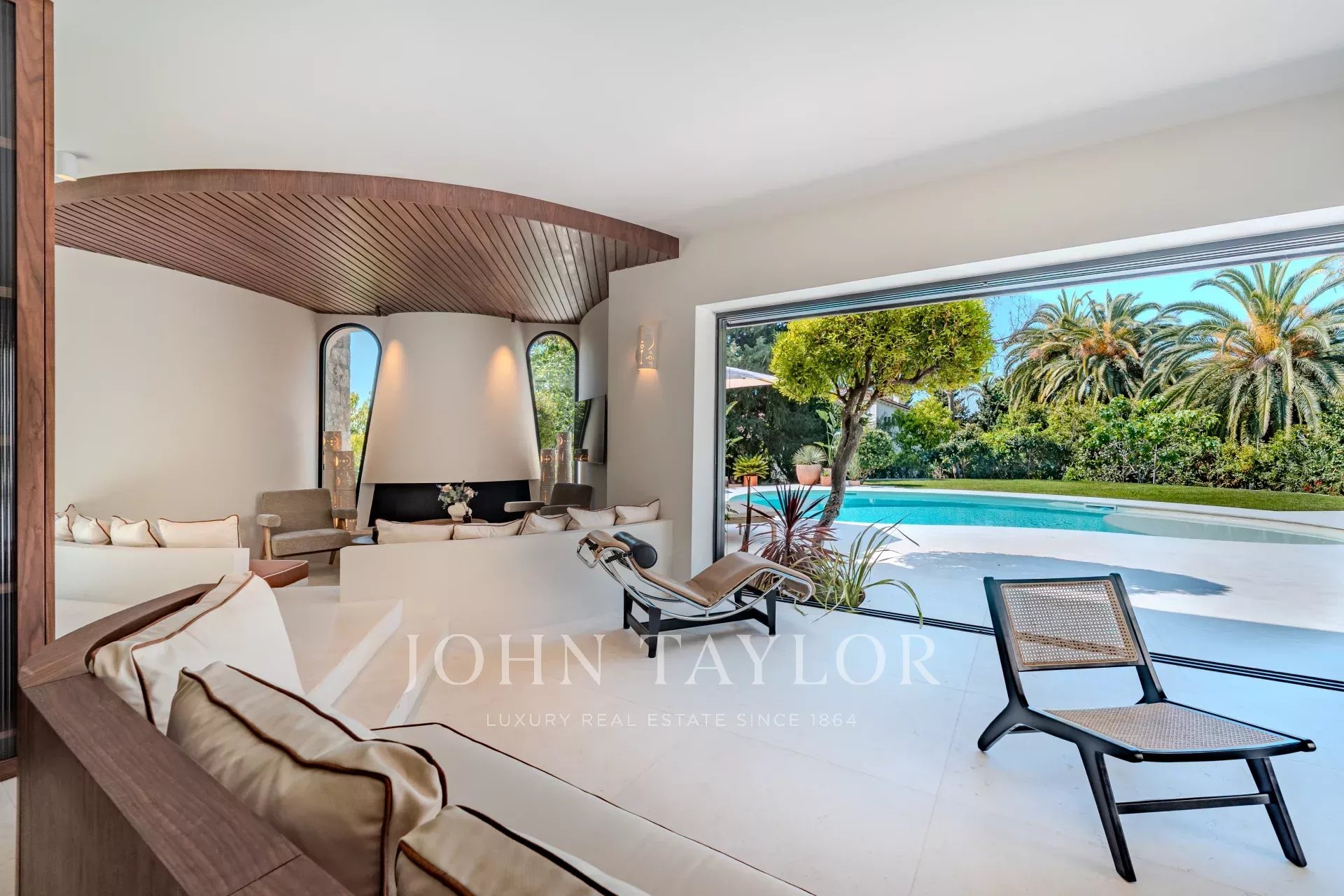 À seulement quelques minutes de la Croisette, dans un environnement privilégié au sein d'un prestigieux domaine fermé, découvrez cette somptueuse villa californienne entièrement rénovée.