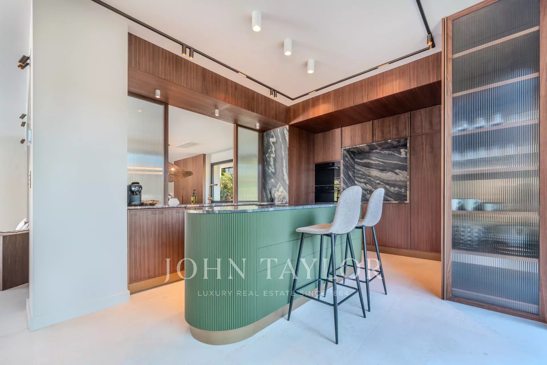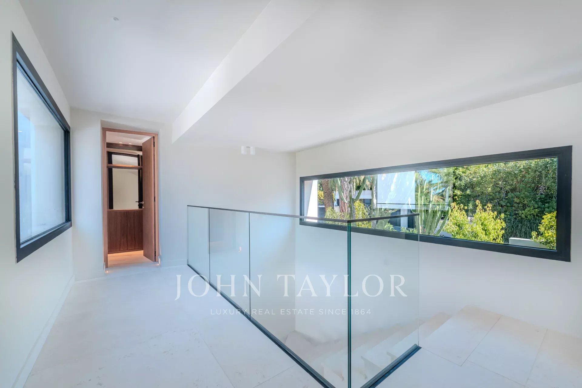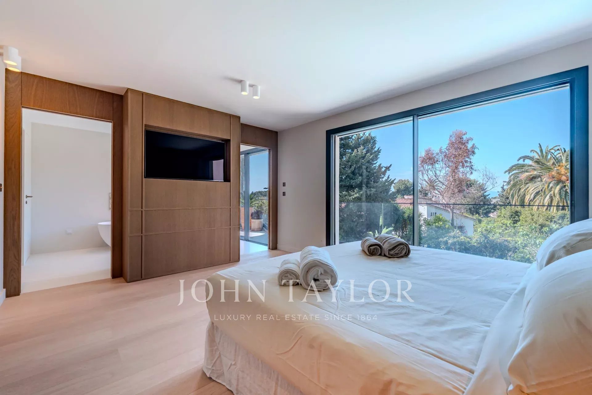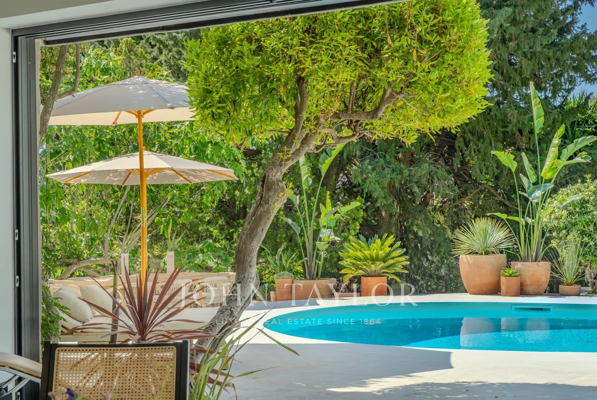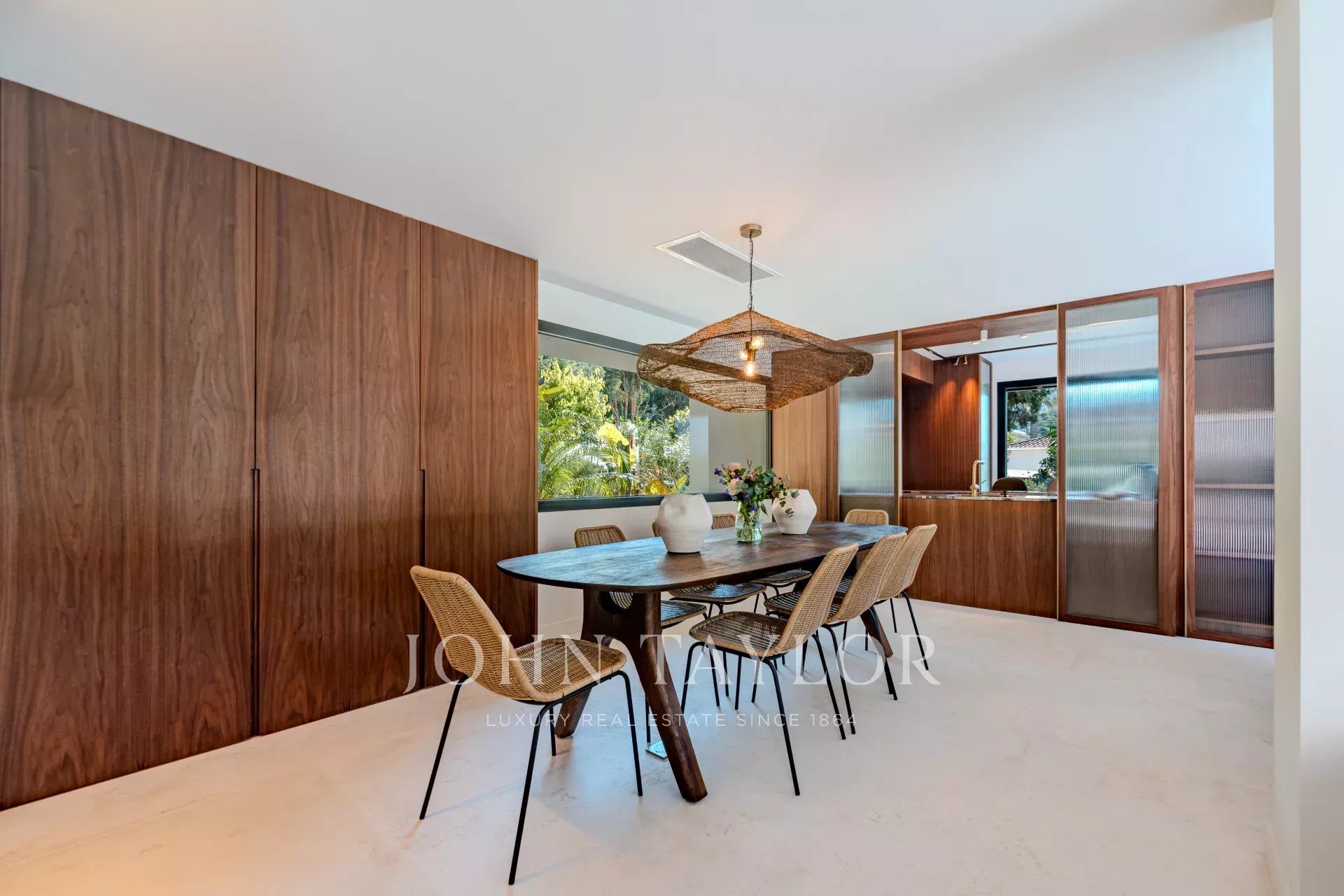À seulement quelques minutes de la Croisette, dans un environnement privilégié au sein d'un prestigieux domaine fermé, découvrez cette somptueuse villa californienne entièrement rénovée.