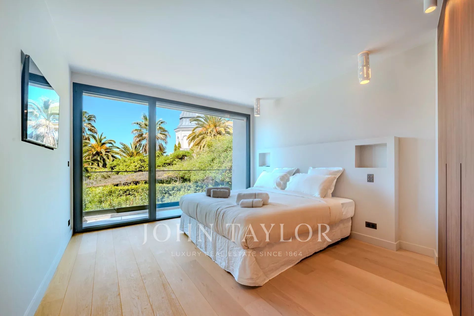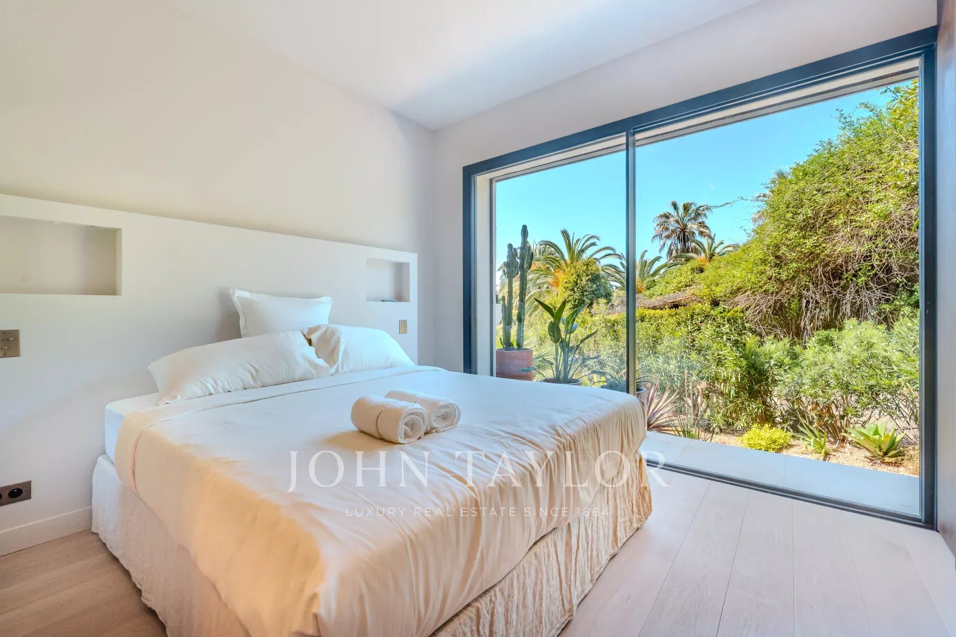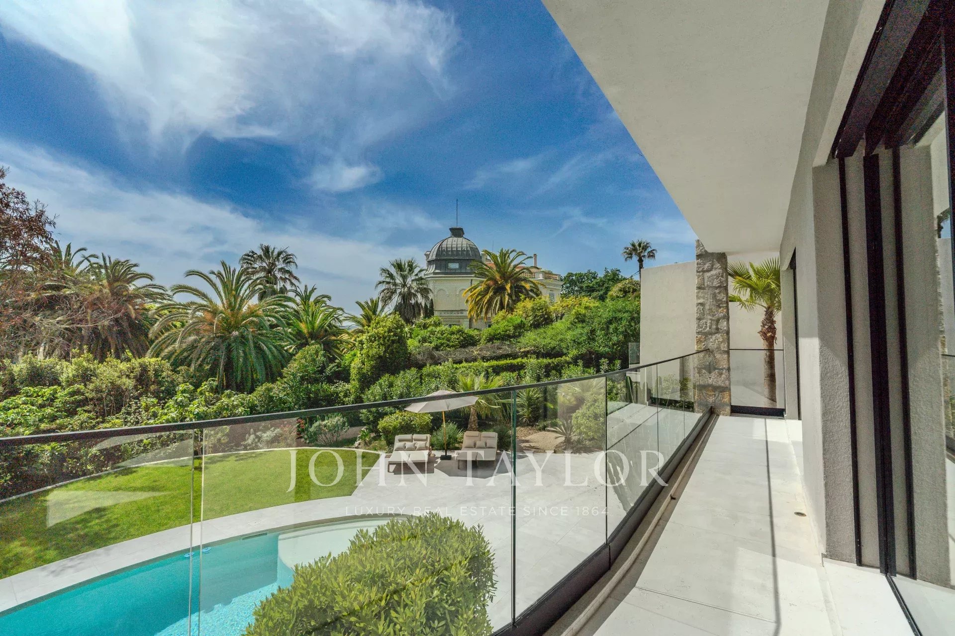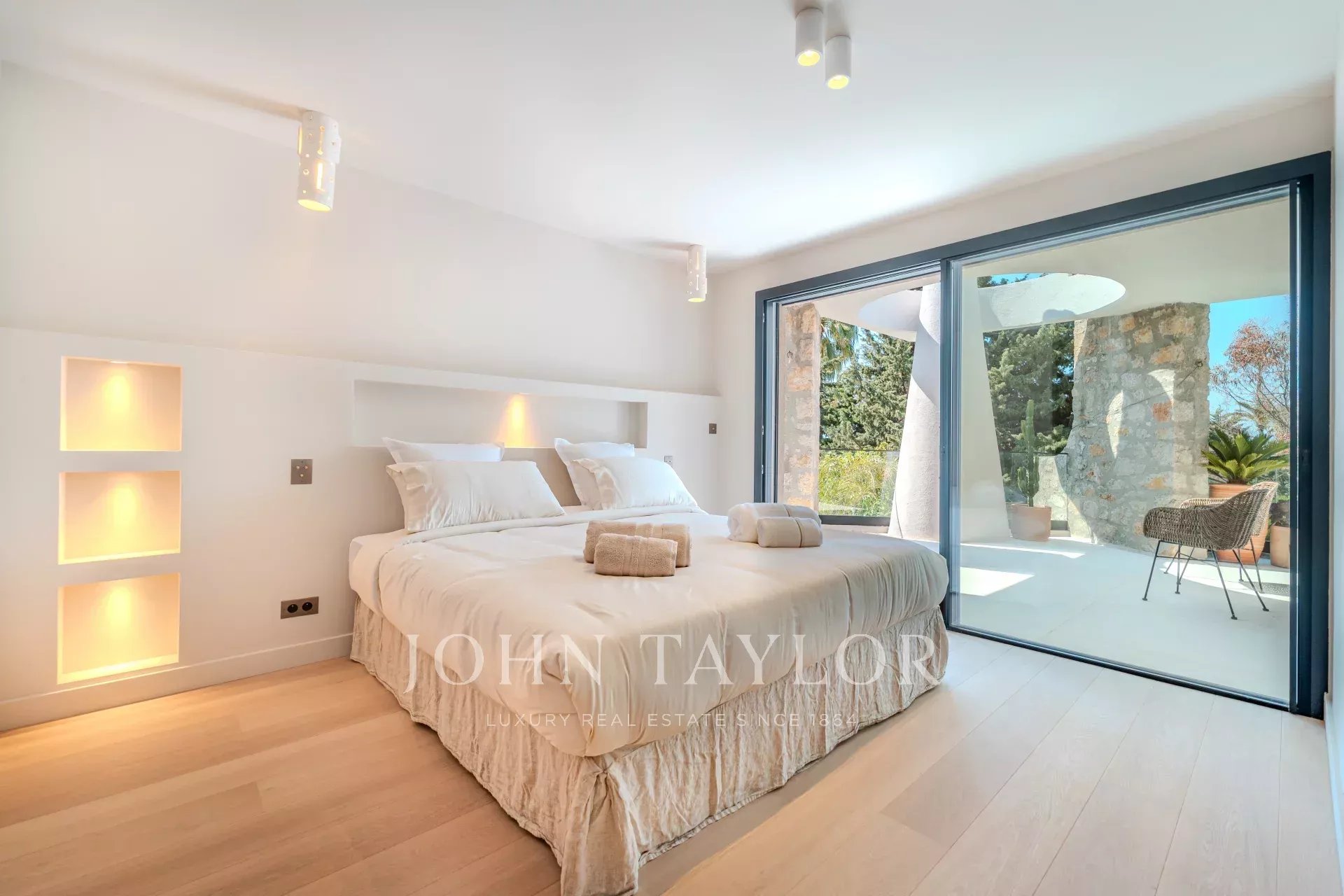 À seulement quelques minutes de la Croisette, dans un environnement privilégié au sein d'un prestigieux domaine fermé, découvrez cette somptueuse villa californienne entièrement rénovée.