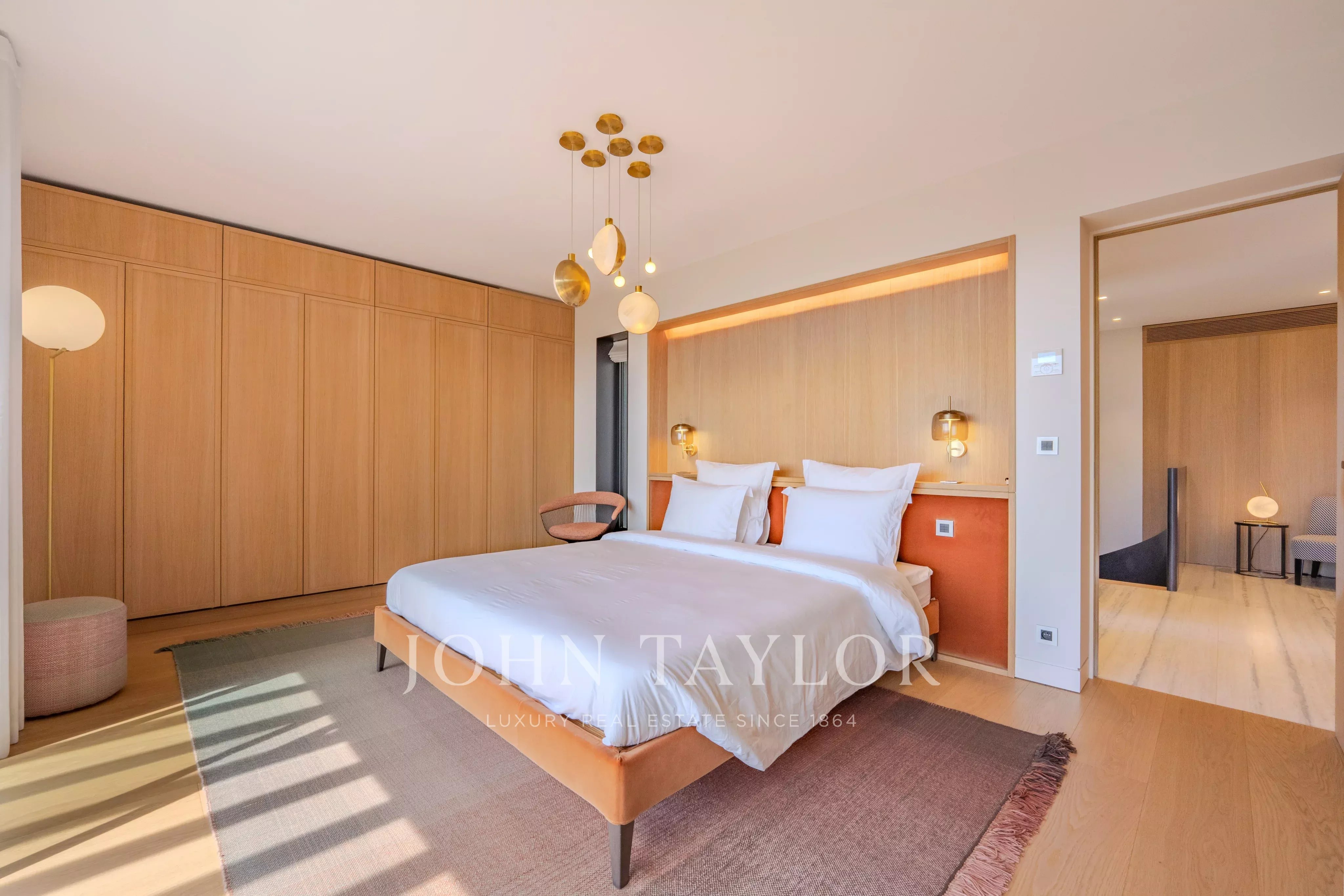 Bénéficiant d'une vue panoramique sur la Baie de Cannes, cette superbe réalisation contemporaine offre des prestations extrêmement raffinées.