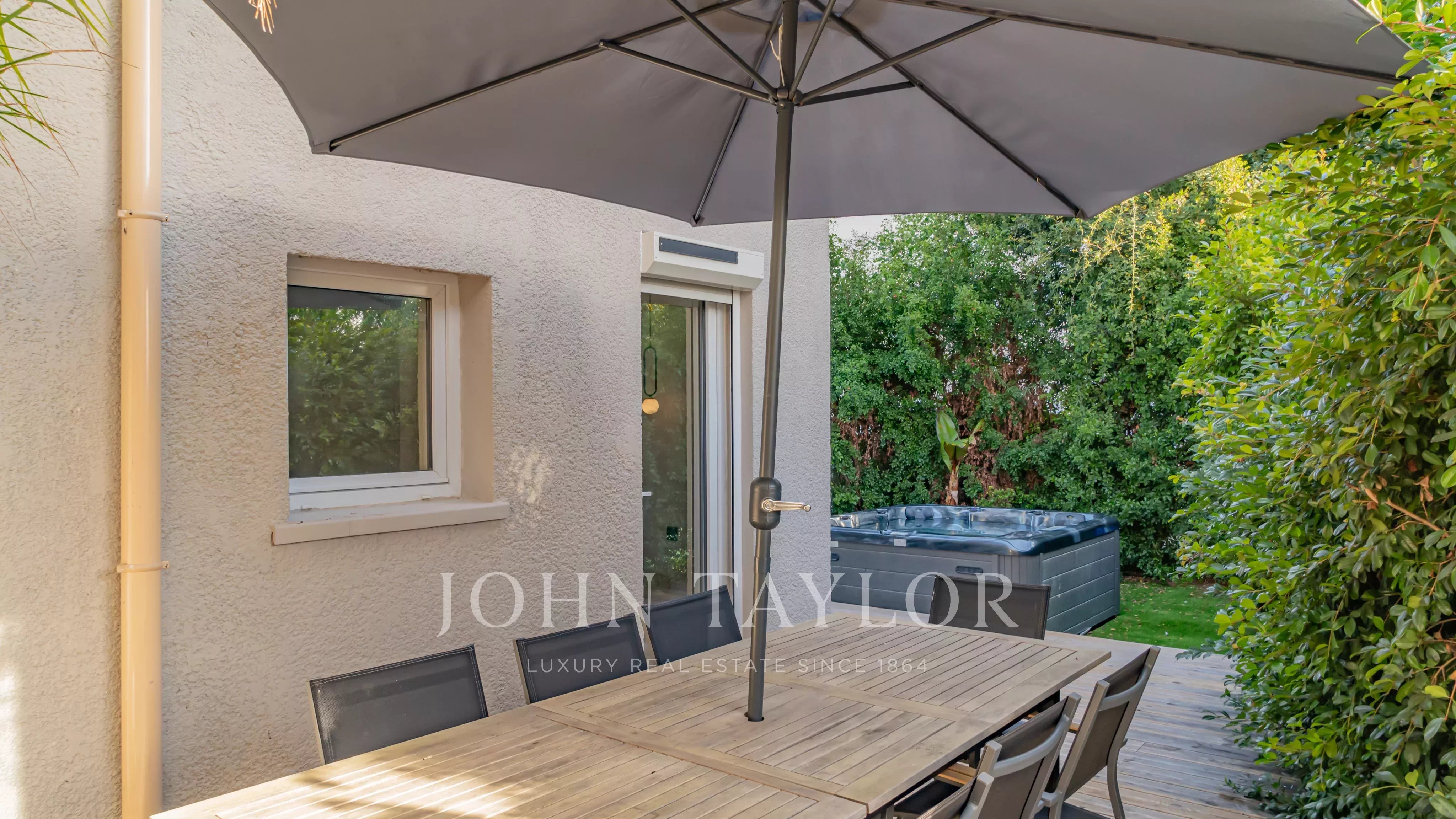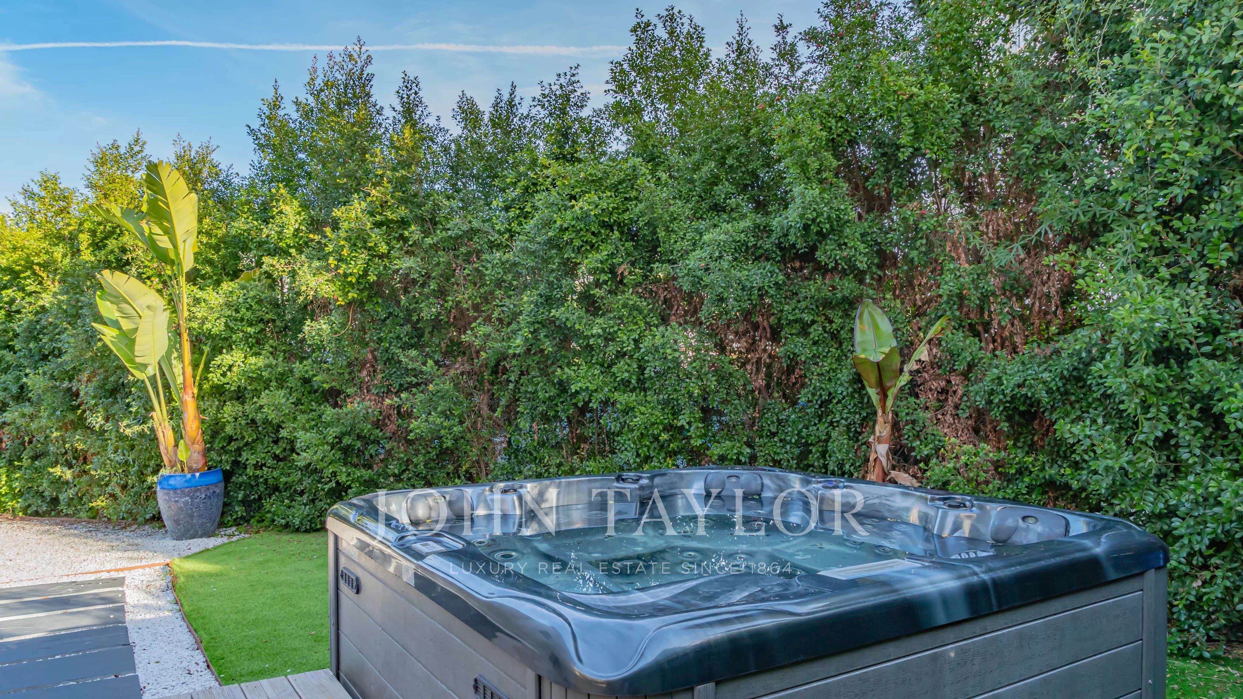 La villa est entourée d’un jardin paysager d’environ 205 m², comprenant un jacuzzi, un boulodrome ainsi que des emplacements de stationnement.
