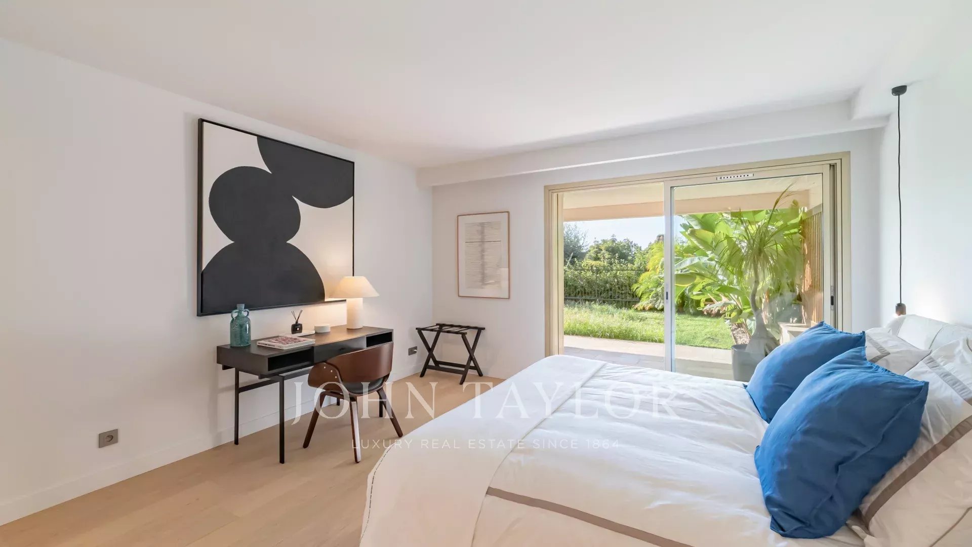 Elle profite d’intérieurs généreux qui se prolongent sur l’extérieur par de grandes et larges terrasses sur chaque niveau, comprend 4 chambres en suite et dispose d’un jardin privé surplombant la mer, les îles de Lérins et le Palm Beach.