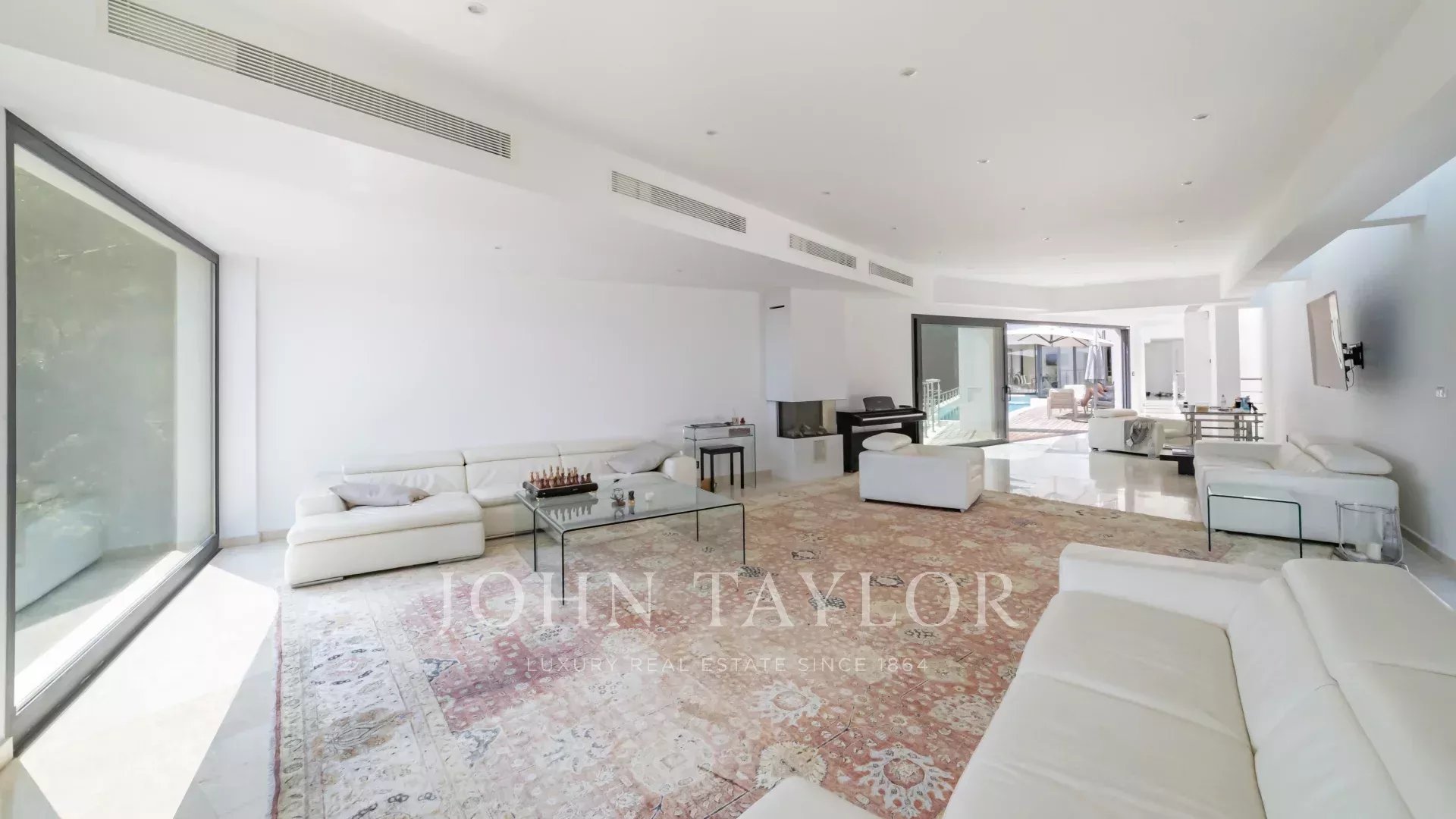 D'une superficie d'environ 509 m², la villa comprend au rez-de-chaussée une entrée, un séjour, un salon, une salle à manger, une cuisine, une cave à vin.