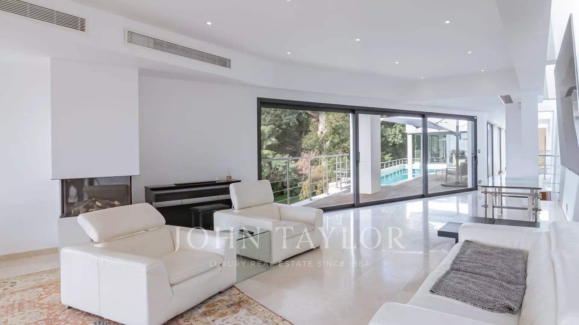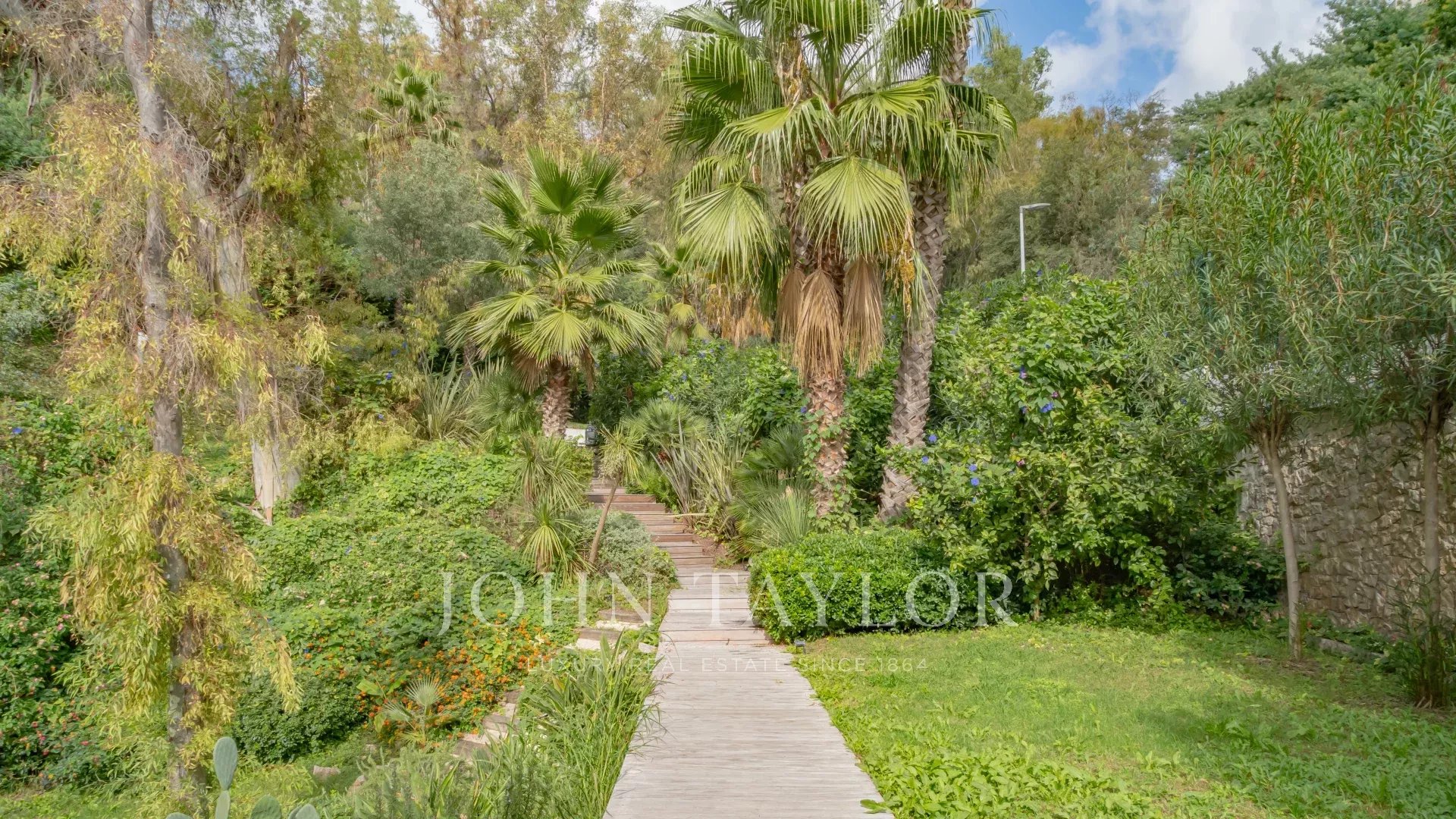 La villa dispose également d'un jardin méditerranéen sur un terrain de 6100 m², agrémenté d'une piscine chauffée à débordement et offrant une vue mer, le tout dans un cadre de vie luxueux.