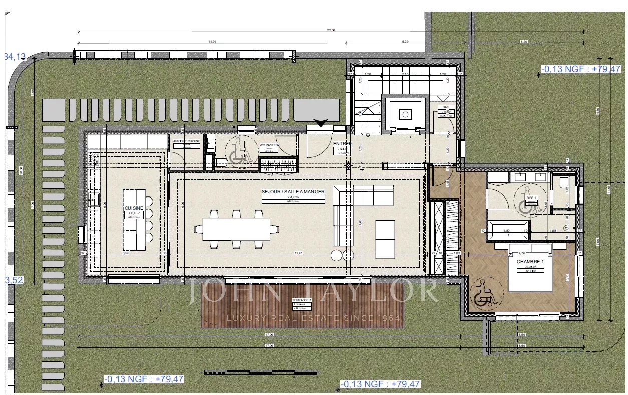 D'une surface habitable d'environ 390m2 et à construire sur un terrain de près de 7 000m2, elle se compose comme suit: