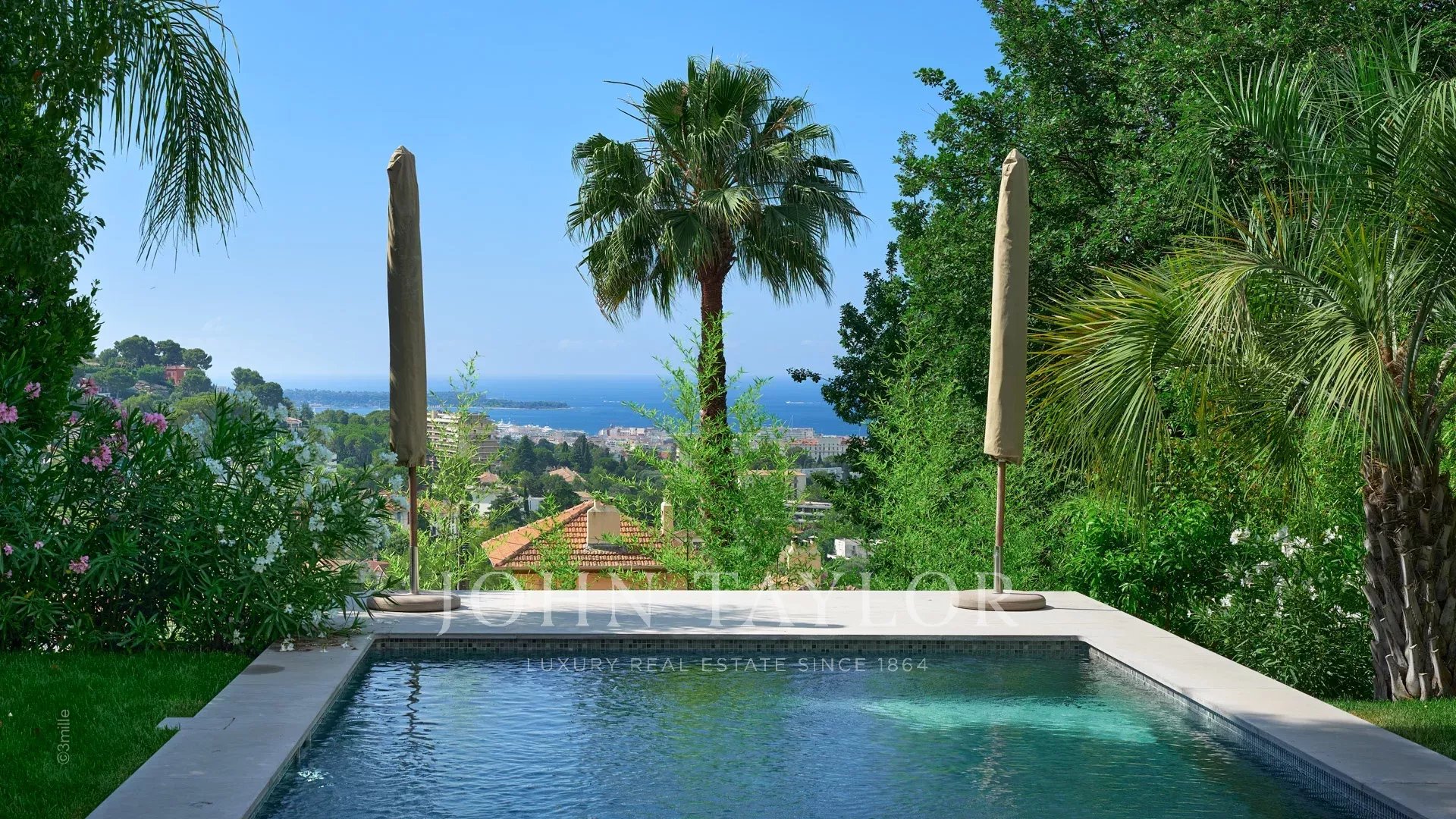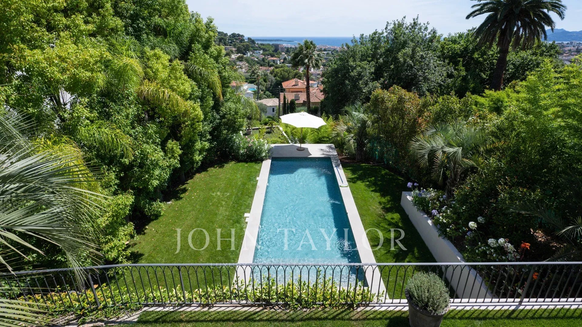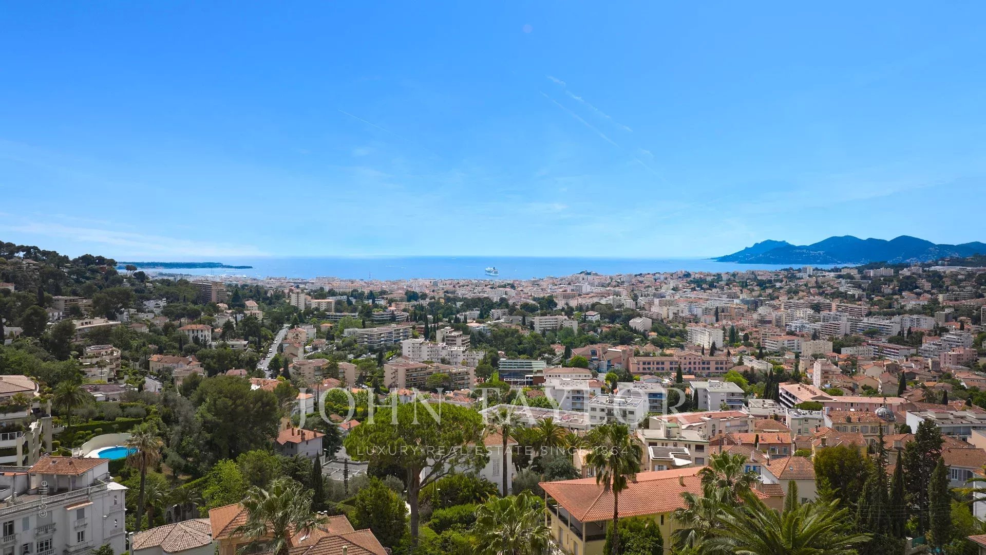 Exposée plein sud et dominant la baie de Cannes, elle jouit d’une vue mer allant des îles de Lérins jusqu’au massif de l’Estérel.