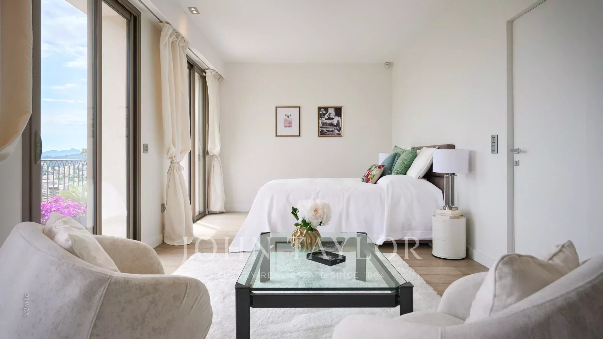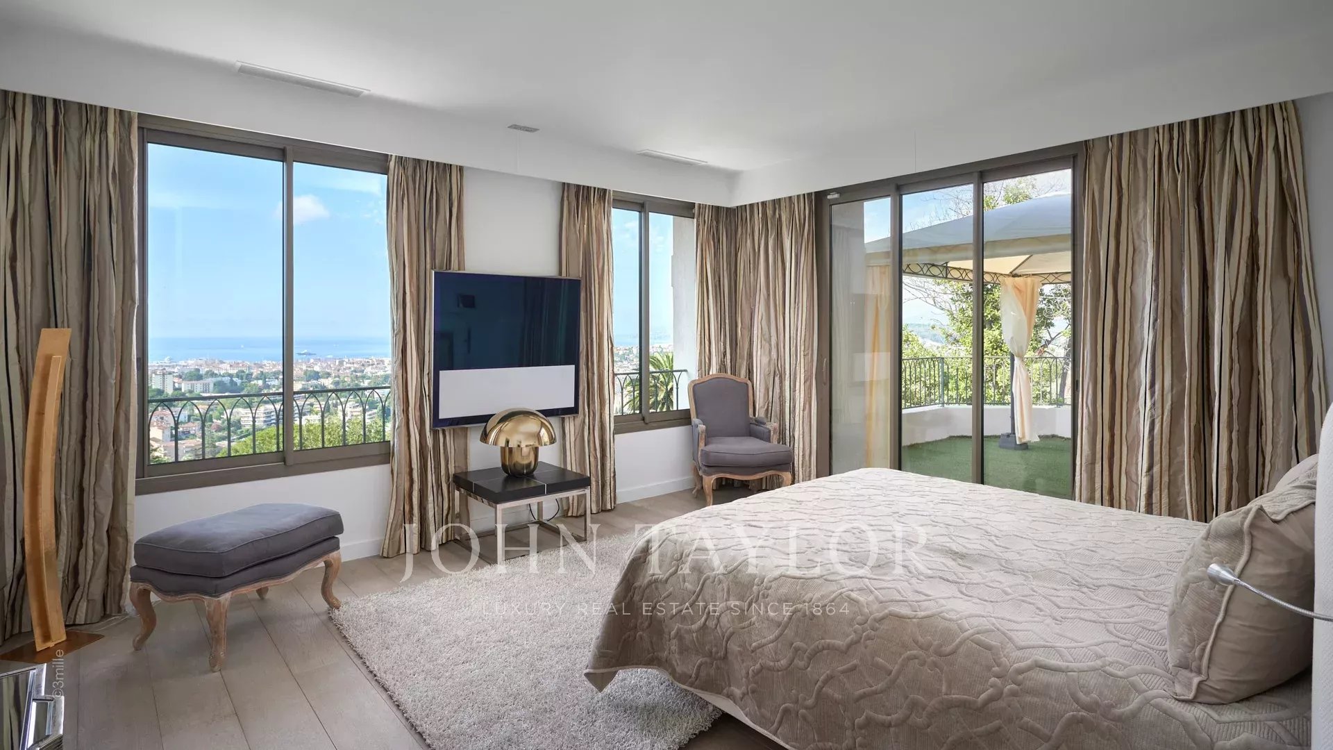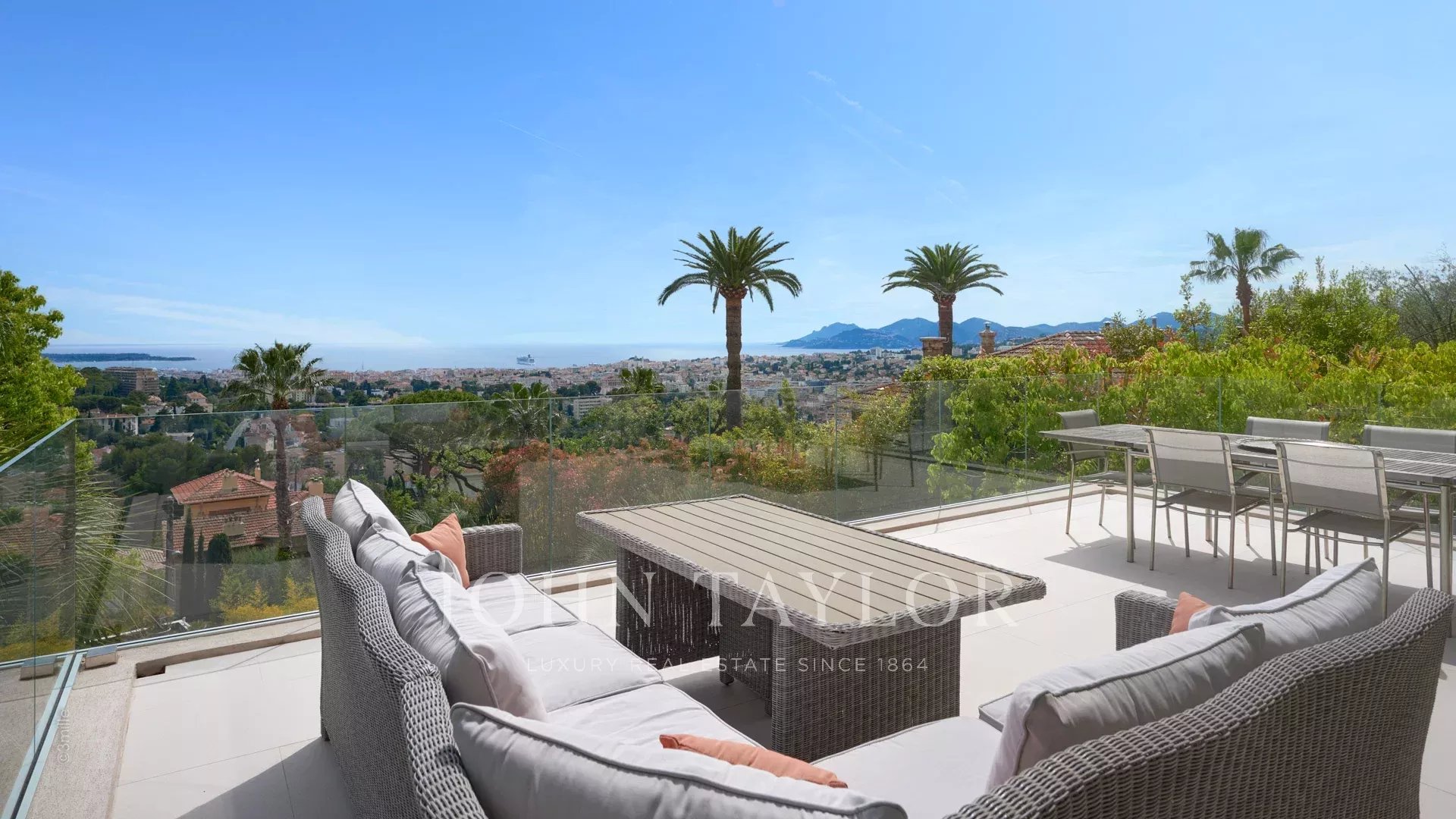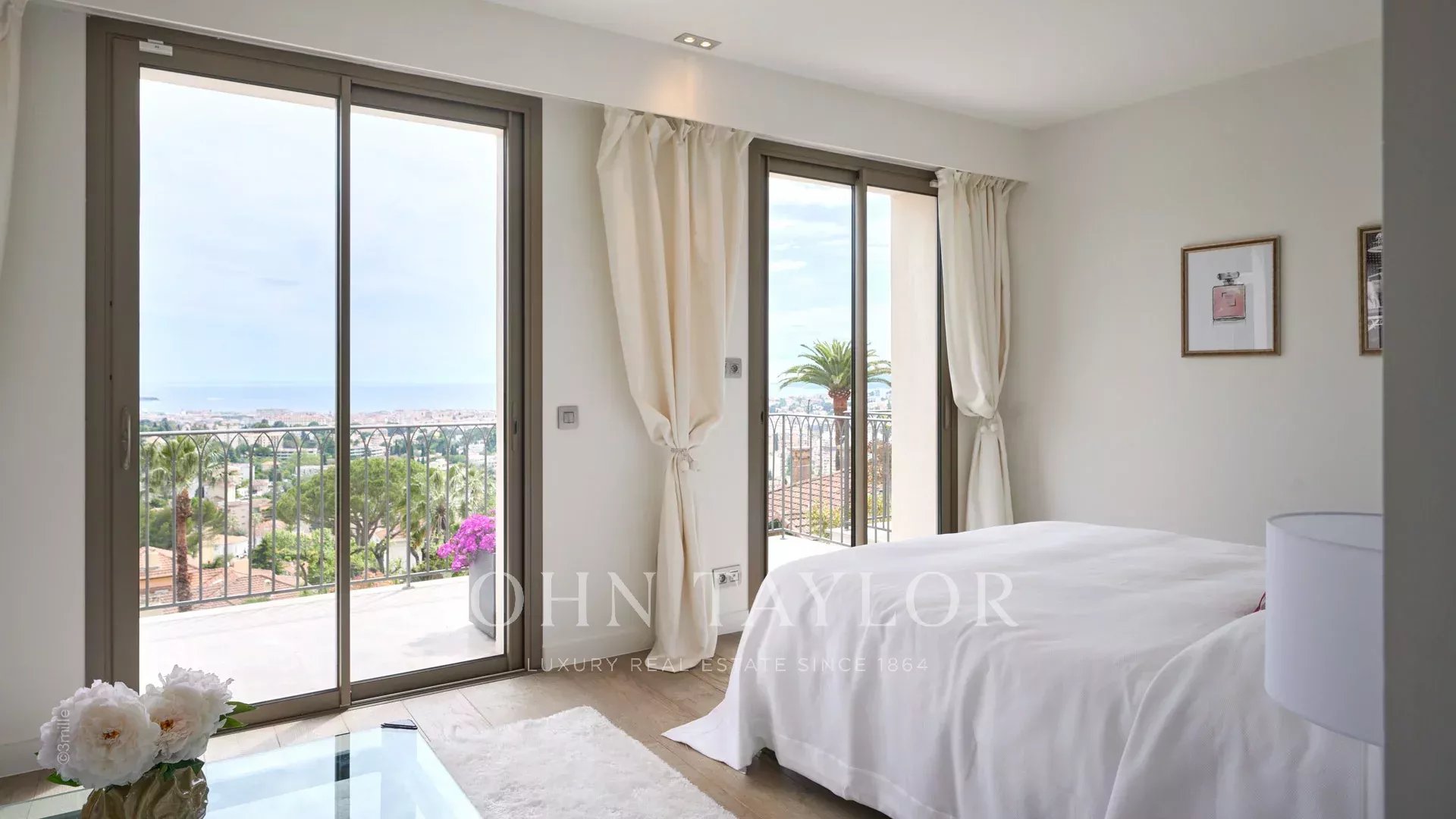 Exposée plein sud et dominant la baie de Cannes, elle jouit d’une vue mer allant des îles de Lérins jusqu’au massif de l’Estérel.