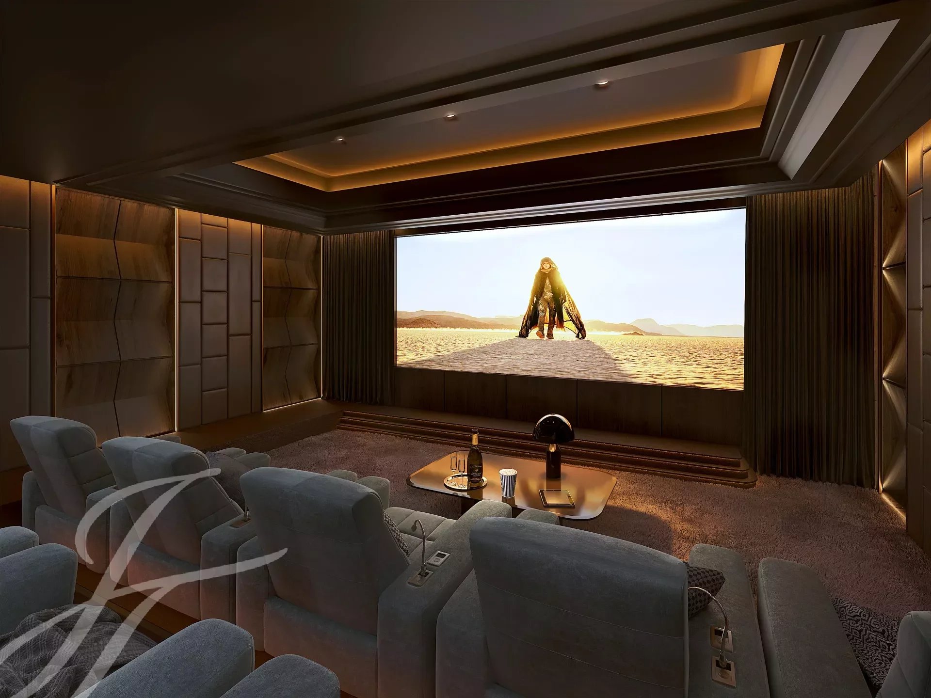 Le niveau bien-être d'environ 336 m² comprend une salle de gym, piscine intérieure chauffée de 8mx4m, salle de massage, espace détente et méditation, vestiaire + WC, cinéma avec bar, deux chambres avec salle de douche/WC en suite.