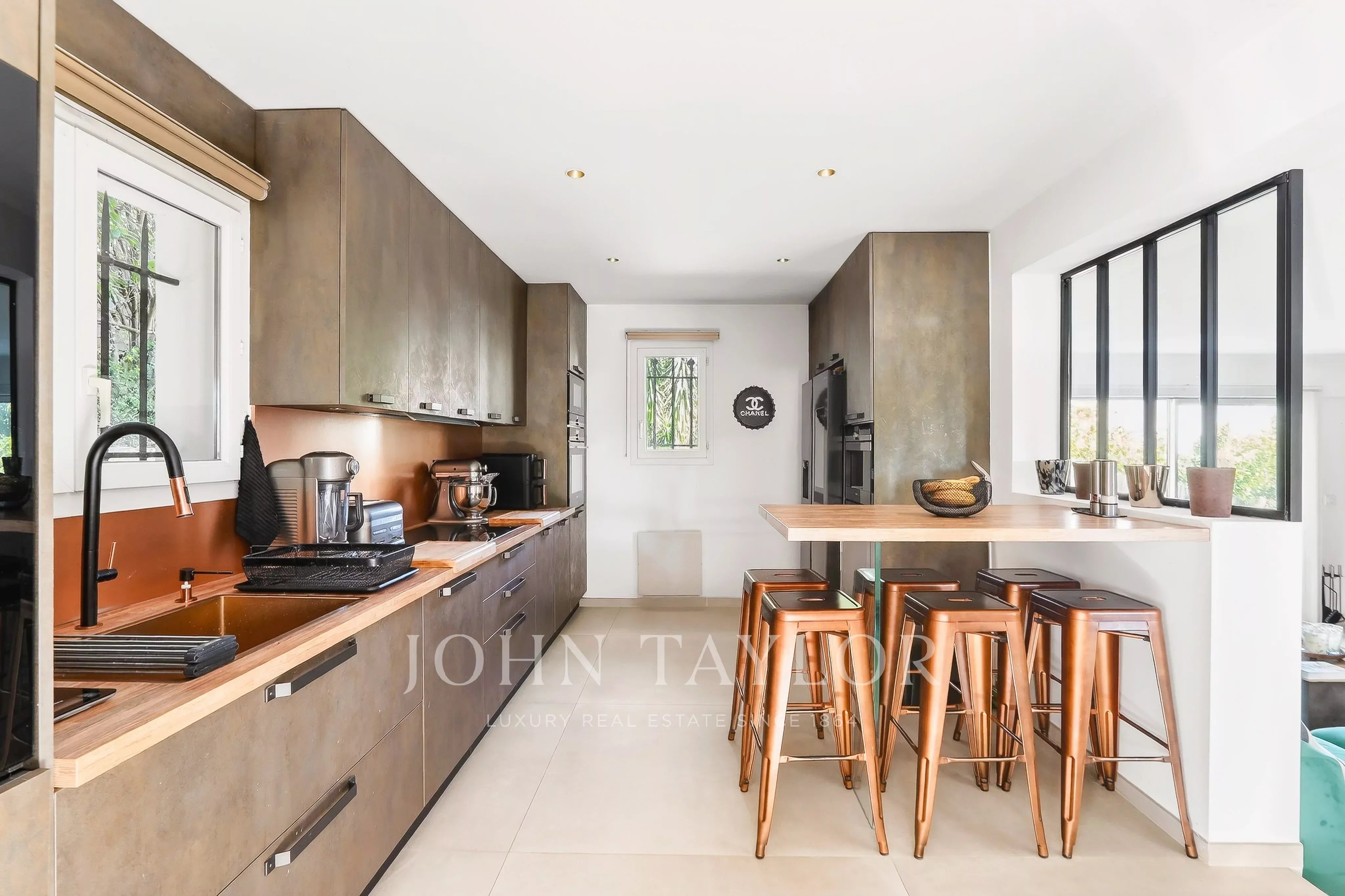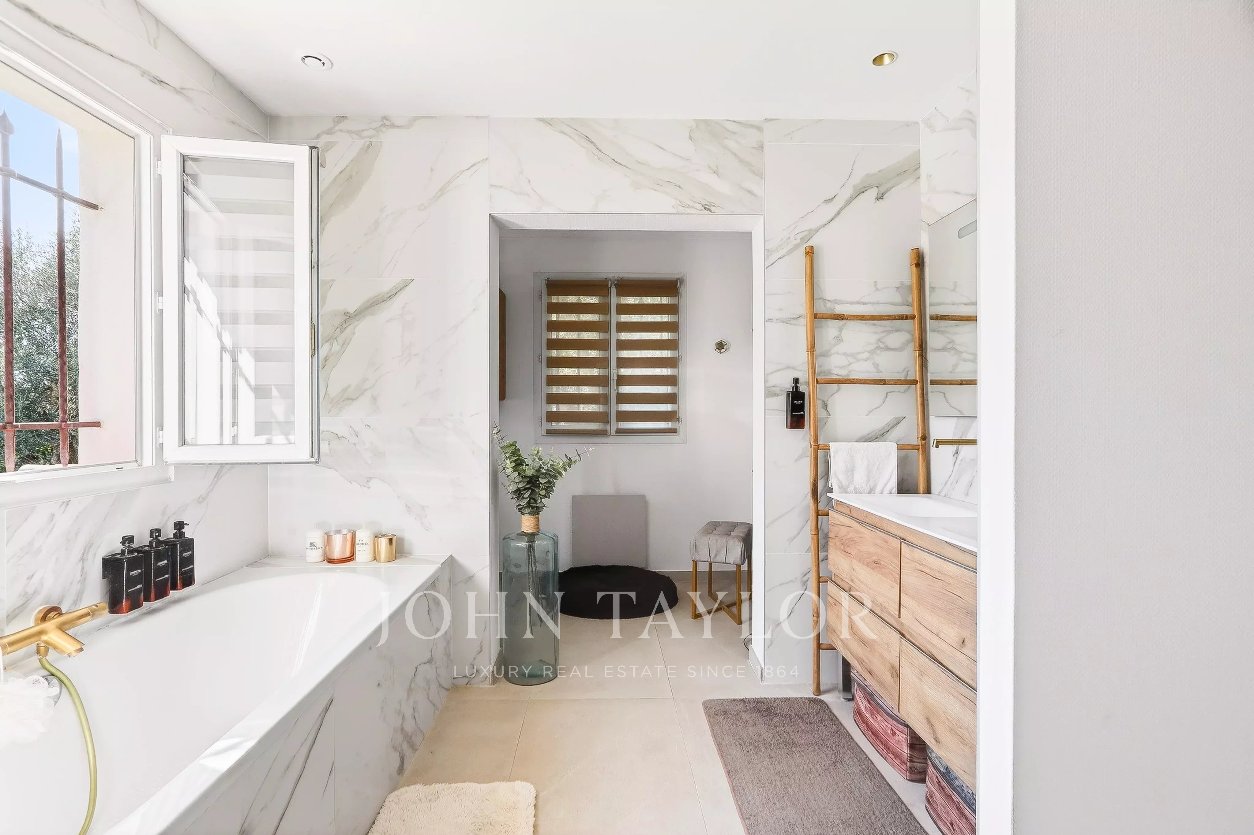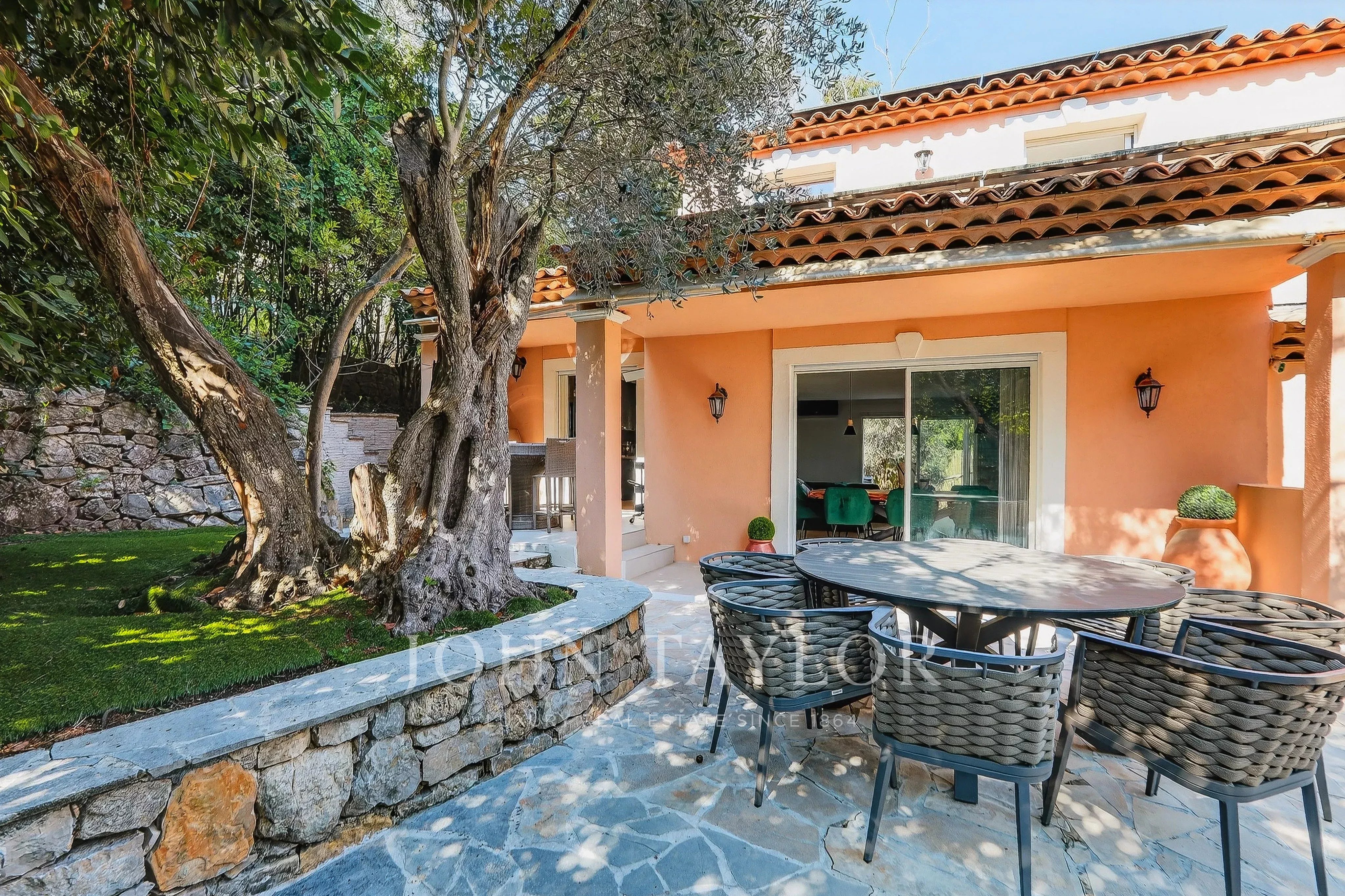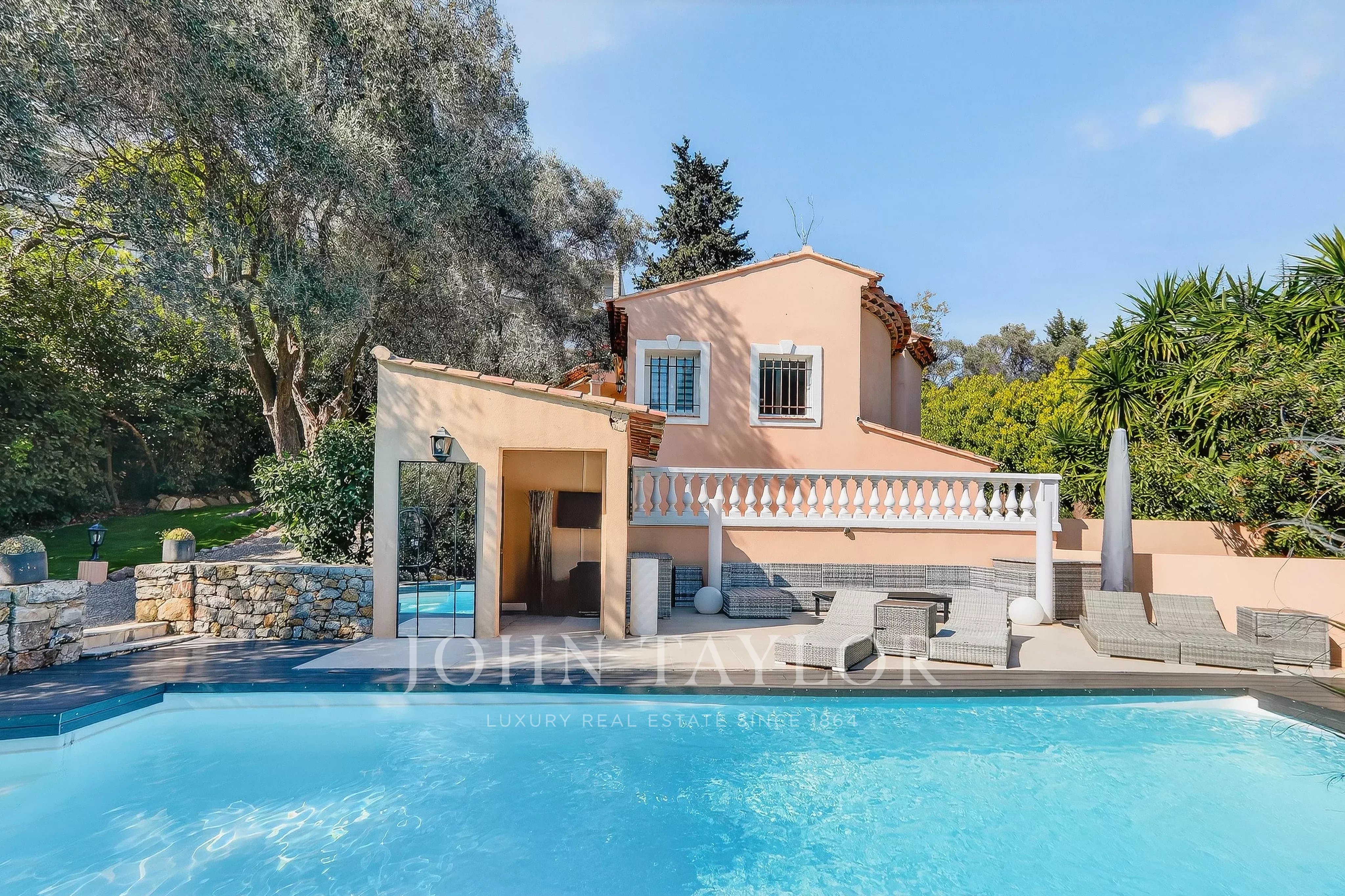 Idéalement située sur les hauteurs du Cannet et au fond d'une impasse, cette villa d’environ 232 m² habitables (313 m² au total) s’étend sur un terrain d’environ 1 000 m² agrémenté d’une piscine.