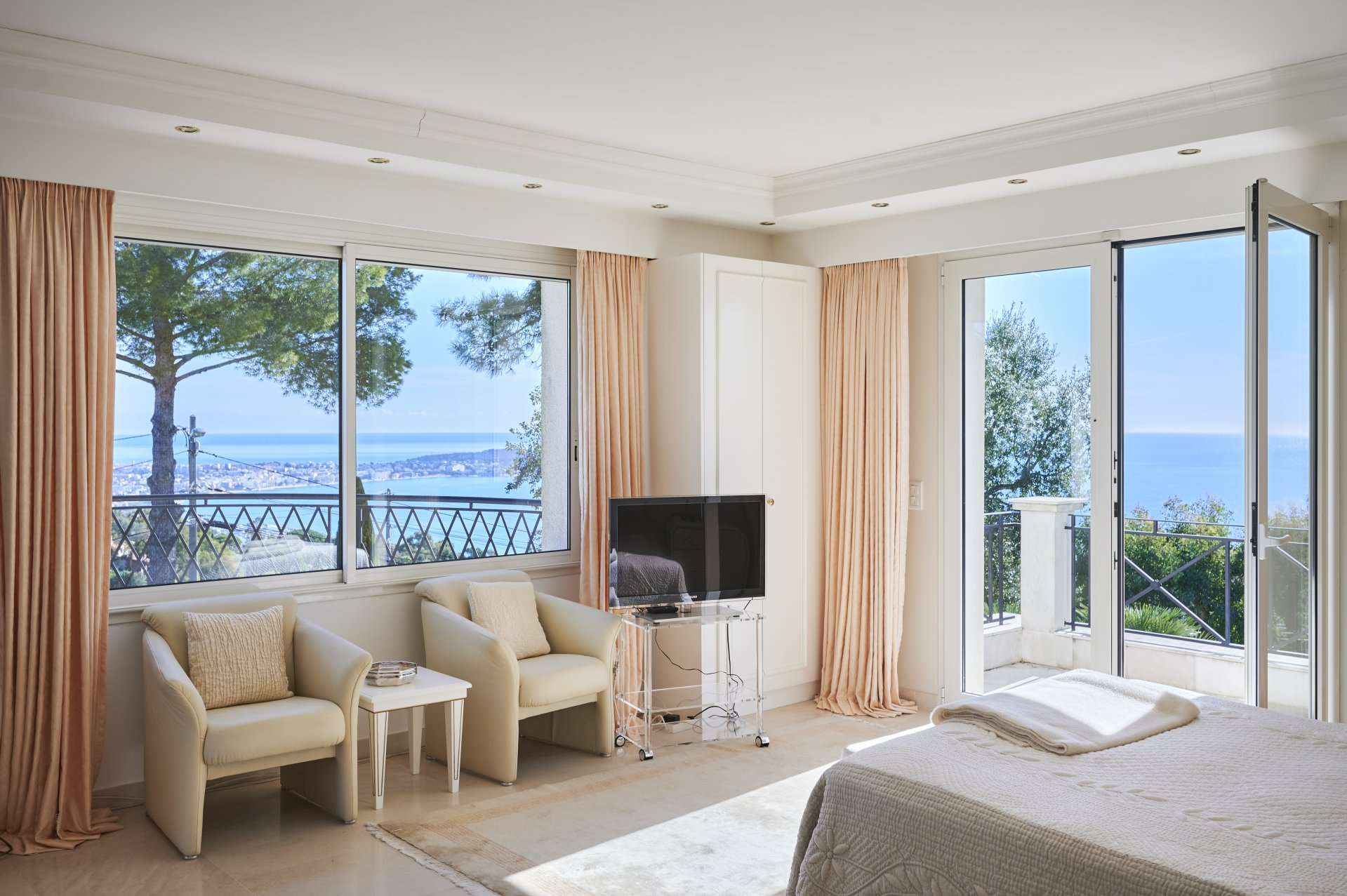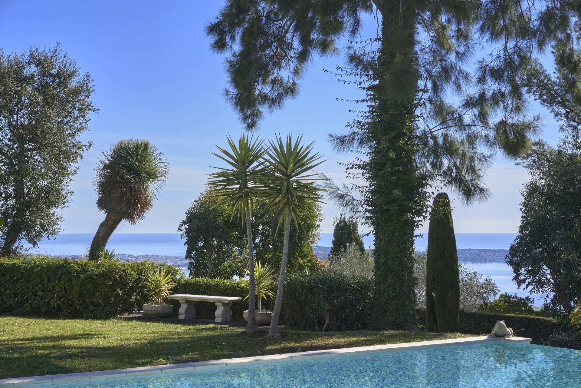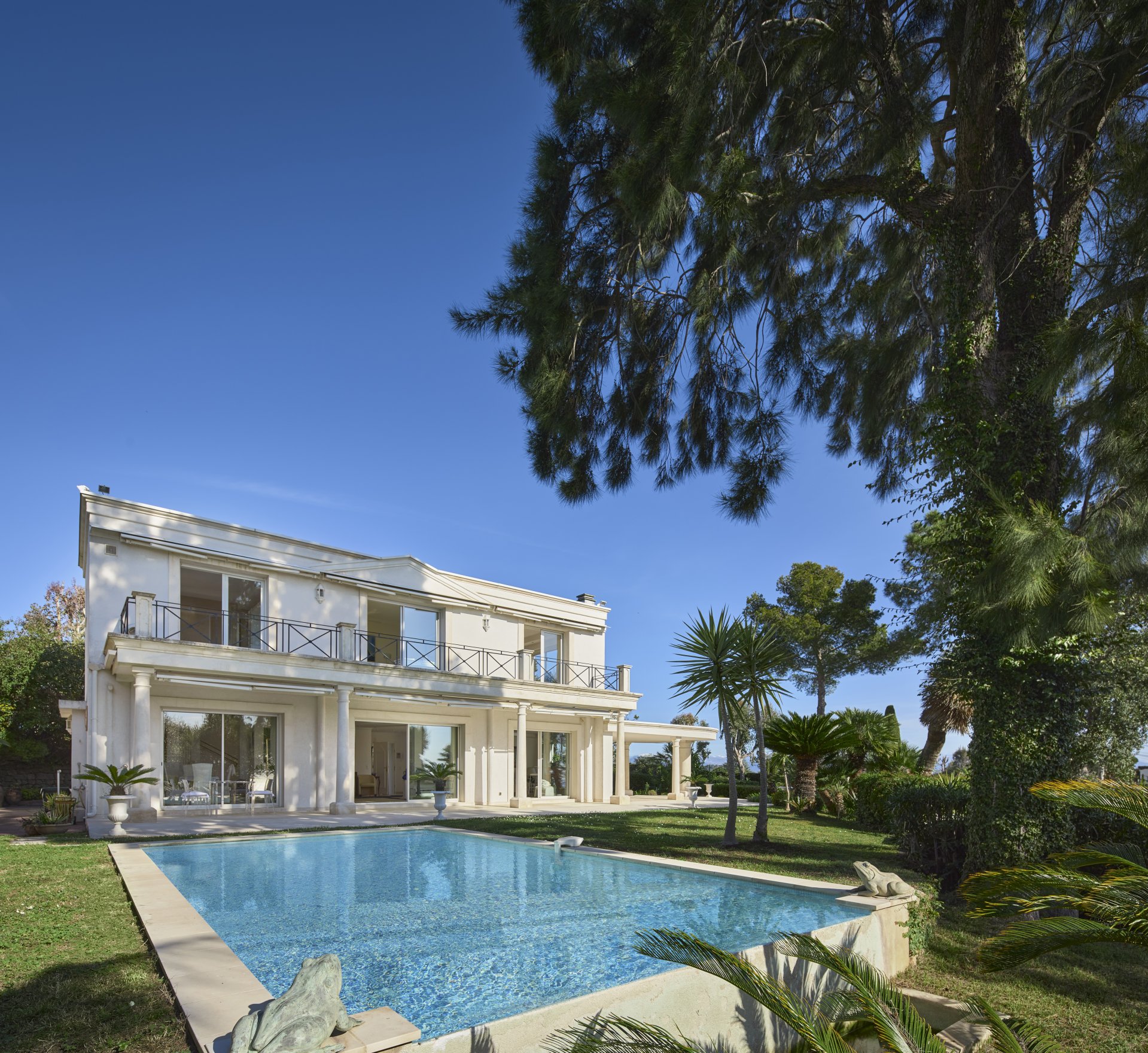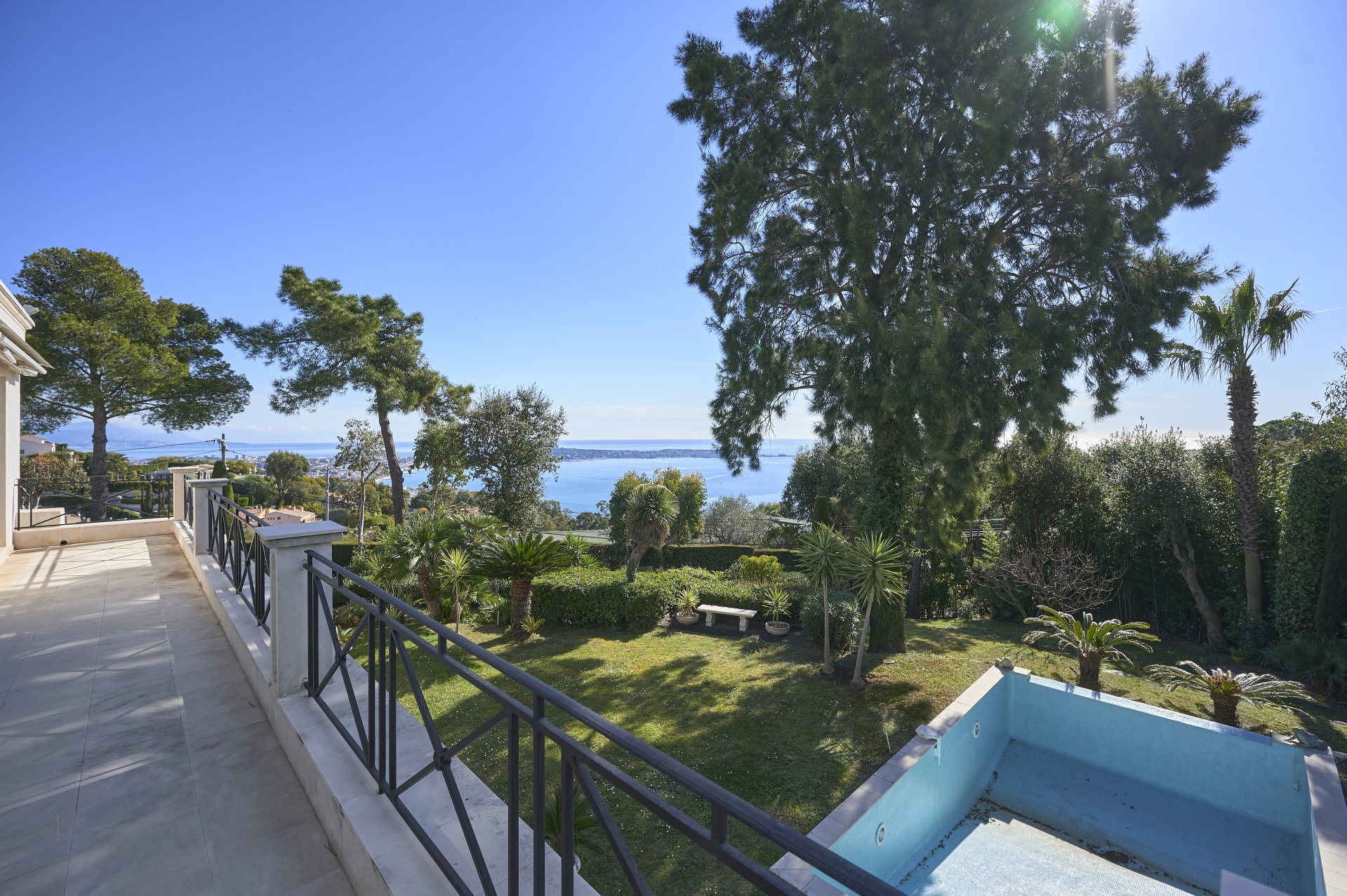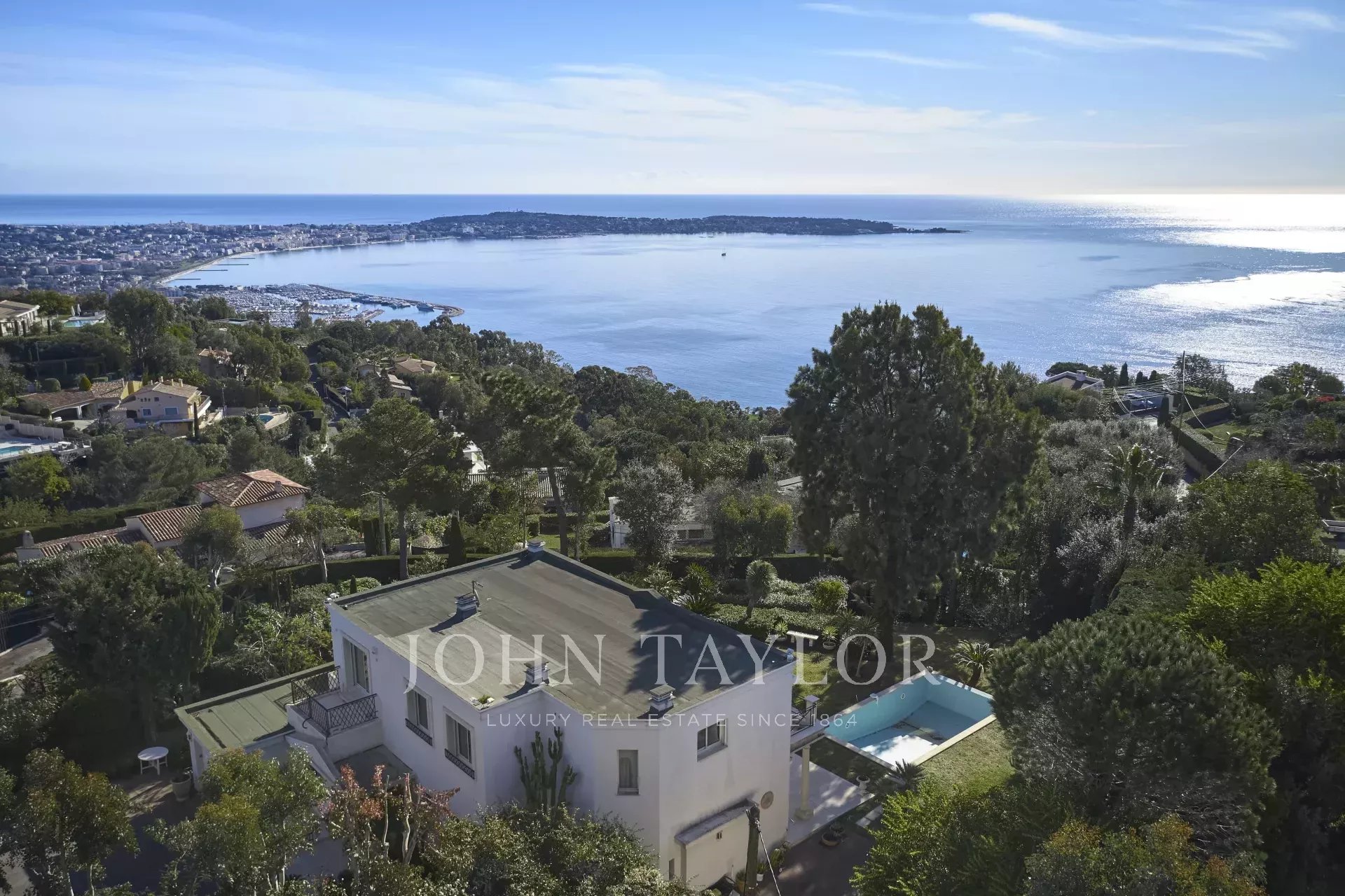 En Exclusivité - Dans le quartier recherché de Super Cannes, cette jolie villa d’environ 250 m² édifiée sur un jardin paysager d'environ 2 000 m² plat avec piscine à débordement offre un magnifique panorama sur la mer et le Cap d'Antibes.