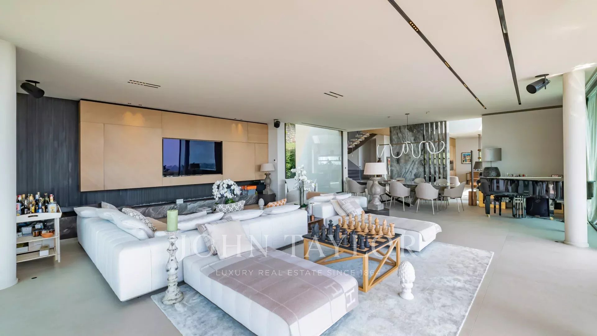 Les équipements de loisirs incluent une salle de sport, une salle de cinéma et une cave à vin. Un garage pour 6 voitures et une buanderie complètent ce bien d’exception.