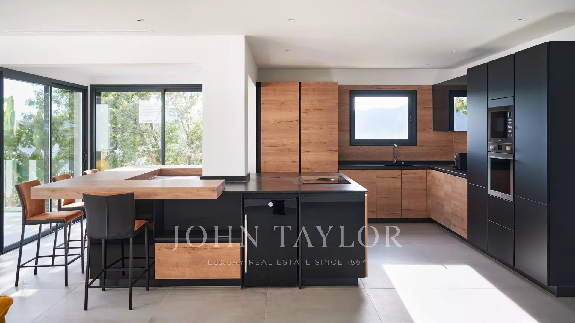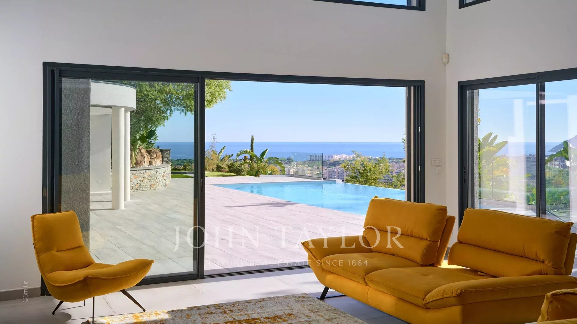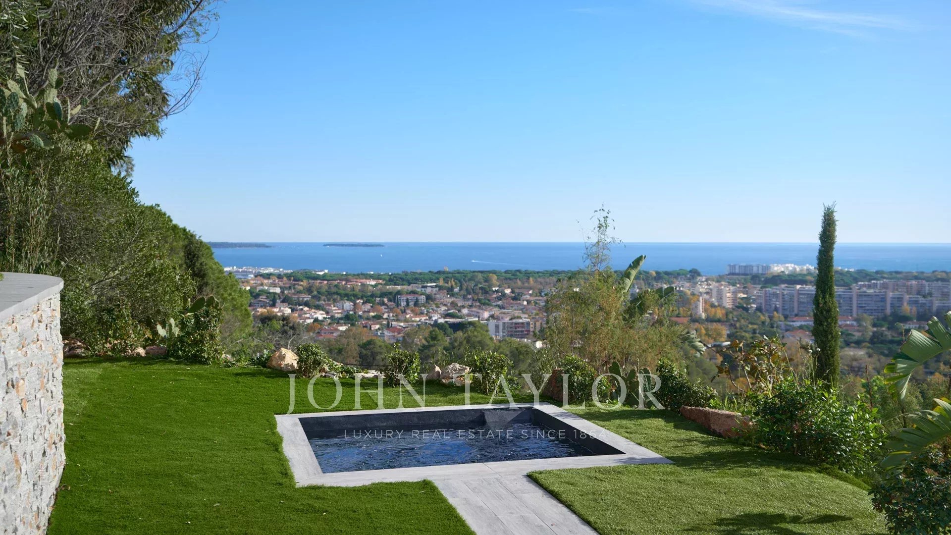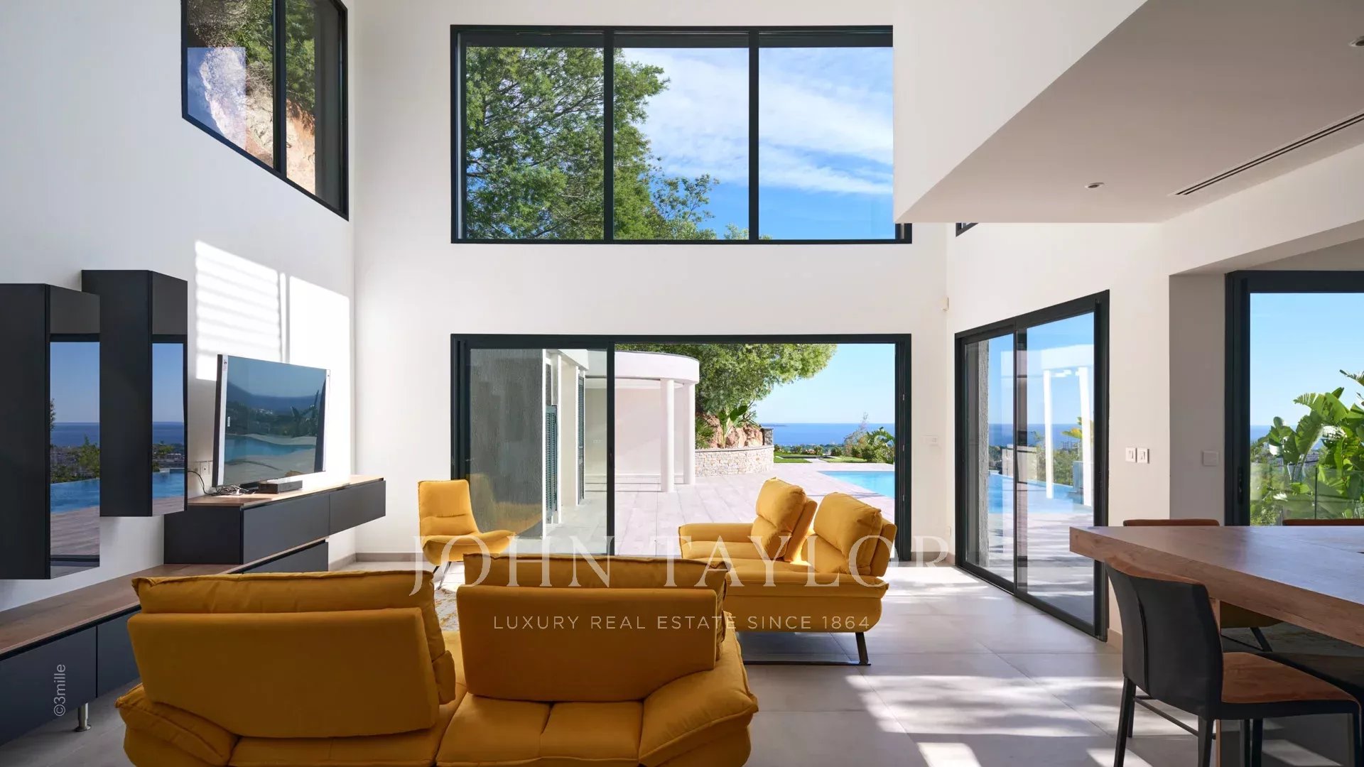 Située à 5 minutes du centre-ville de Mandelieu, cette magnifique villa contemporaine offre des prestations haut de gamme et impressionne par son architecture et sa vue imprenable sur la mer et les îles de Lérins.